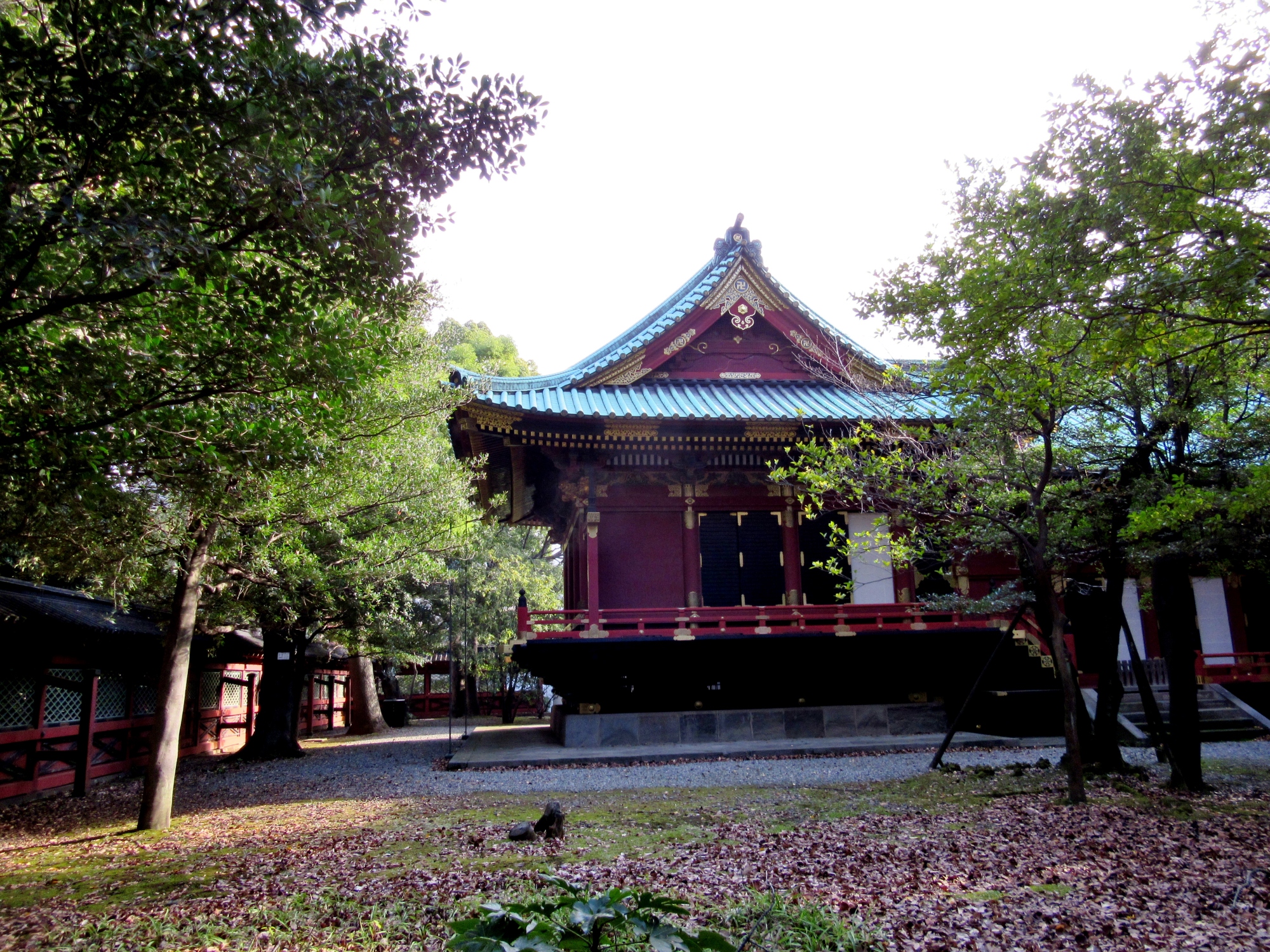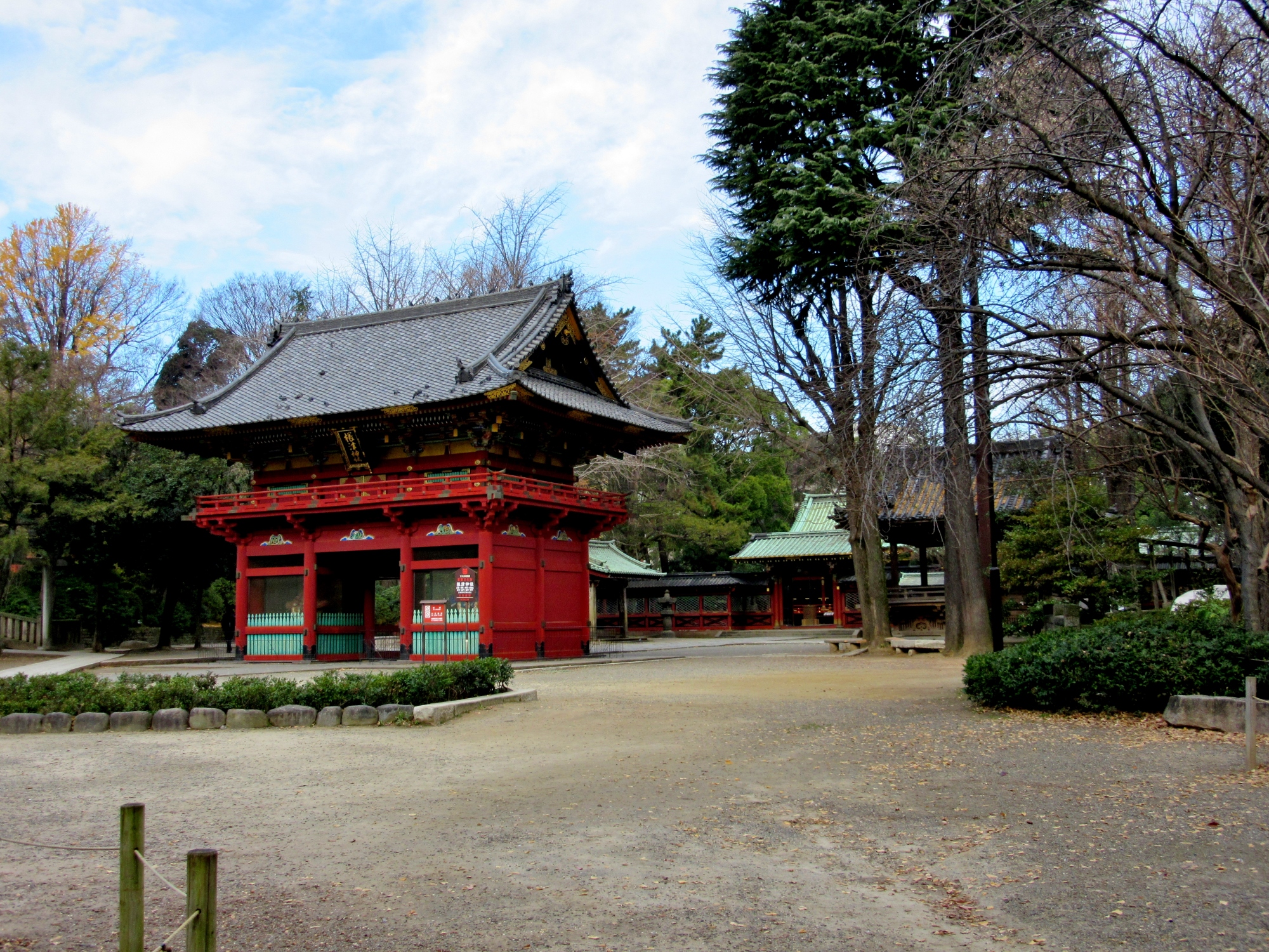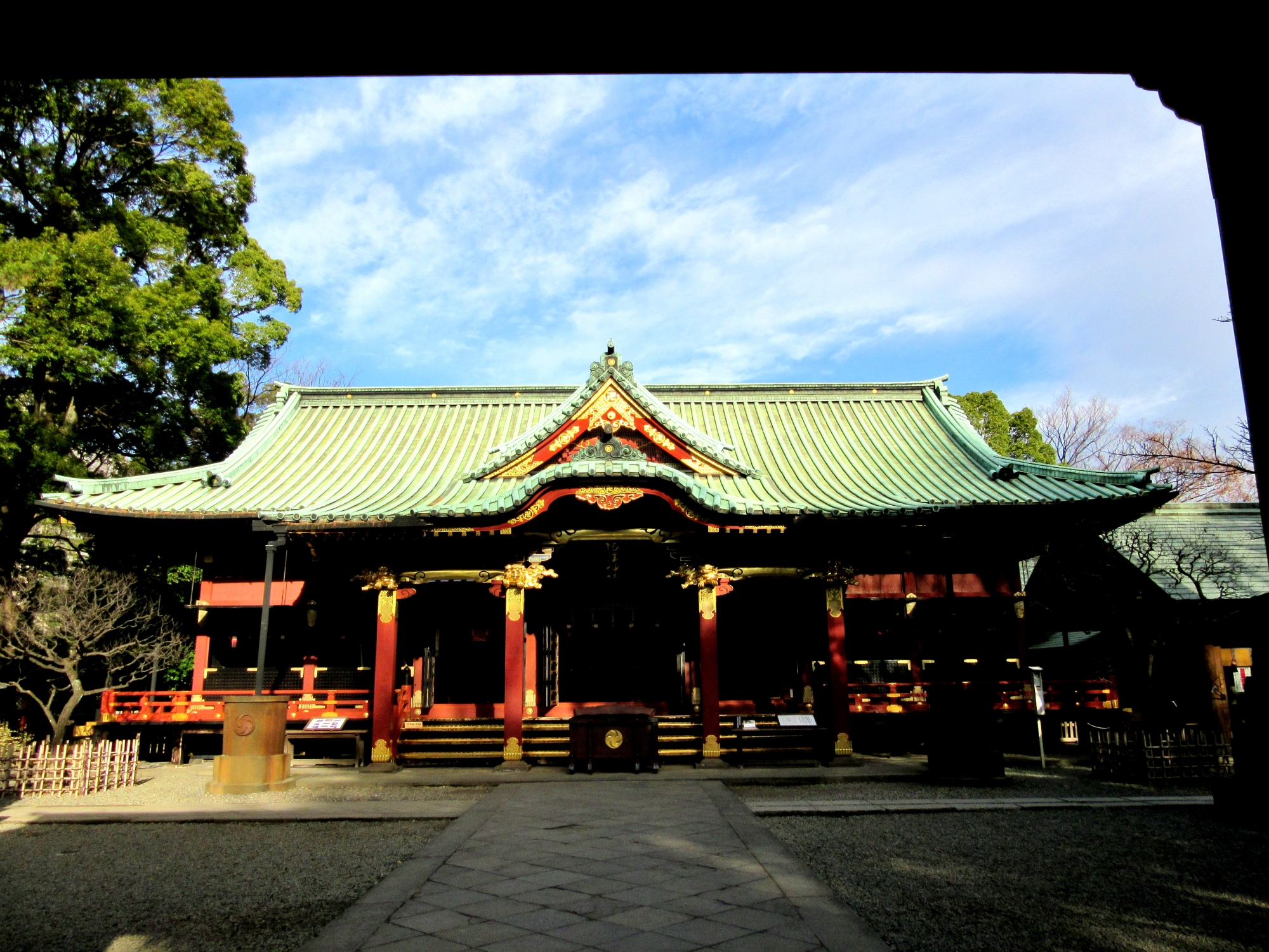 【1900年ほど前に日本武尊が千駄木に創祀したとされる。文明年間(1469年-1486年)には太田道灌により社殿が造られた。万治年間(1658年-1661年)に同所が太田氏の屋敷地となったため東方に移り、のちさらに団子坂上(現文京区立本郷図書館周辺、元根津)に遷座した[3]。宝永2年(1705年)江戸幕府第5代将軍徳川綱吉が兄綱重の子・綱豊(甲府藩主。のちの第6代将軍・家宣)を養嗣子に定めた。綱豊が江戸城に移ると、当社が家宣の産土神とされていたことから、綱豊の屋敷地(旧甲府藩邸、現在地)を当社に献納して普請を開始した[3]。社殿は宝永3年(1706年)に完成し、同年遷座した。】だそうです,