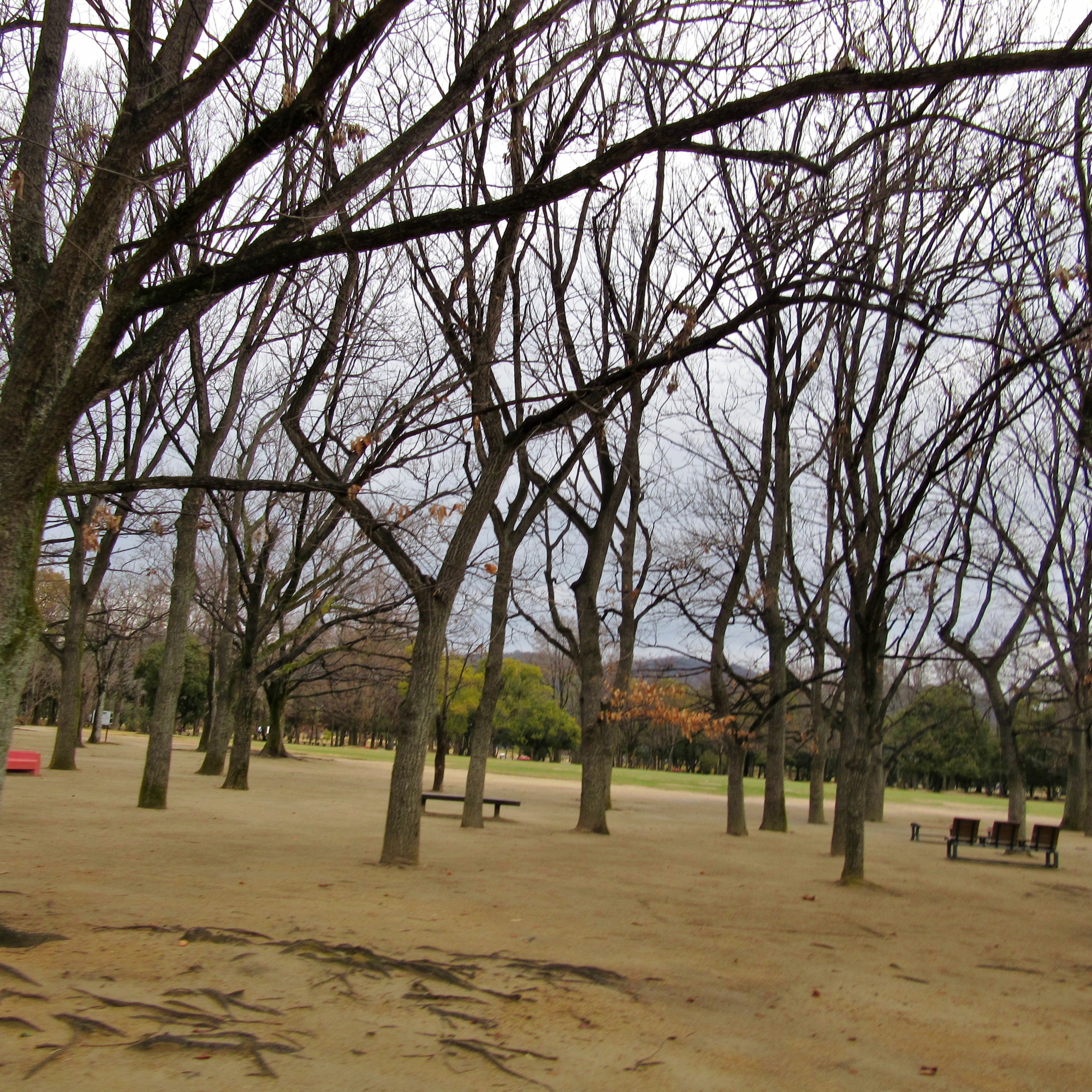 冬木立にマラソン人(五輪さんの”恋人よ”みたい)もいらっしゃいますが・・少し寒い,寂しげな公園です。