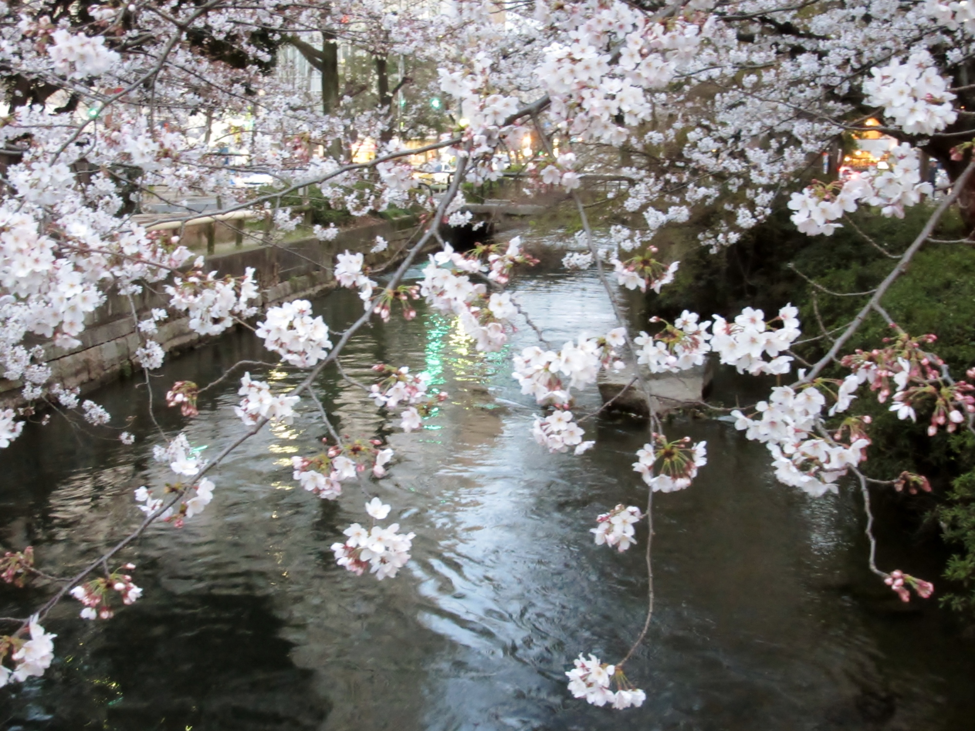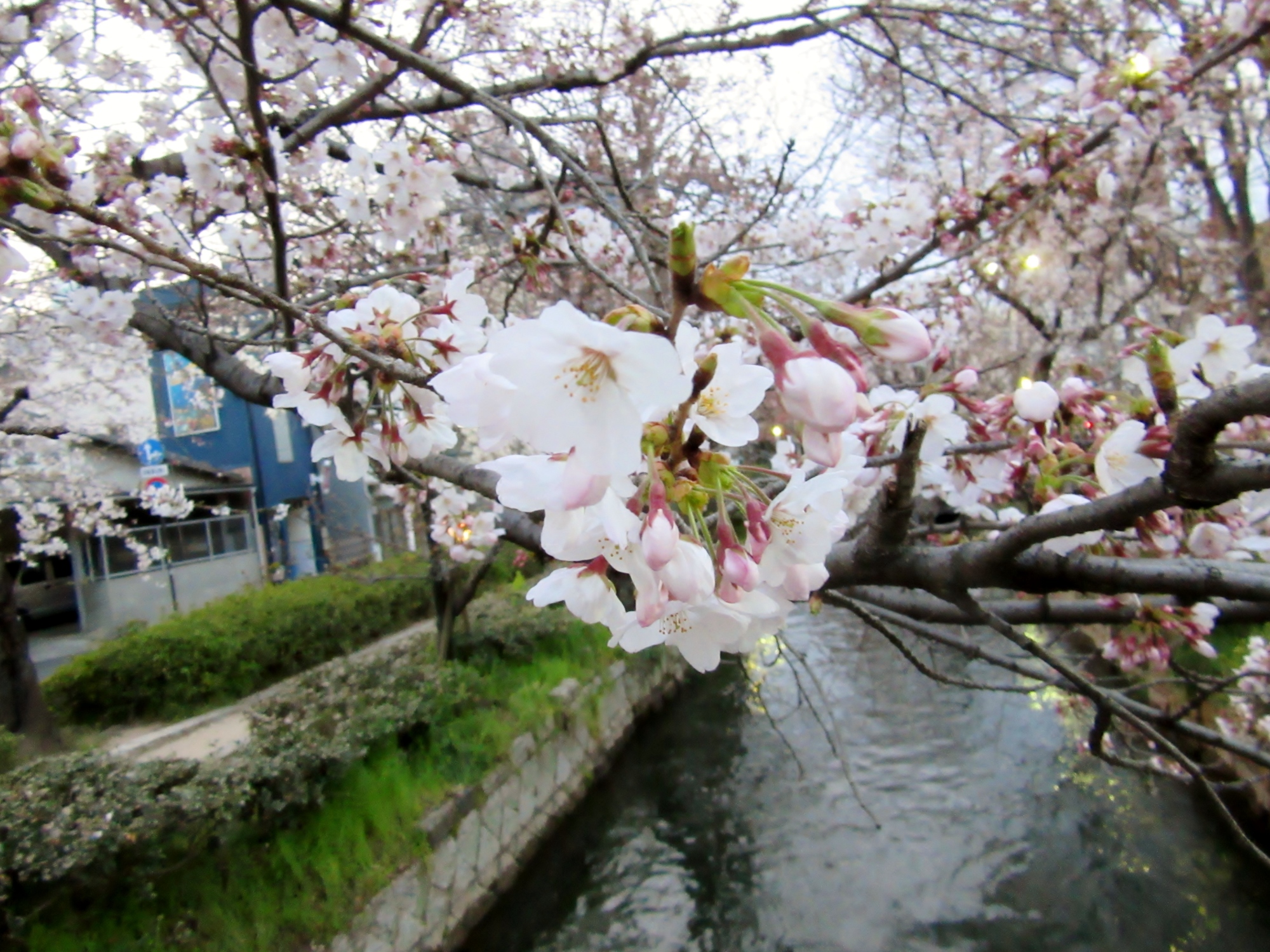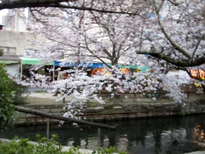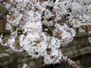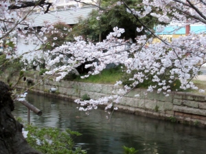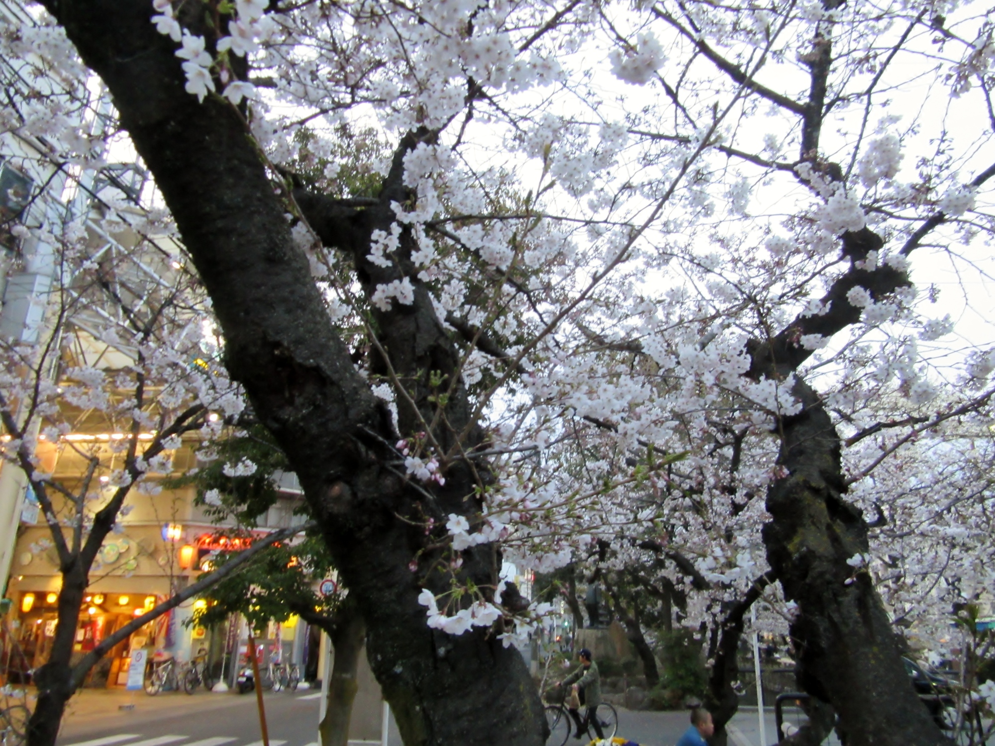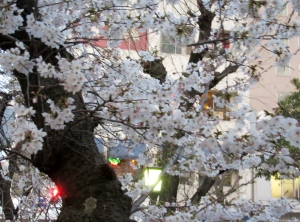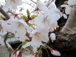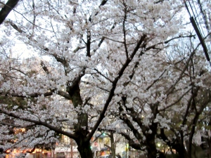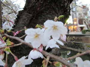 附属病院栄養部 市川部長のご退任慰労会へご案内を頂戴して,参加させていただきましたが,ちょっと早めに着いて,西川緑道公園・・桃太郎大通りの東側・・・桜を初め,春は満開まで後一歩です。