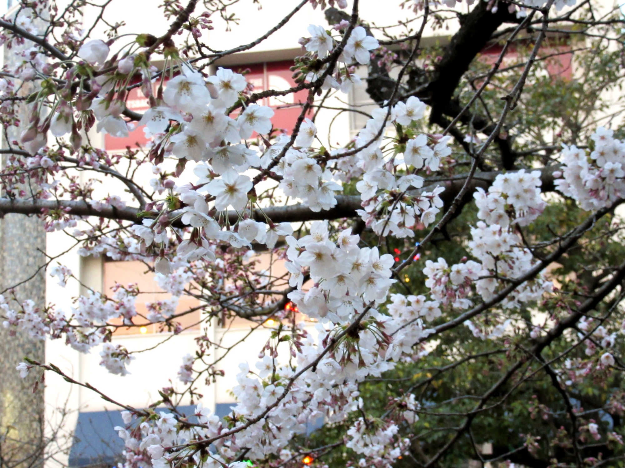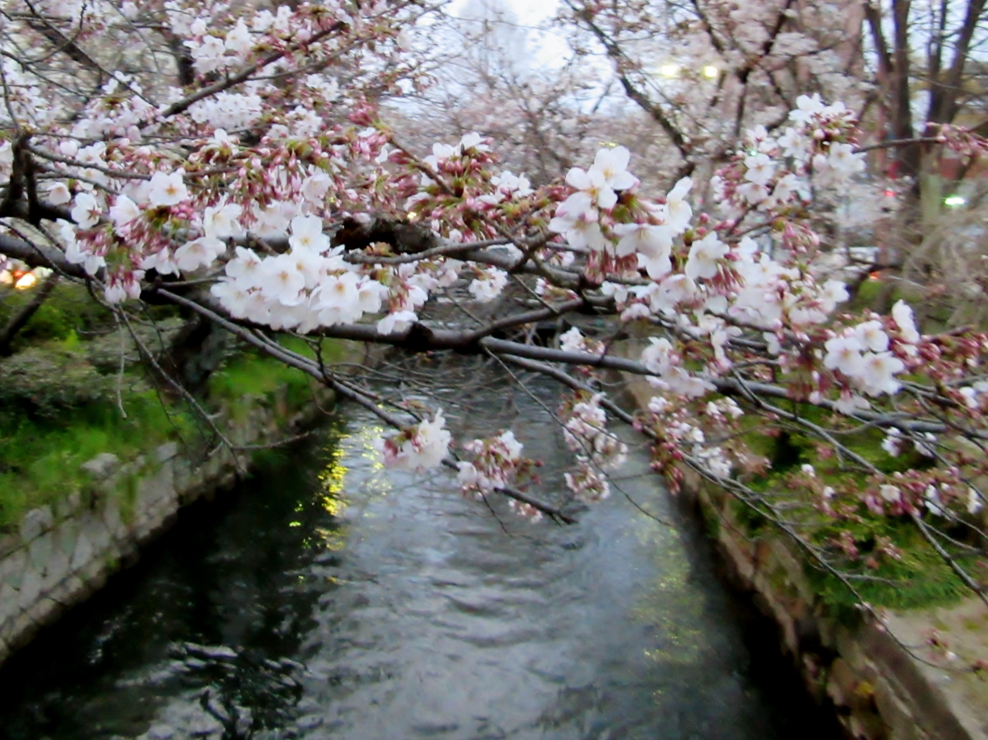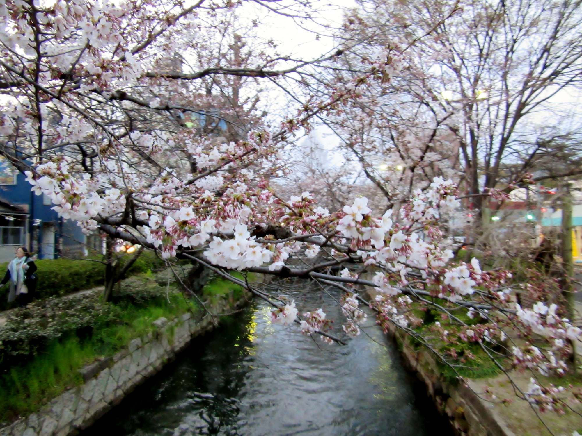 附属病院栄養部 市川部長のご退任慰労会へご案内を頂戴して,参加させていただきましたが,ちょっと早めに着いて,西川緑道公園・・桃太郎大通りの東側・・・桜を初め,春は満開まで後一歩です。