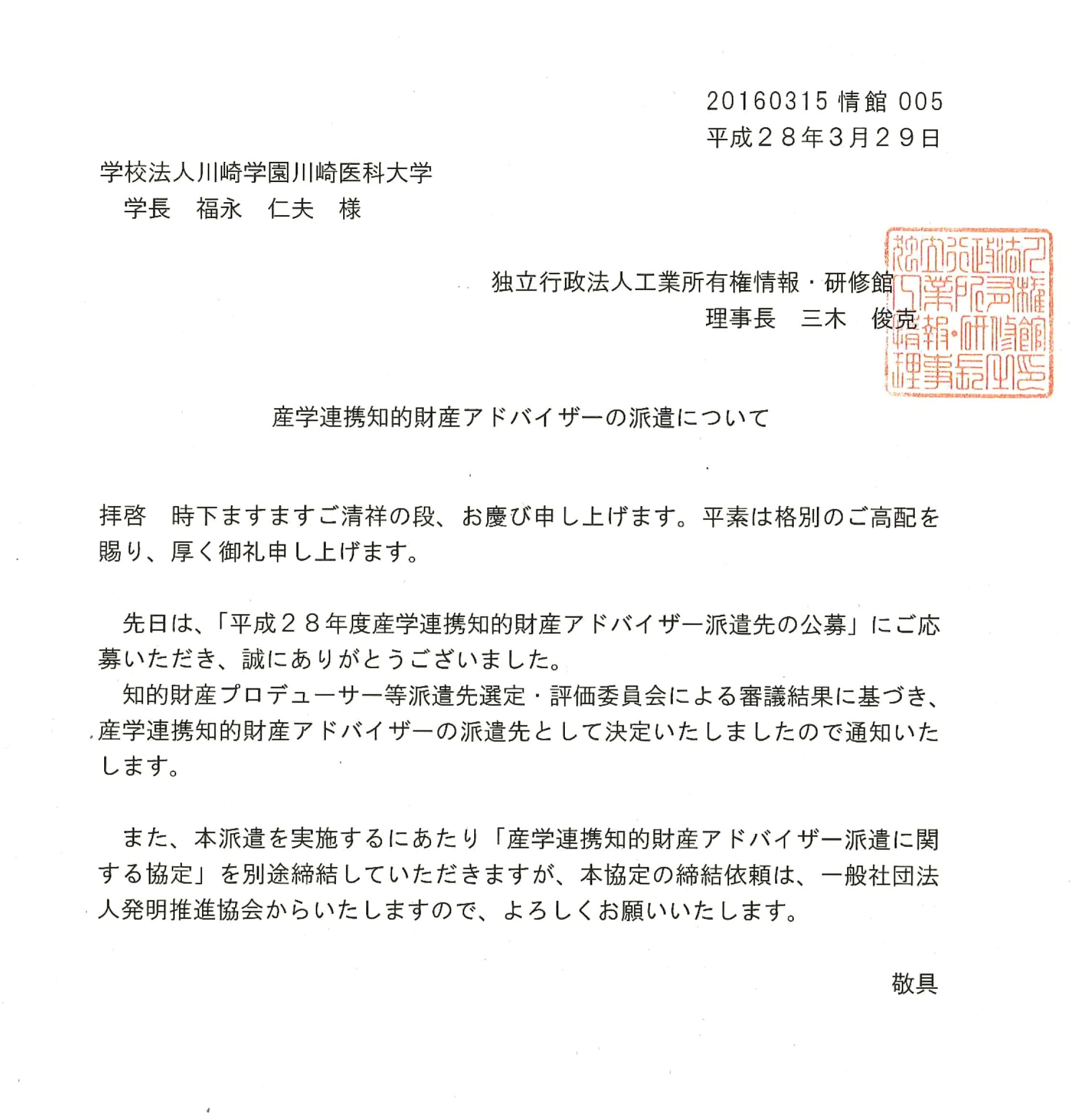 大槻は直接関わっては来なかったのですが,川崎医科大学が中心となった西日本医系大学知的財産NW・・・柏原副学長が中心的に展開されていました,INPIT--「工業所有権情報・研修館」から2年間,アドバイザーを派遣していただき,基盤整備にご尽力いただくNWも高評価で終了し,次年度から発展型の申請も採択されました(この申請書類には少し関わりました)。