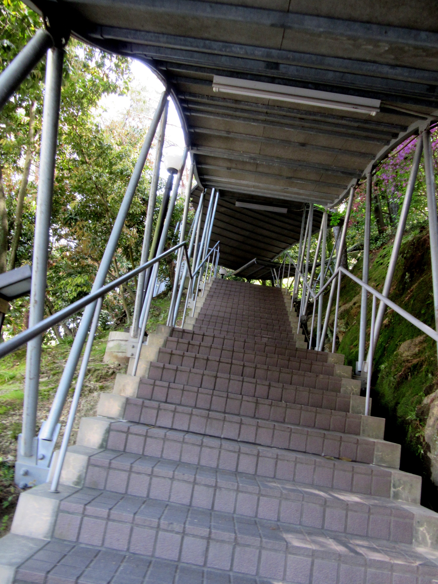 丘の上で,長い急な階段を登って行きます。
