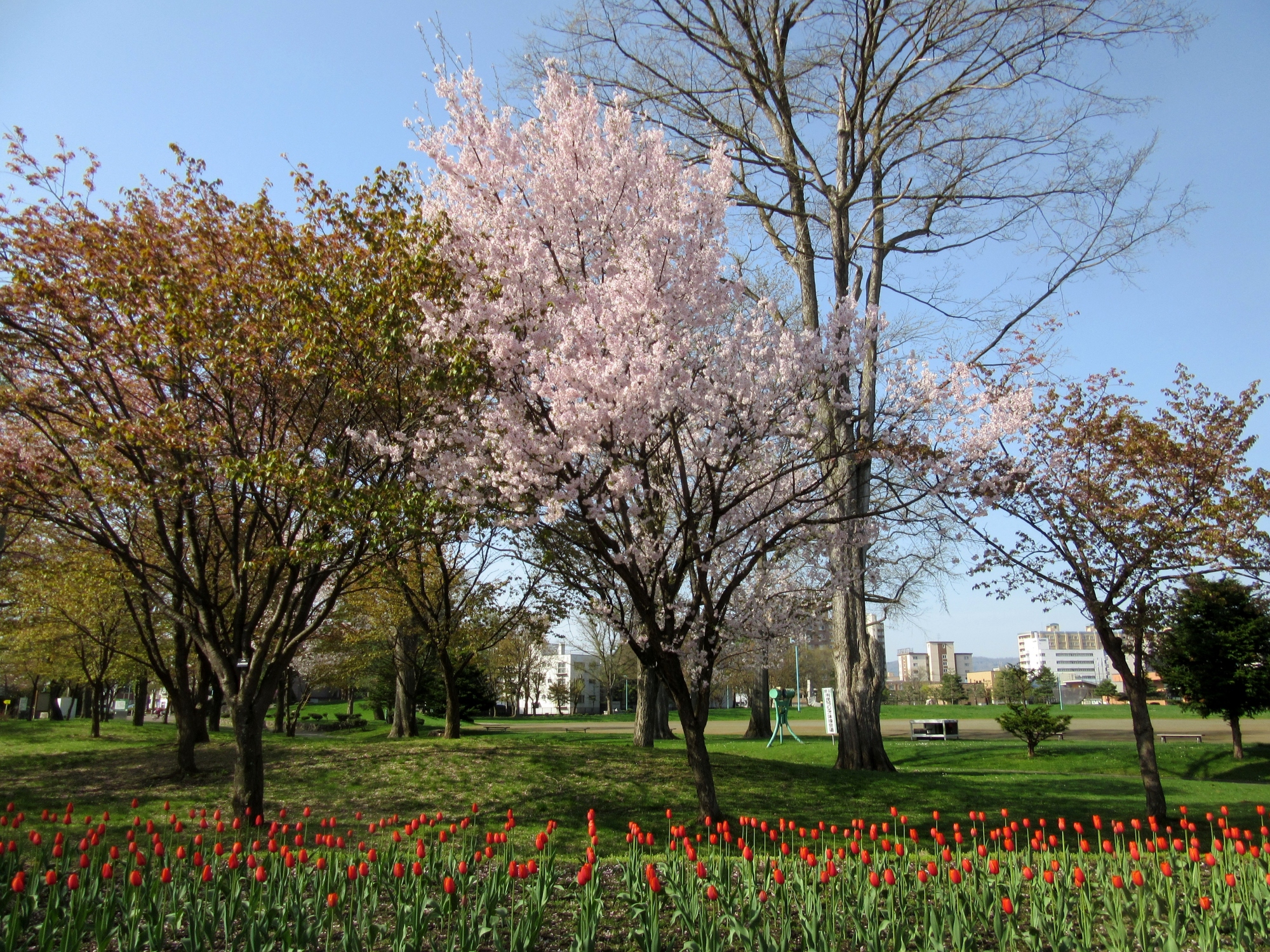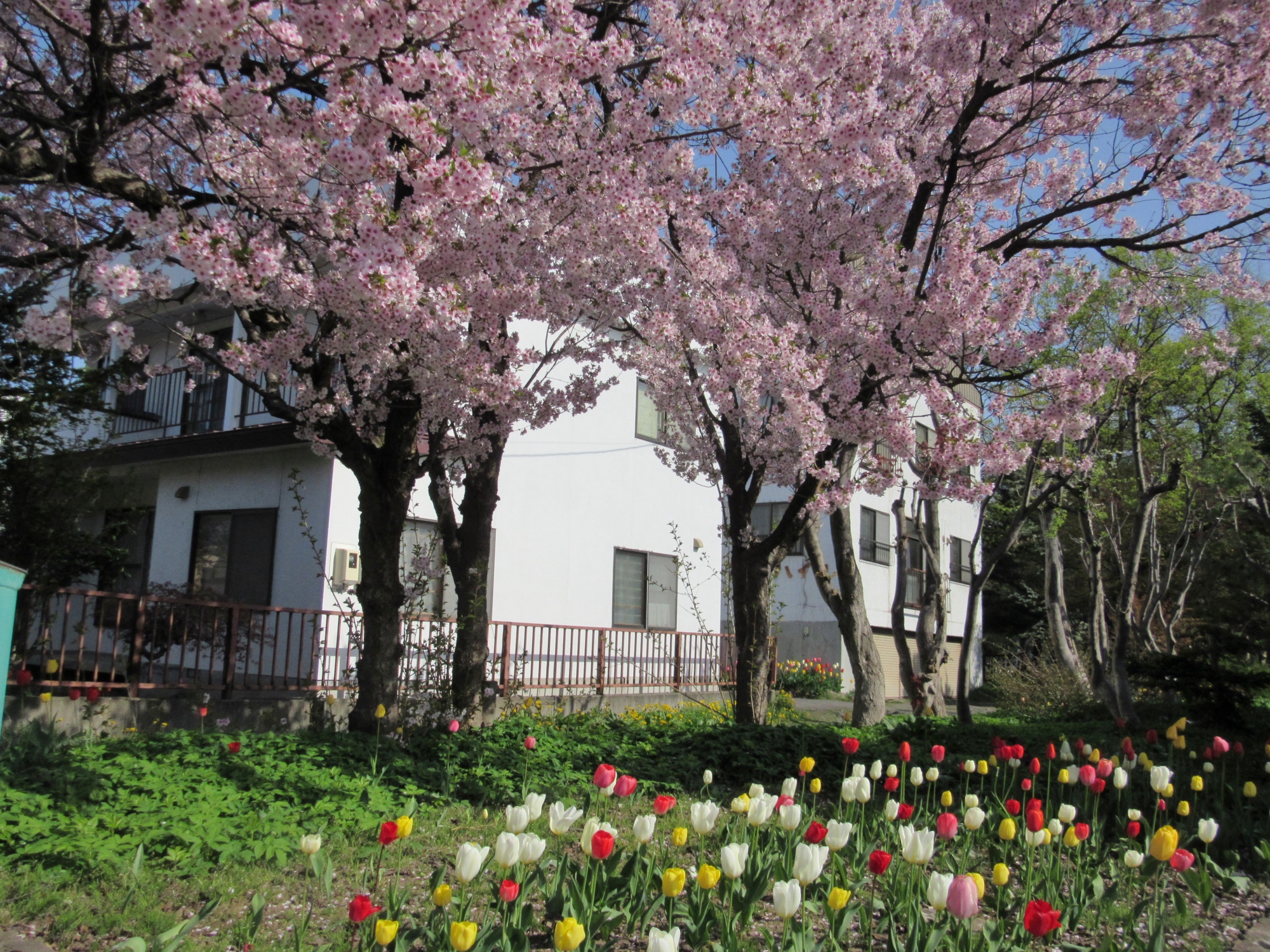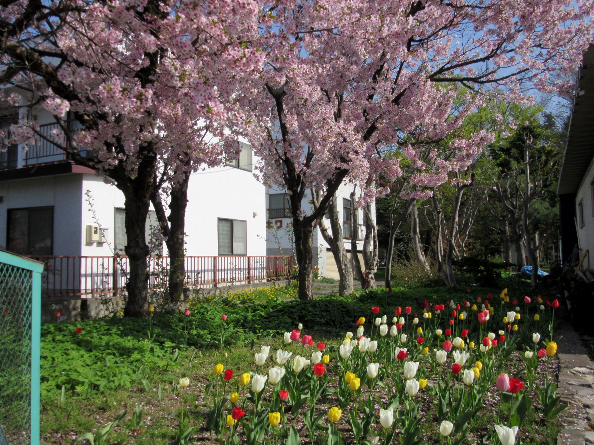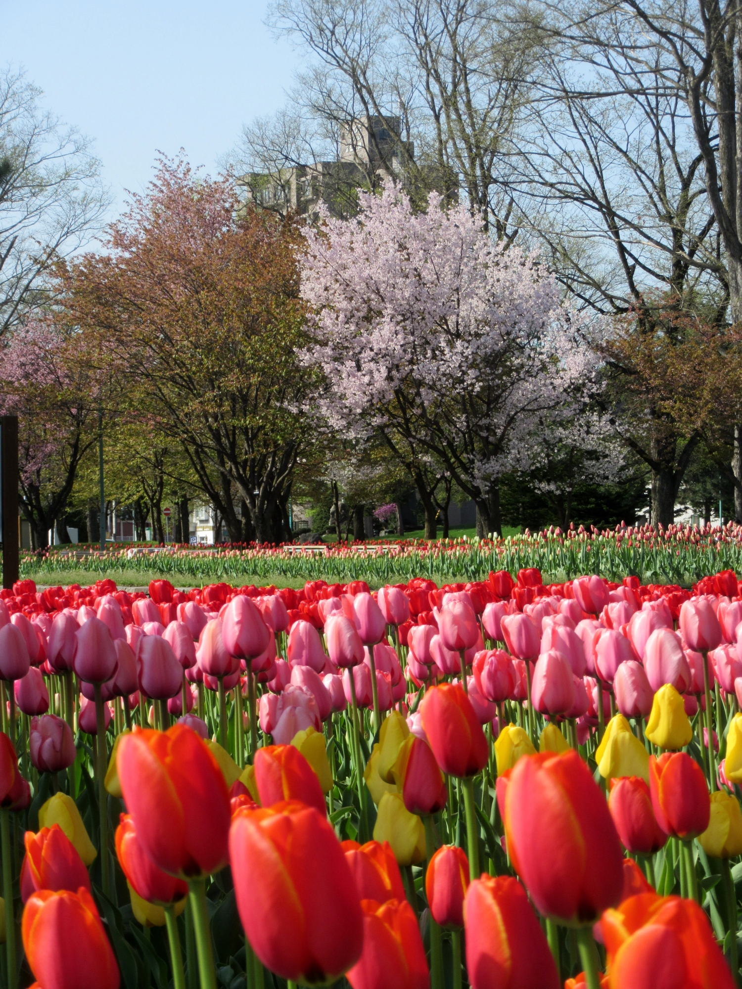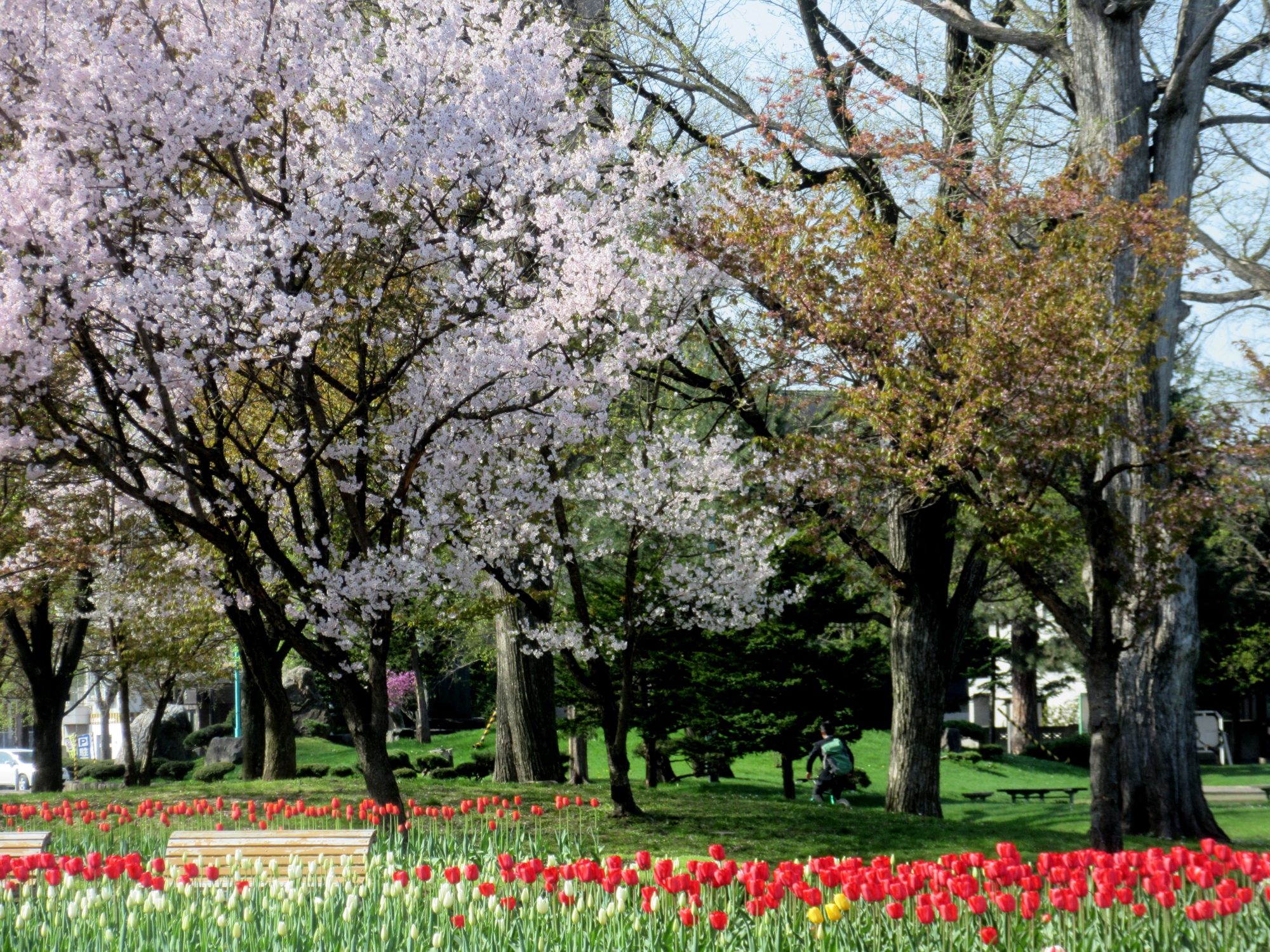 桜とチューリップがそれぞれに満開って・・・北ならばこそ!
