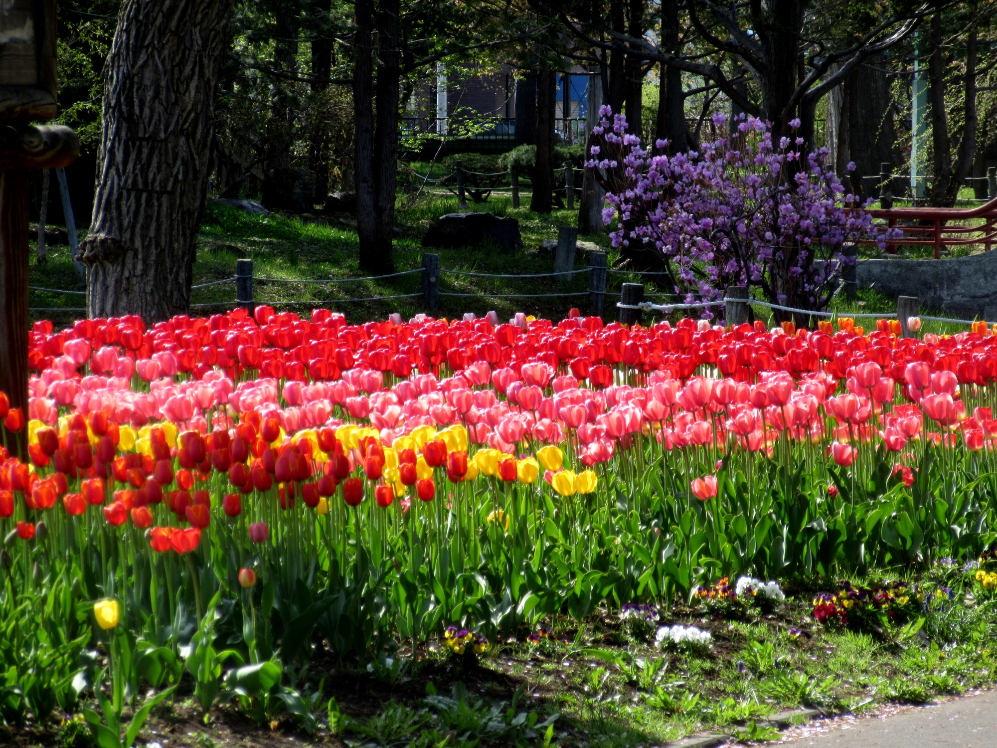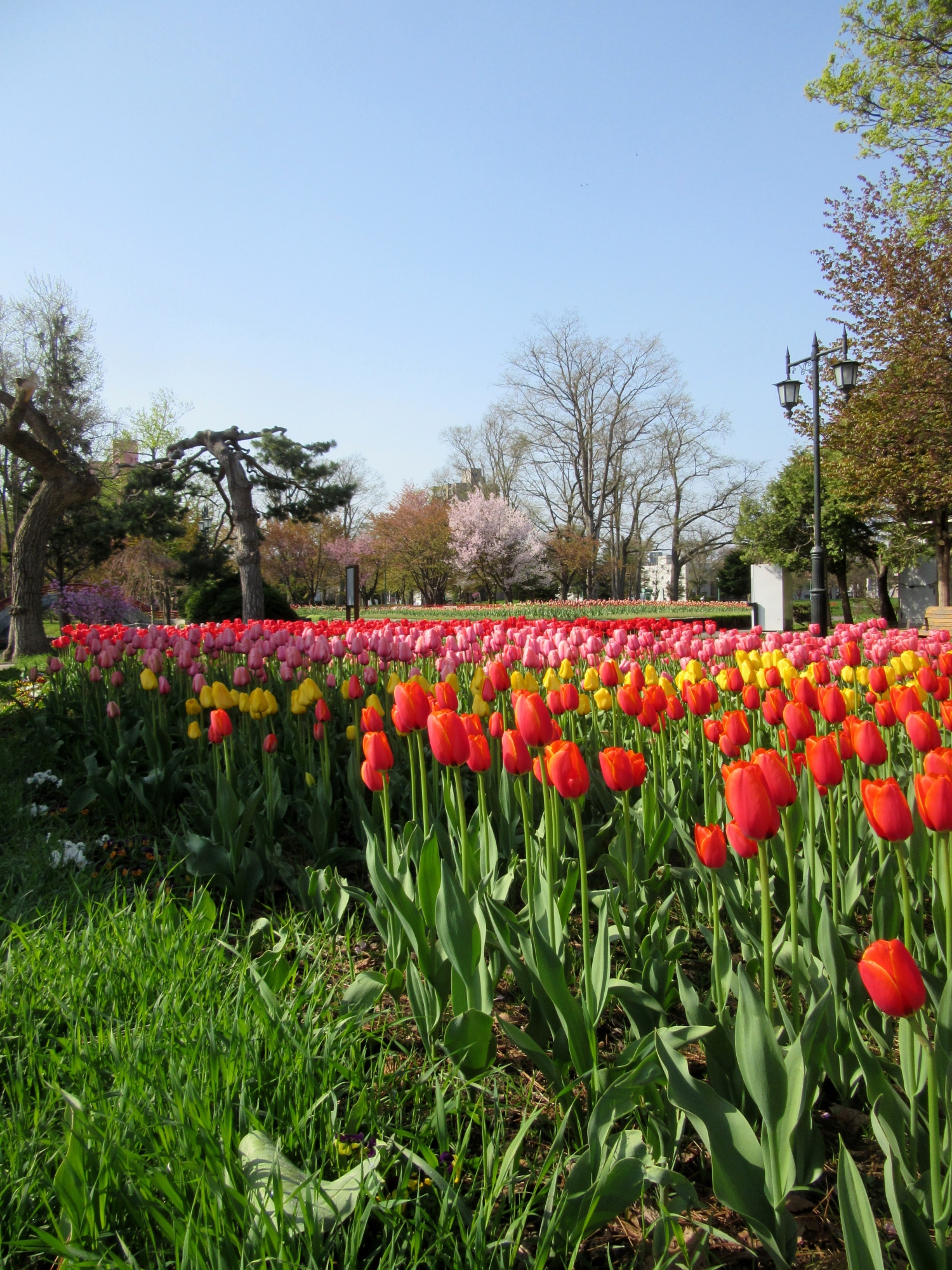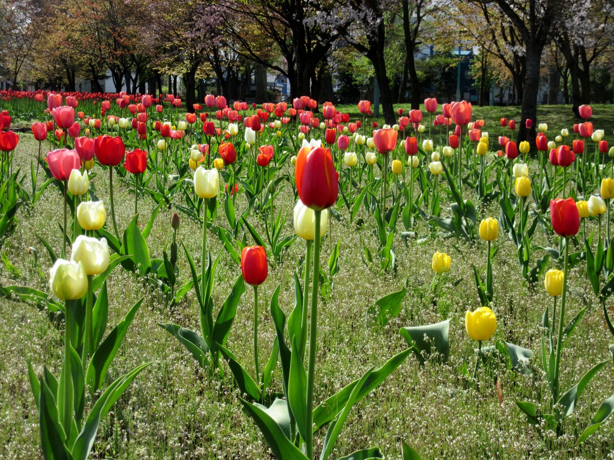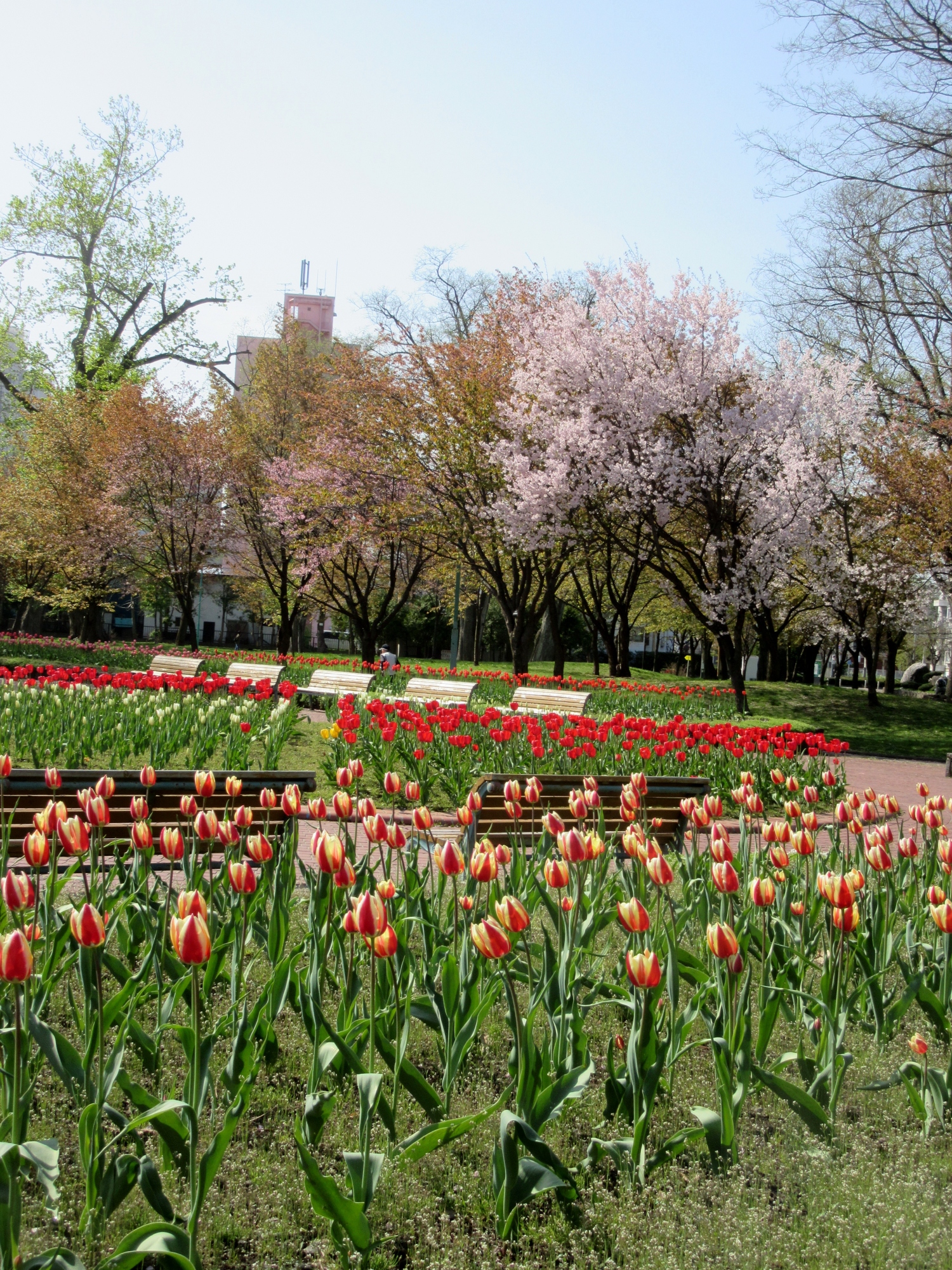 桜とチューリップがそれぞれに満開って・・・北ならばこそ!