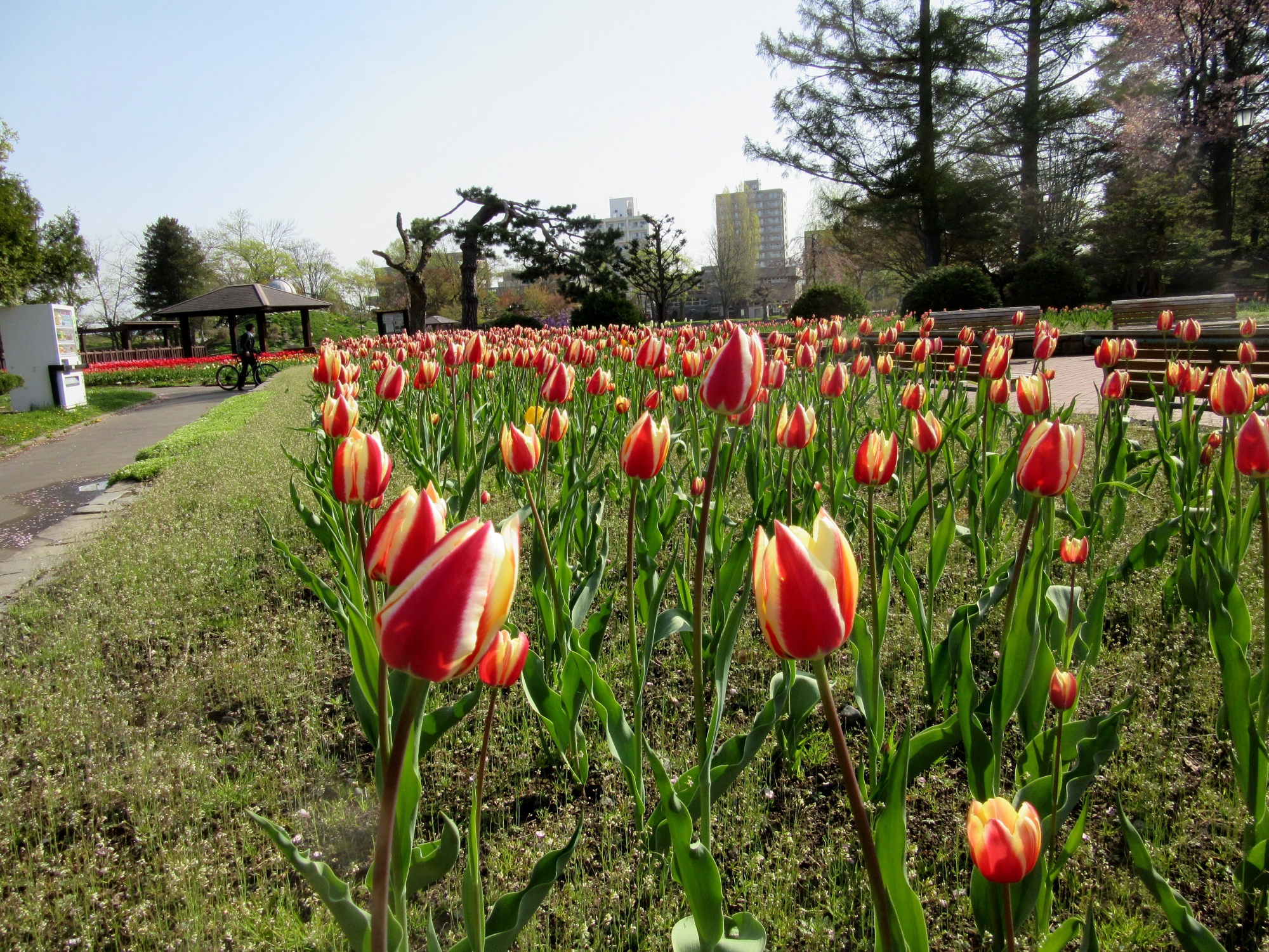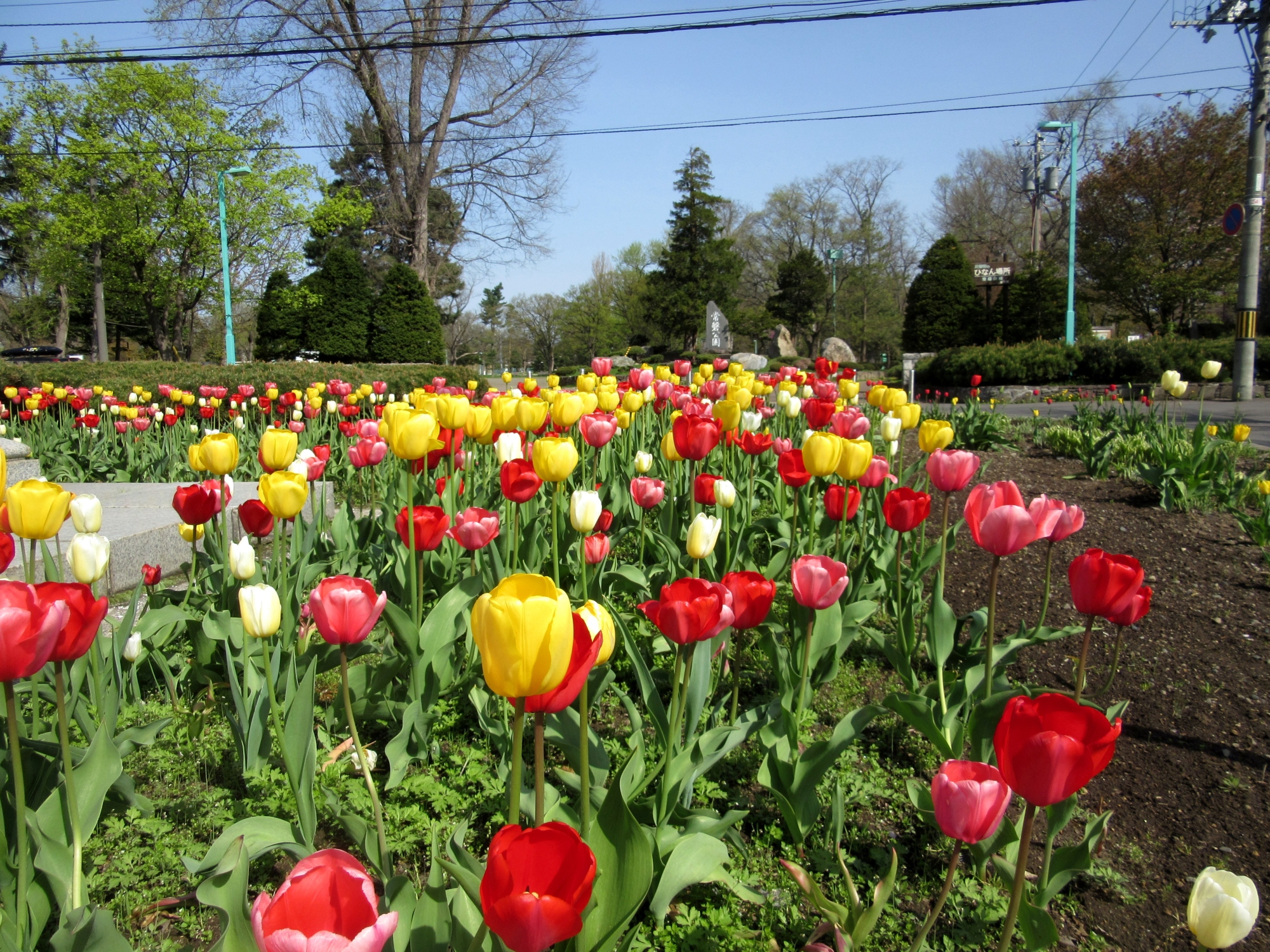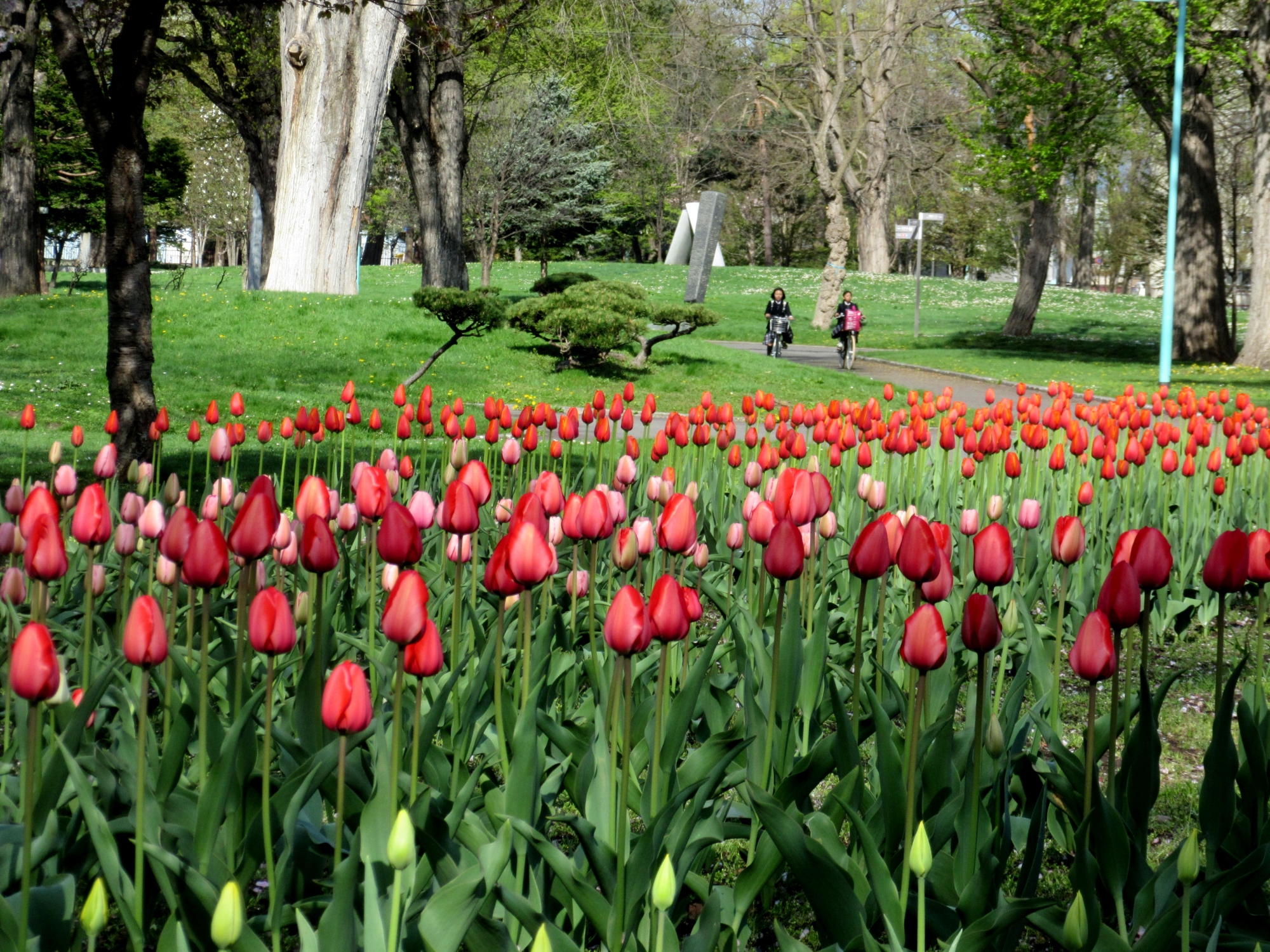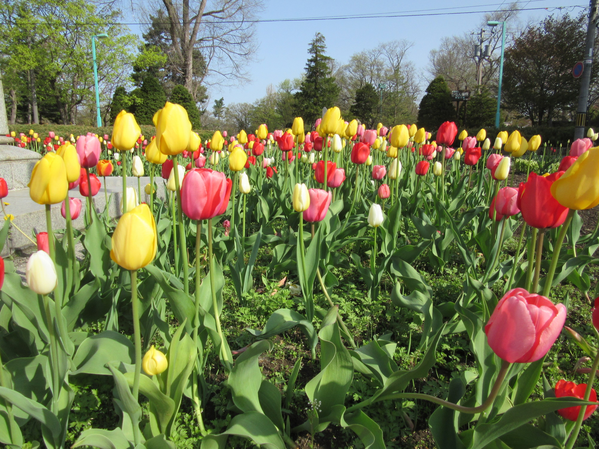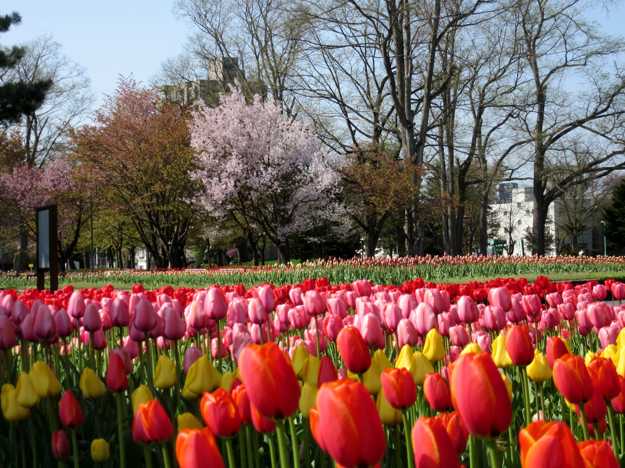 桜とチューリップがそれぞれに満開って・・・北ならばこそ!