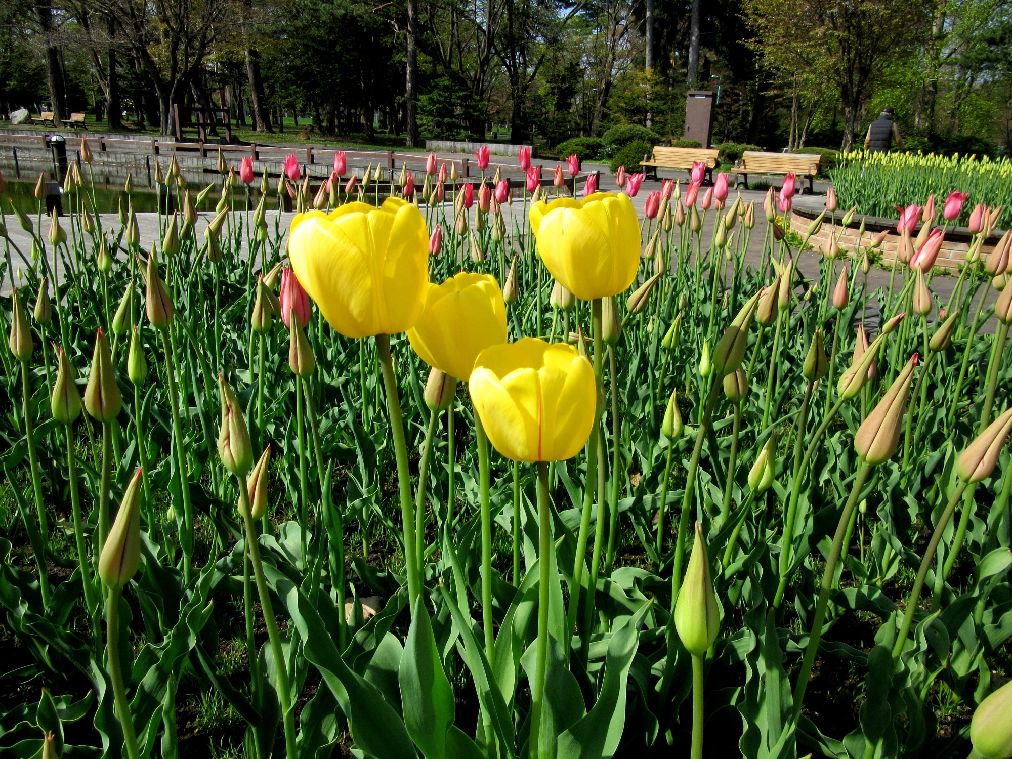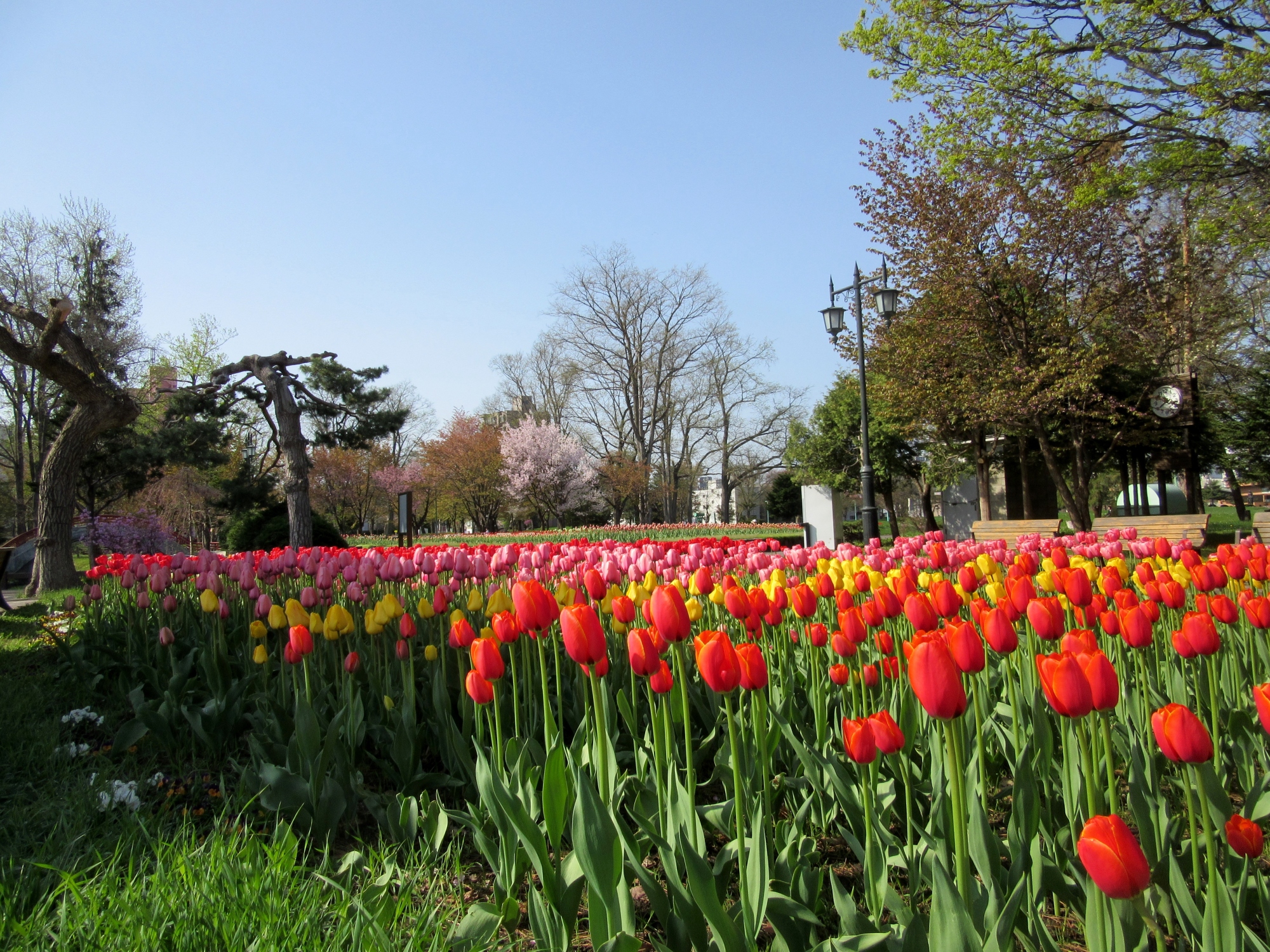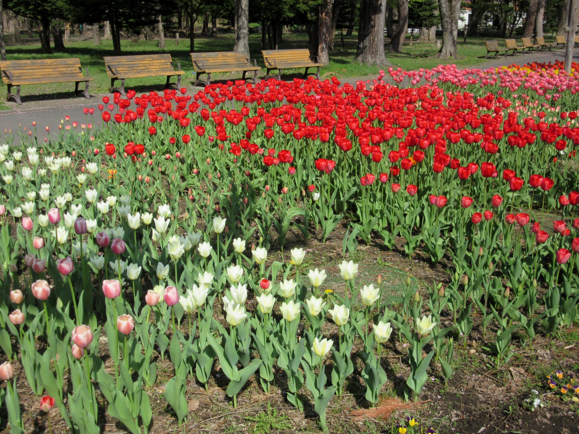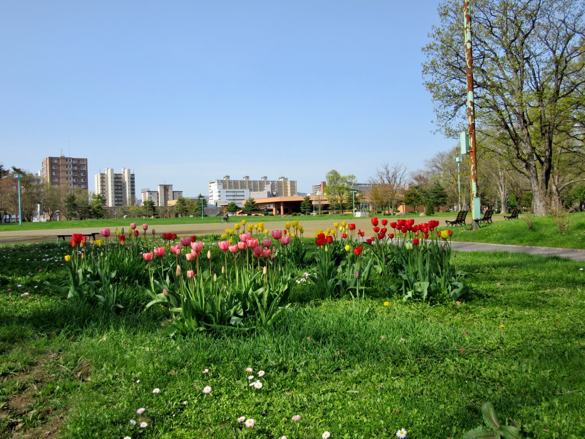 桜とチューリップがそれぞれに満開って・・・北ならばこそ!