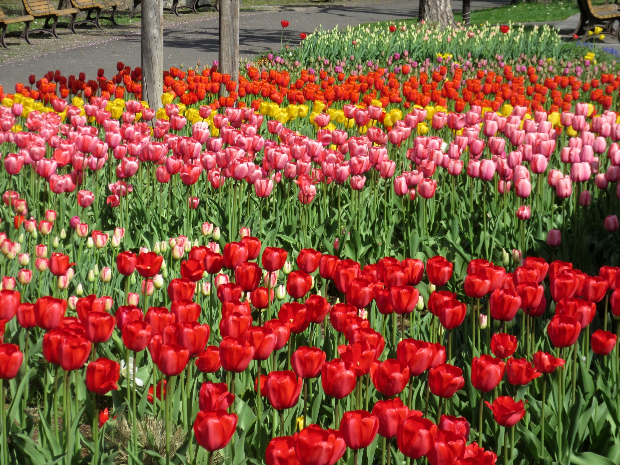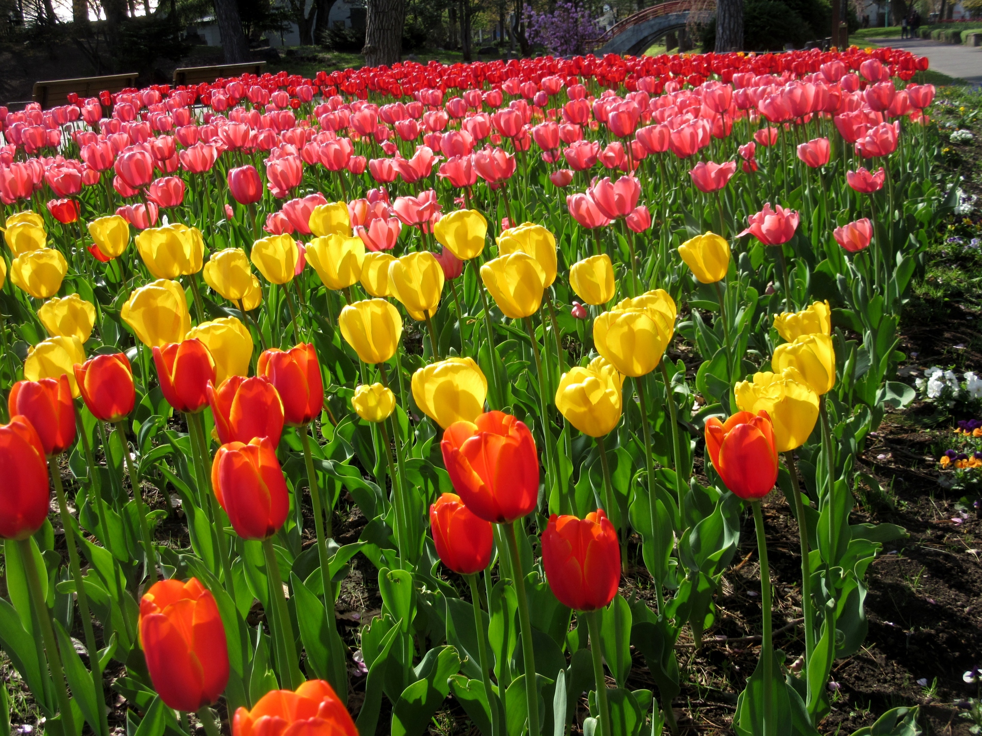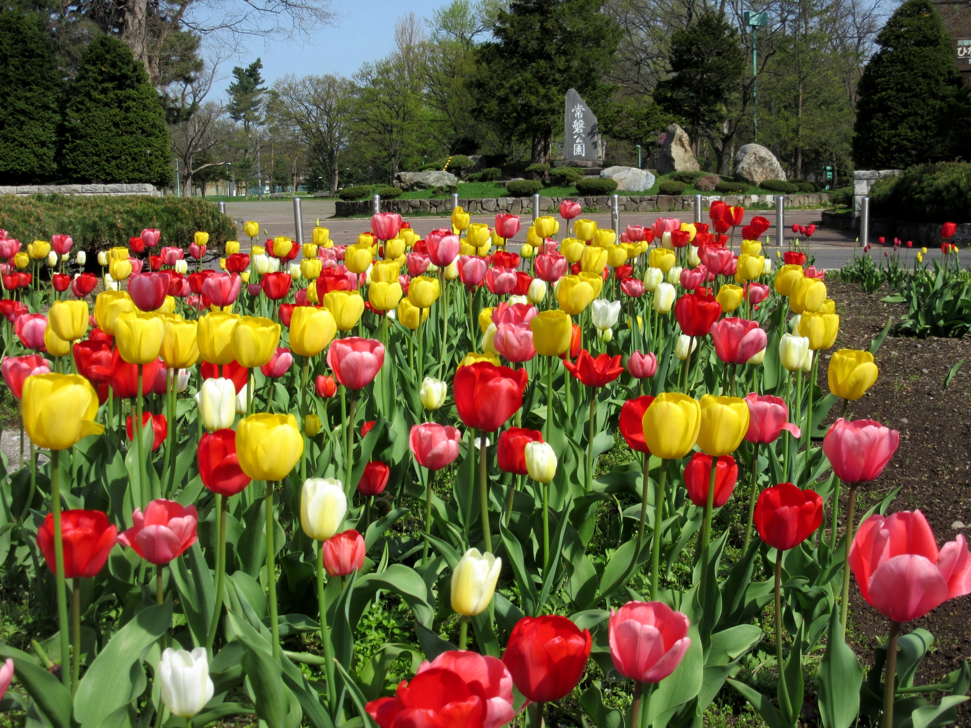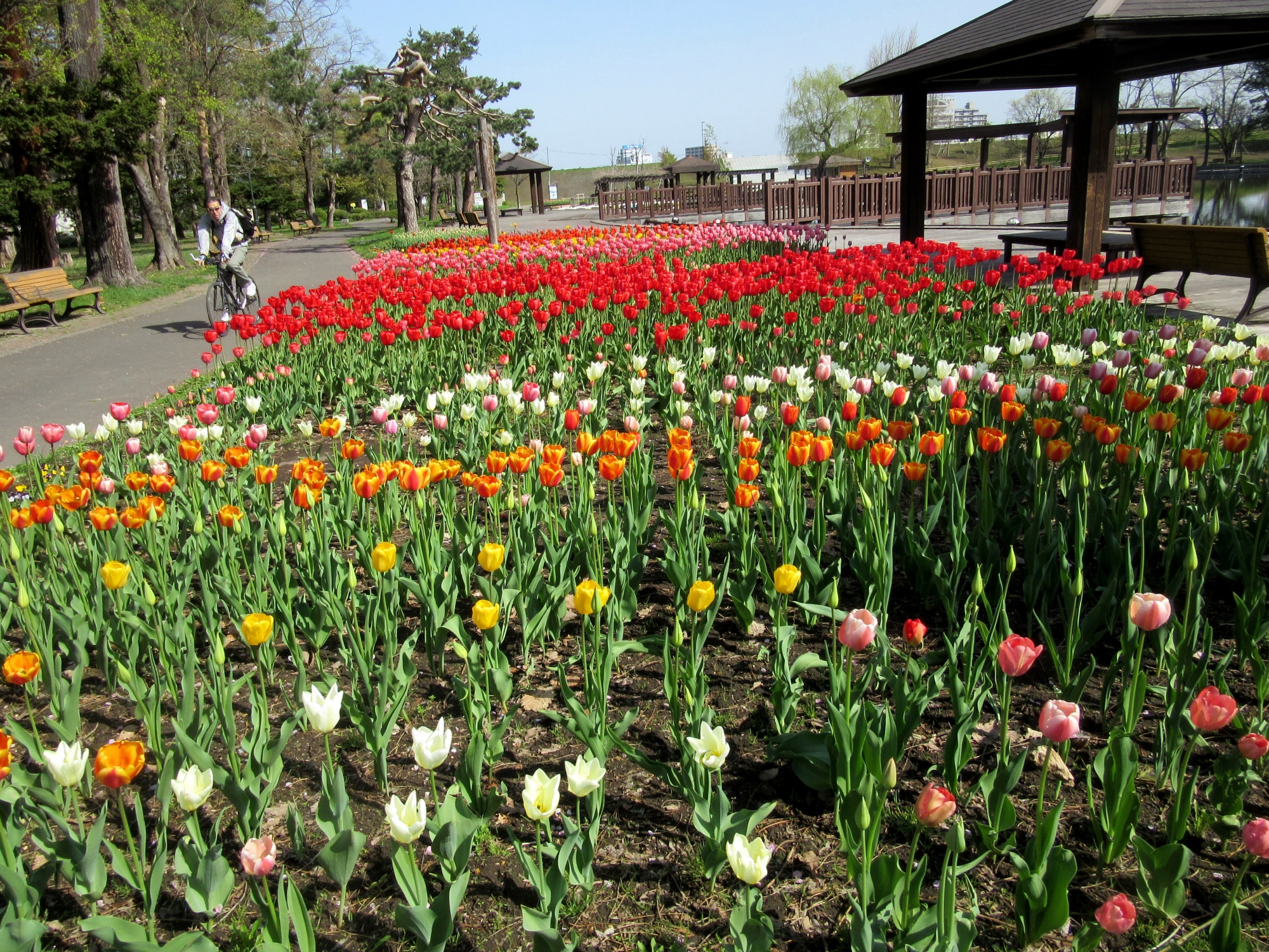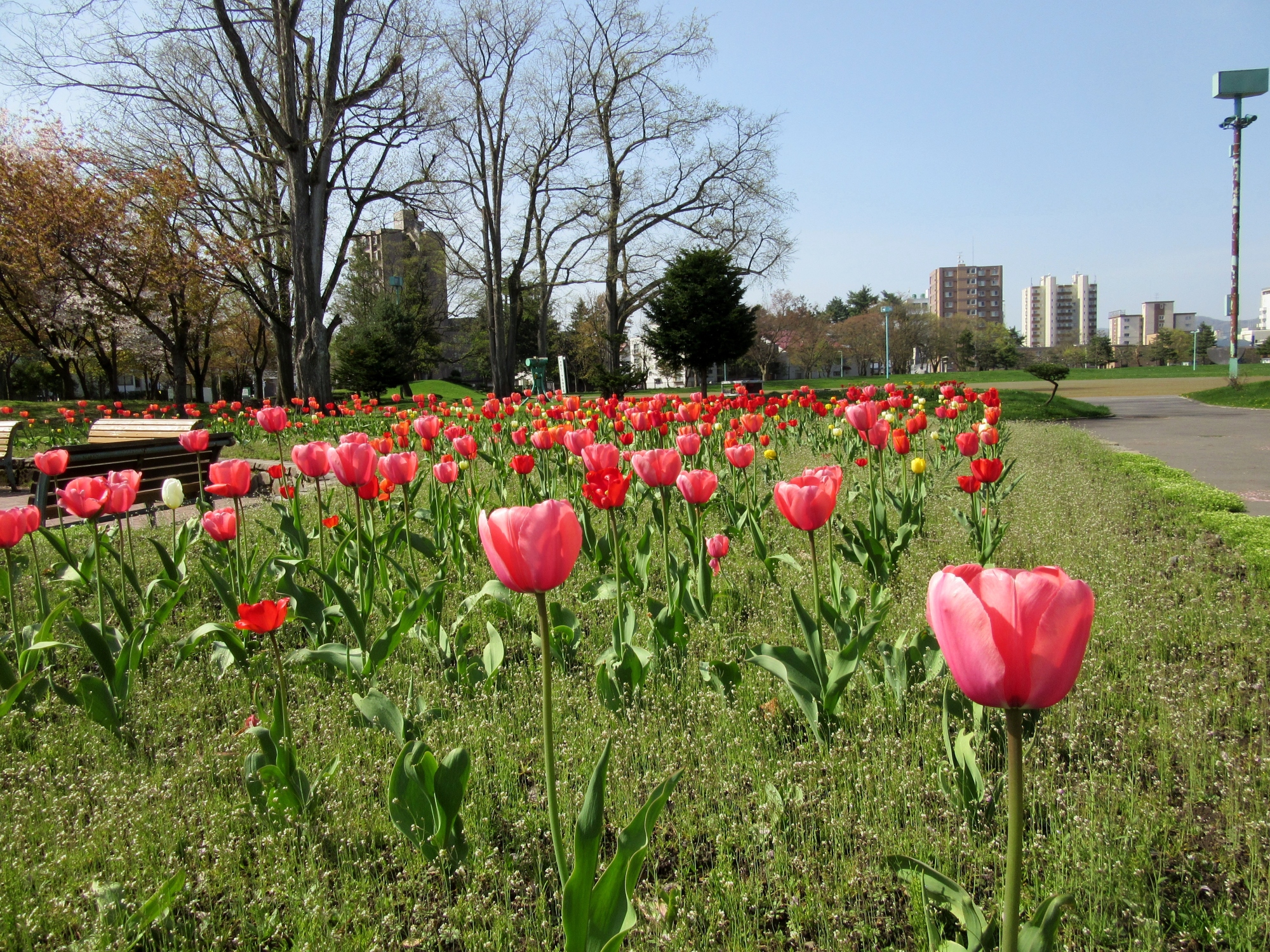 桜とチューリップがそれぞれに満開って・・・北ならばこそ!
