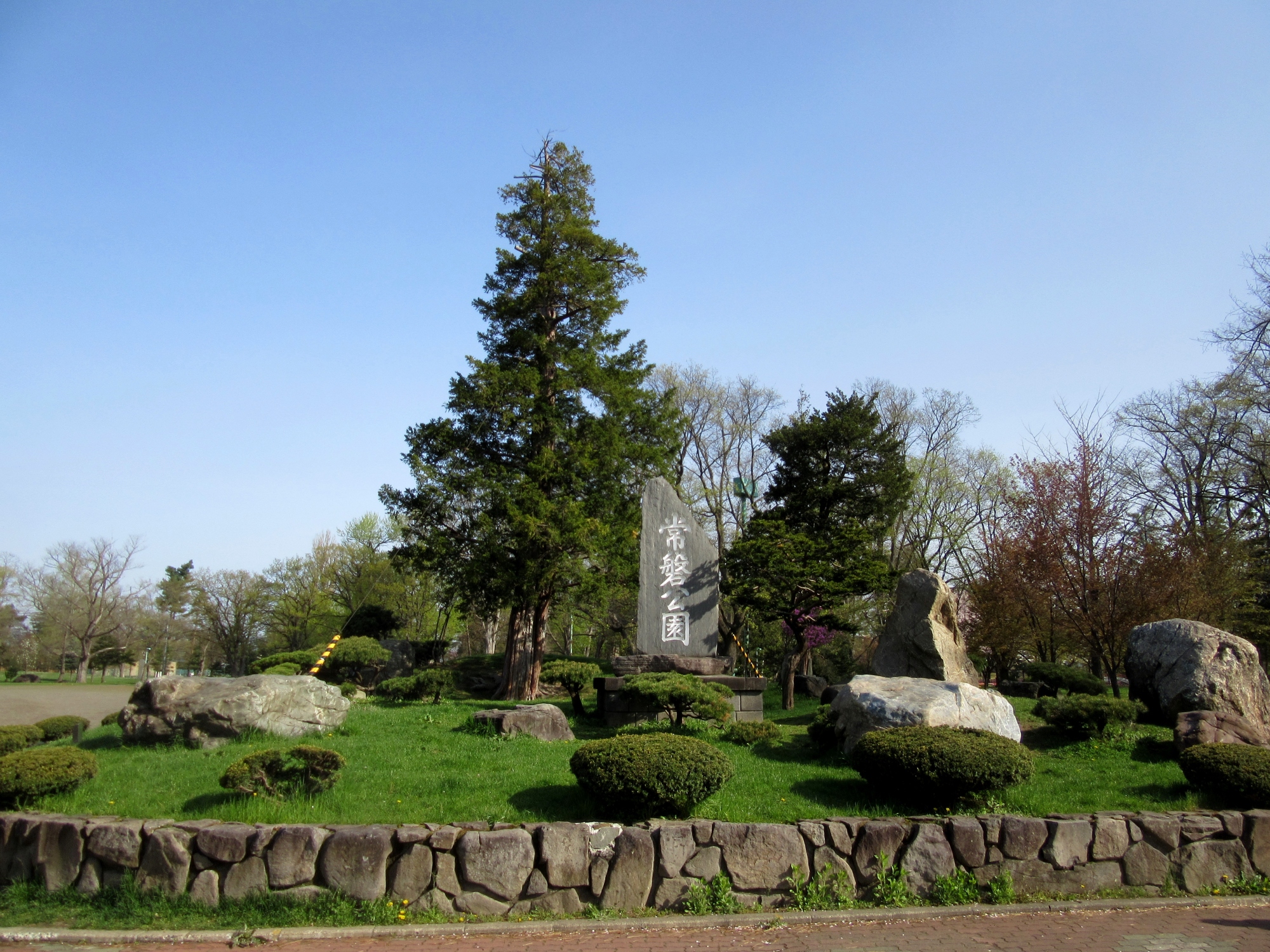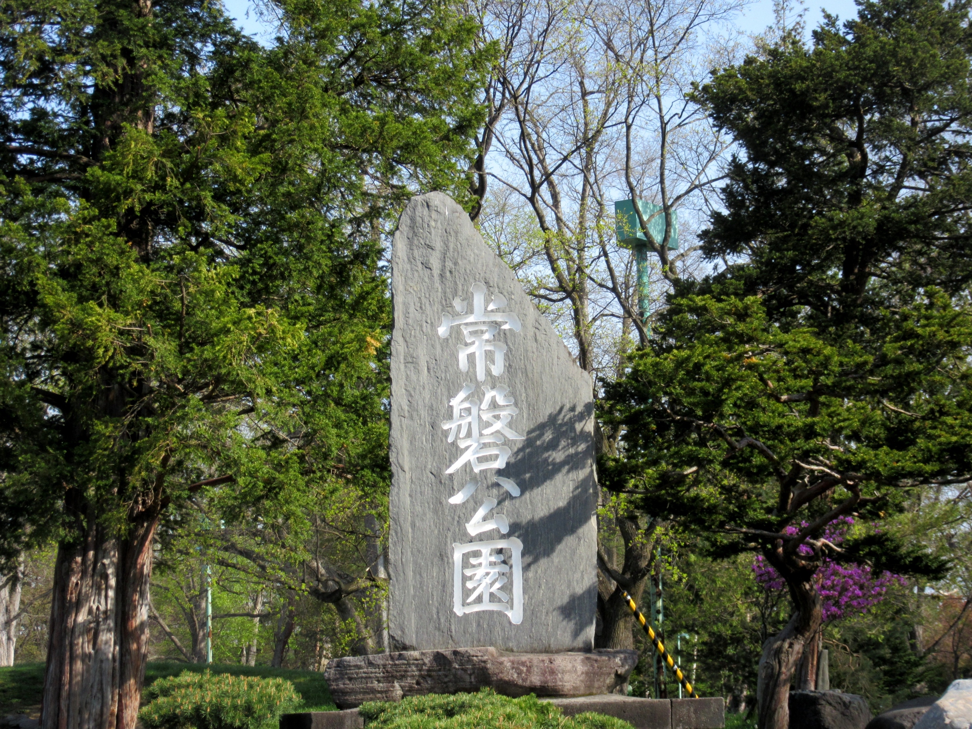 【なお、付近の地名などは「常盤」と表記するが公園名は「常磐」である。これは、1928年(昭和3年)の公園石碑建立時に揮毫した字の間違いがそのまま公園名として決まったという説や、割れることを連想させる「皿」よりも壊れにくい「石」の字を用いたという説、1919年(大正8年)陸地測量部(現在の国土地理院)発行の地図による付近の町名には「常磐通」と書かれているためこれを採用したという説がある。】だそうです。