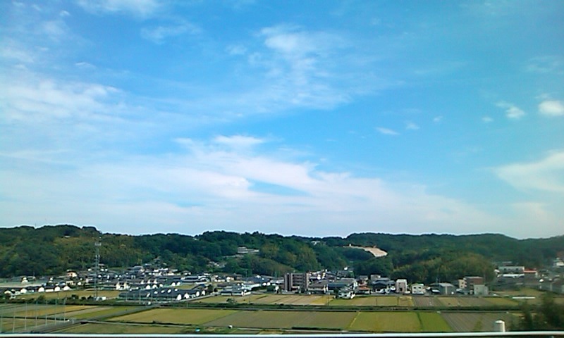 大学別館から南方向・・・コンベックス岡山の丘陵が見えています。