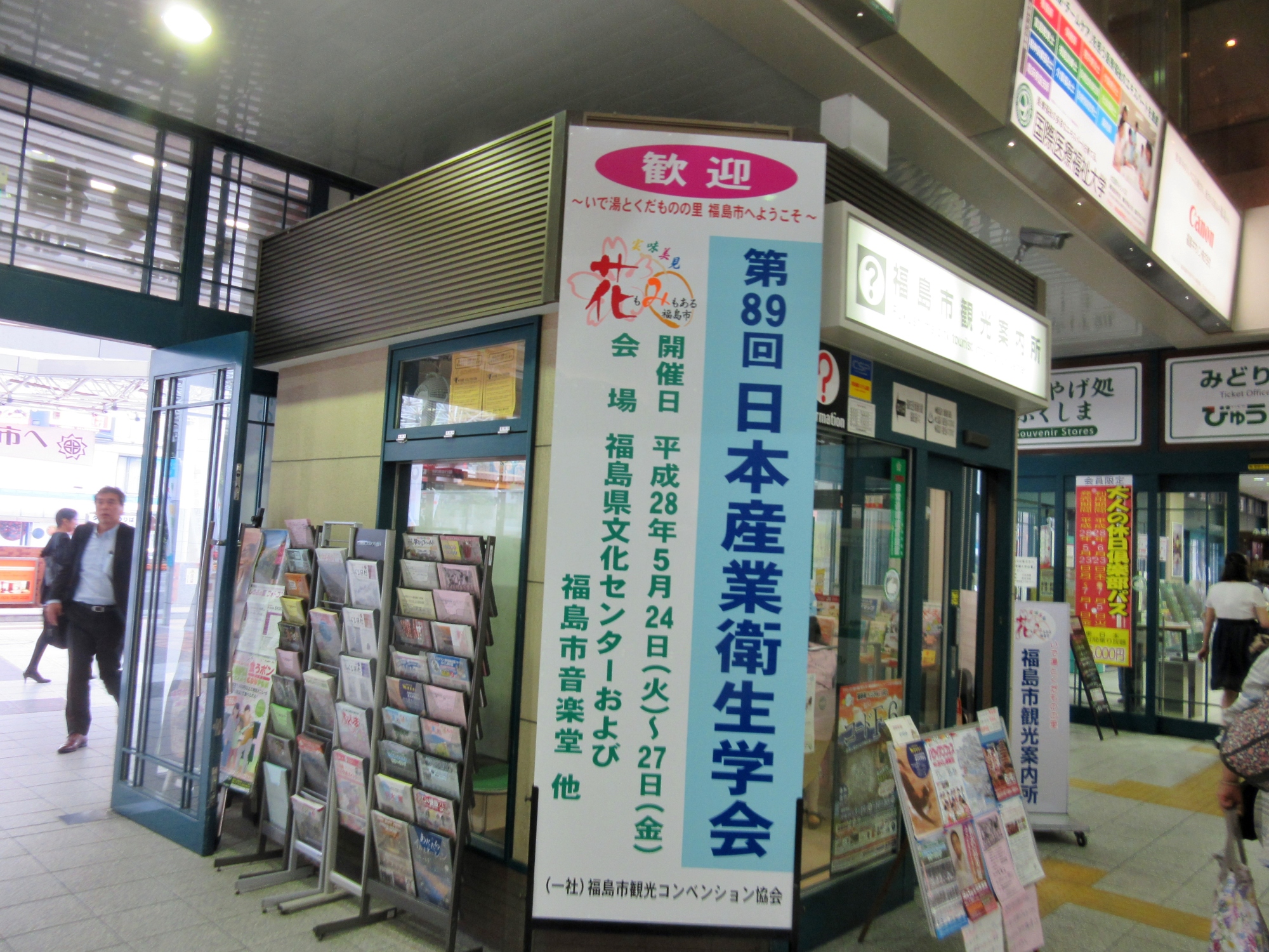 さて,福島駅到着〜日本産業衛生学会への歓迎看板もありました。