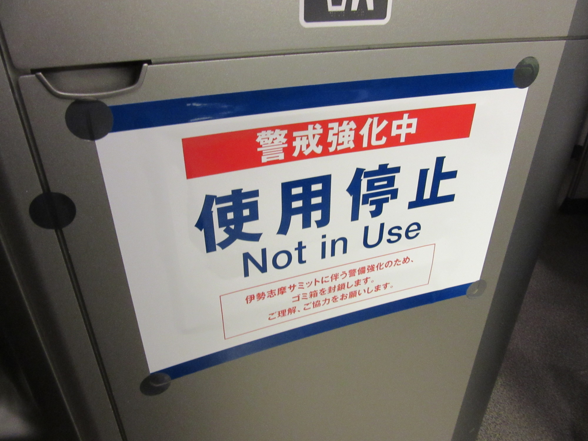 そして・・伊勢志摩サミットで・・新幹線のゴミ箱は使用禁止,その後の情報では,大阪駅とかコインロッカーも使えなかったそうです。