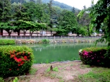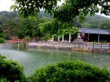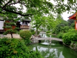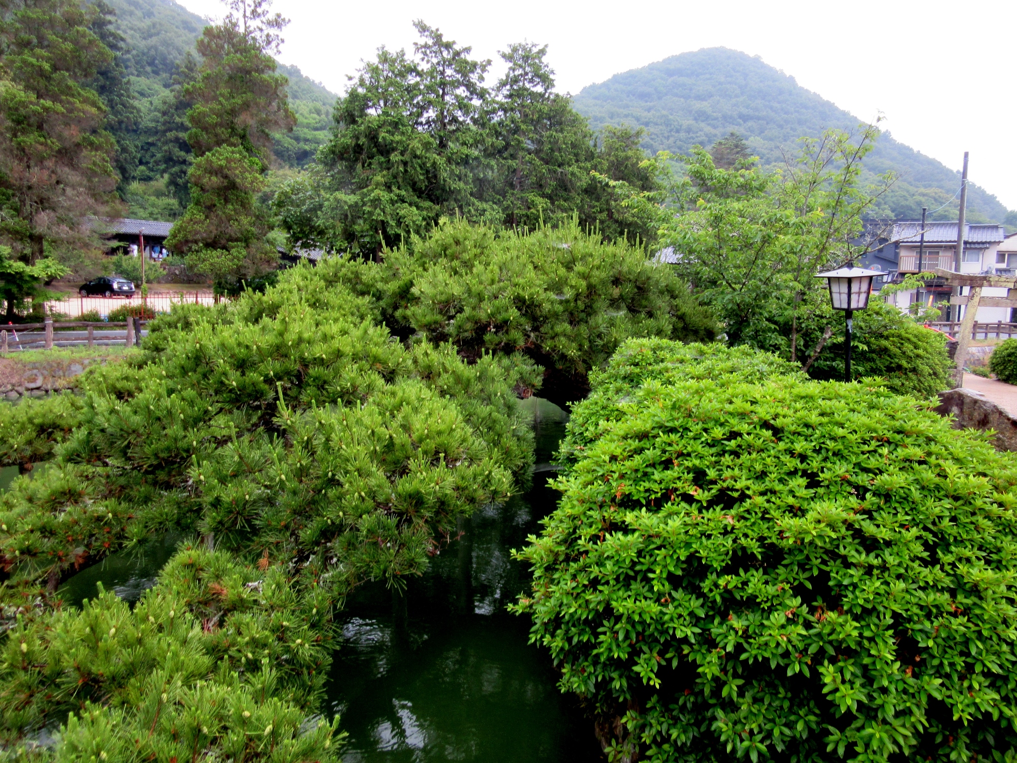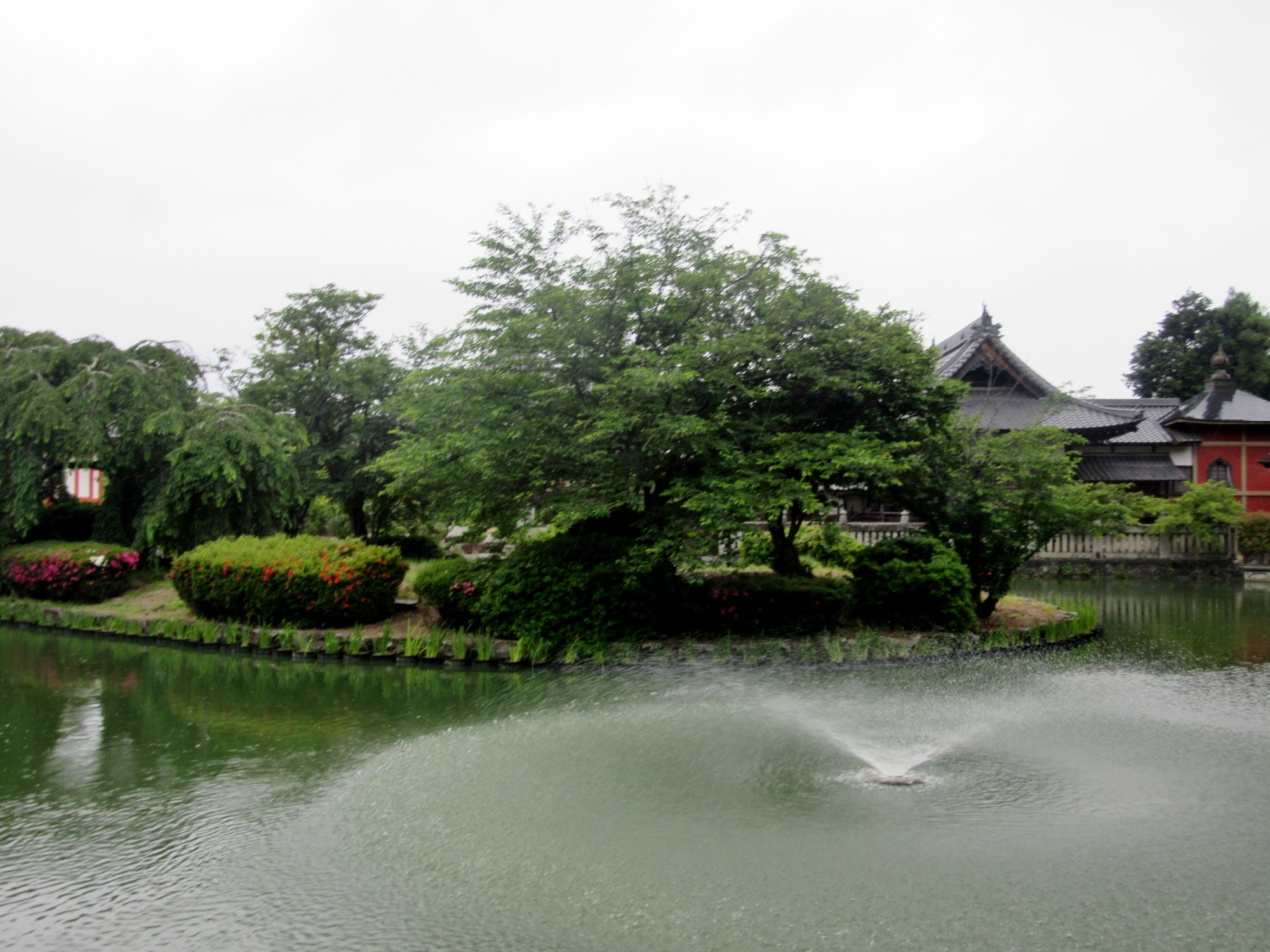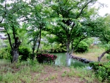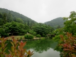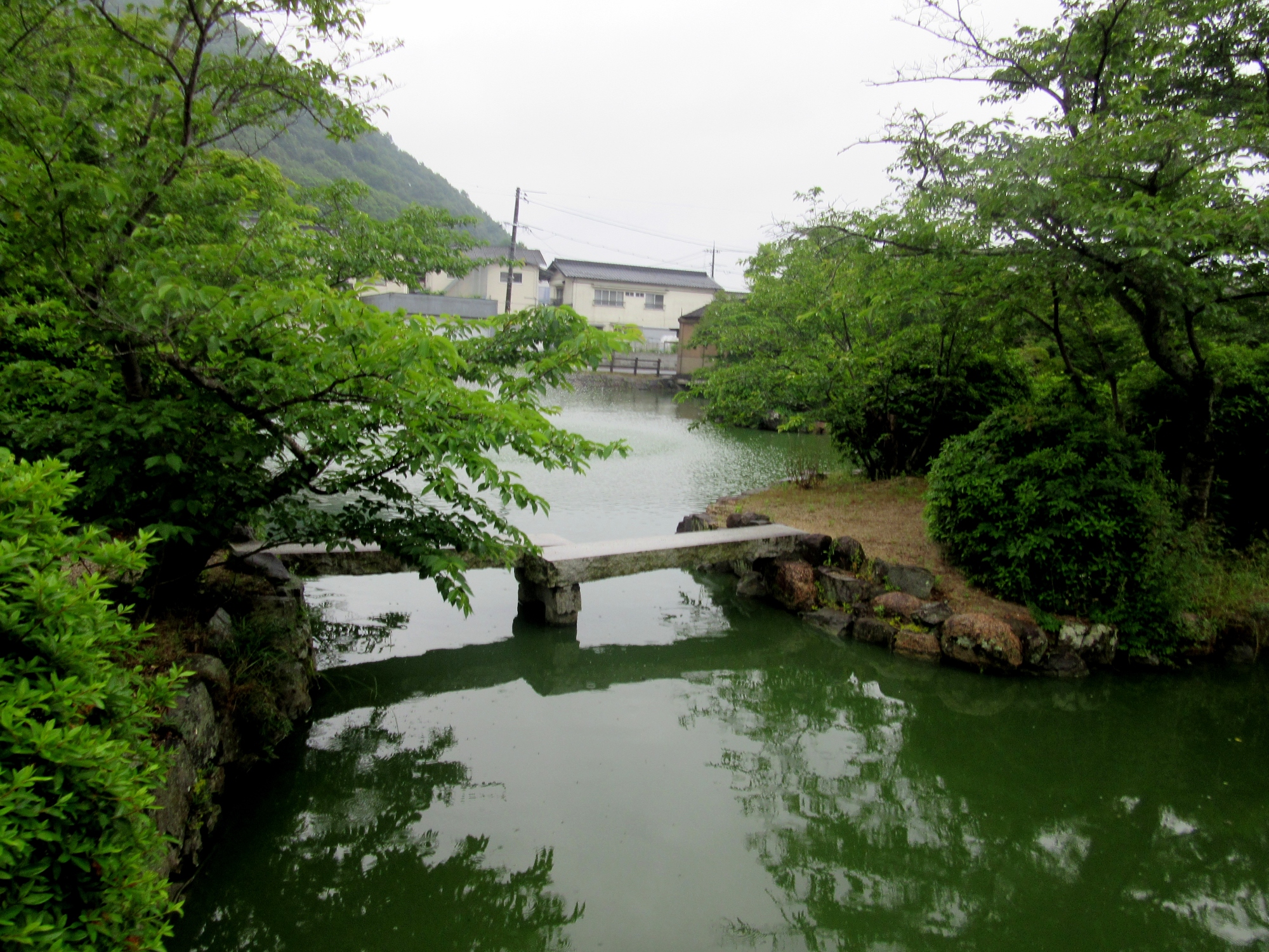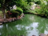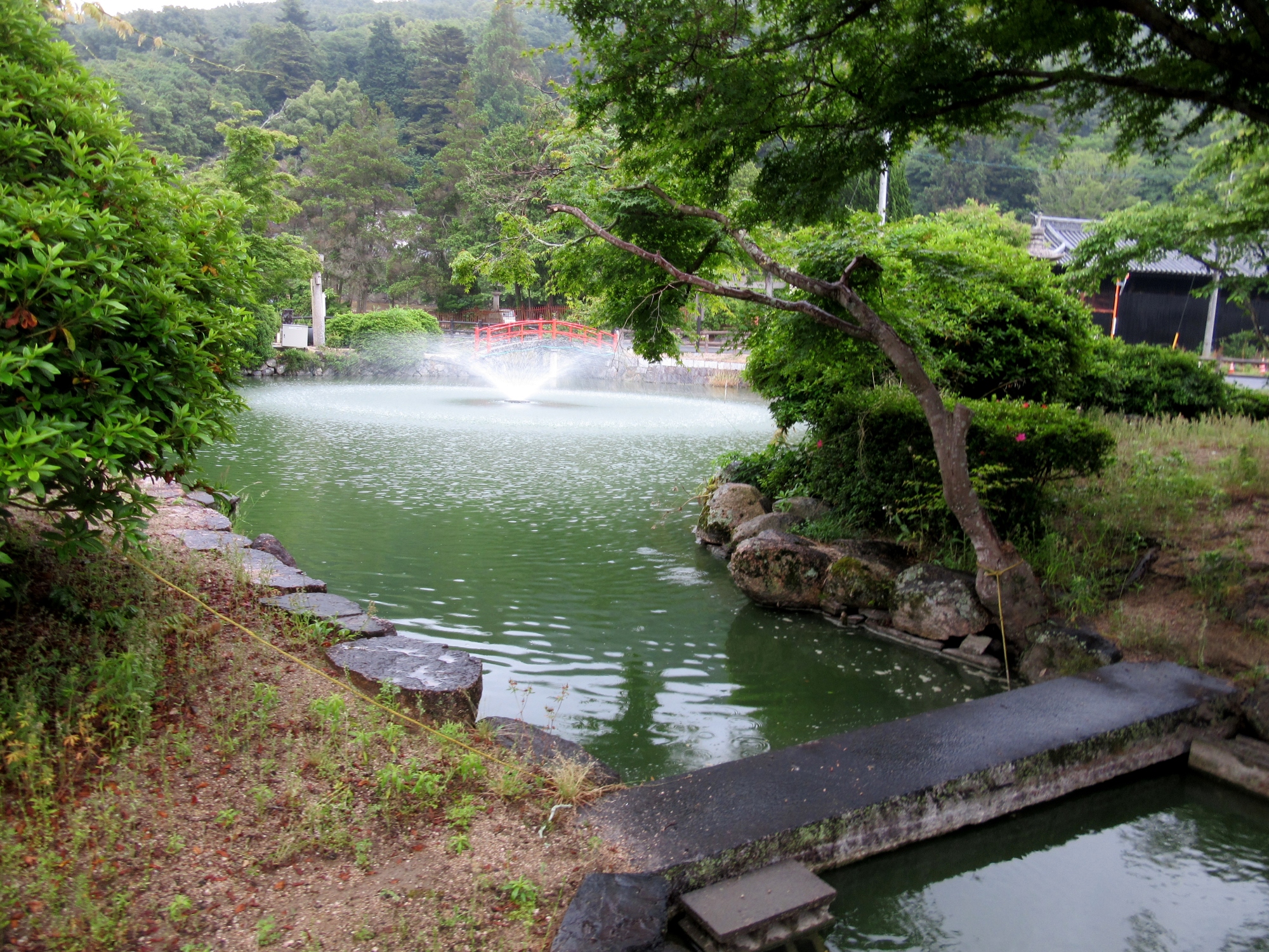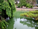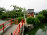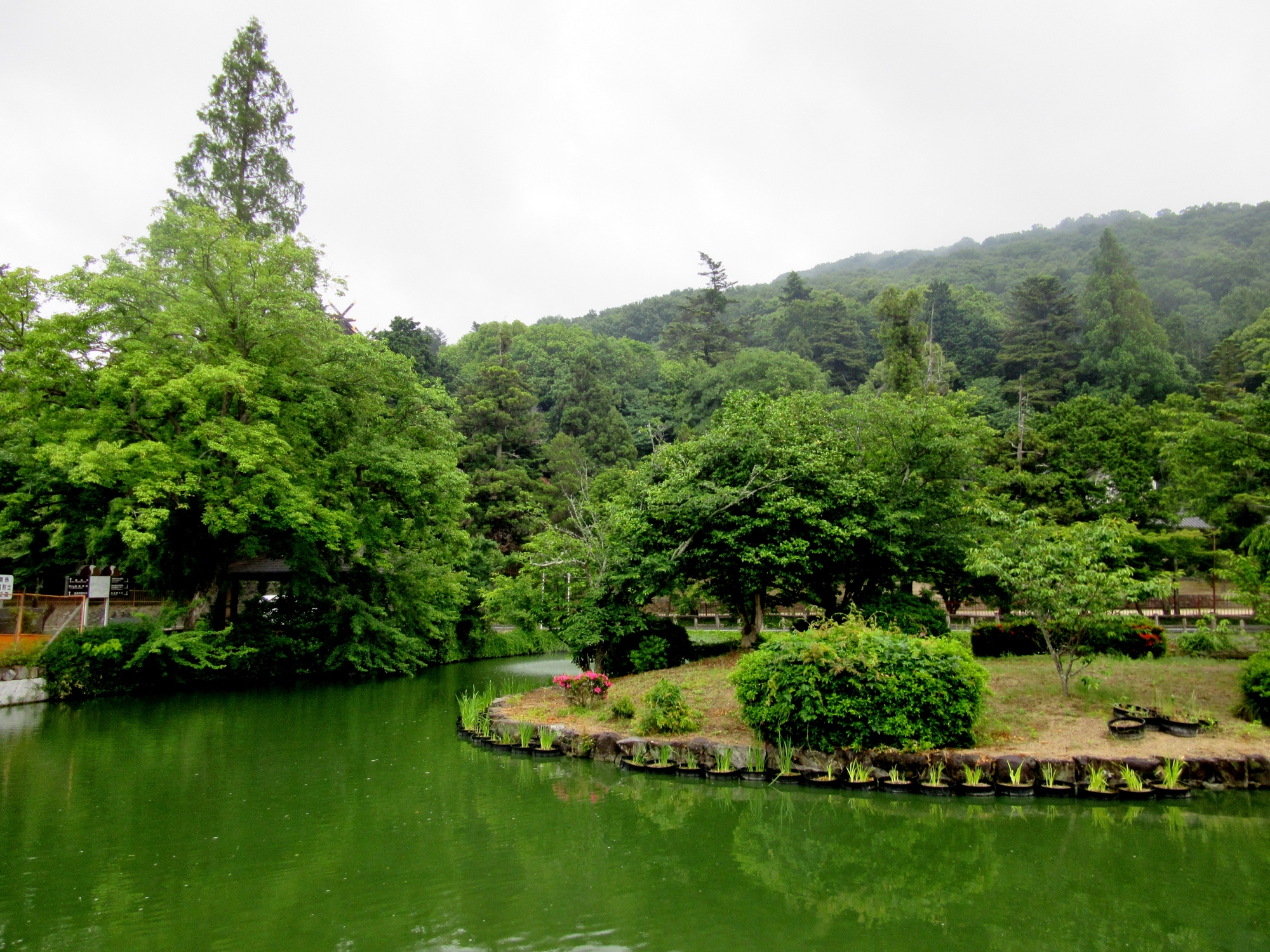池は吉備津神社の神池だそうで,島が3つほど・・