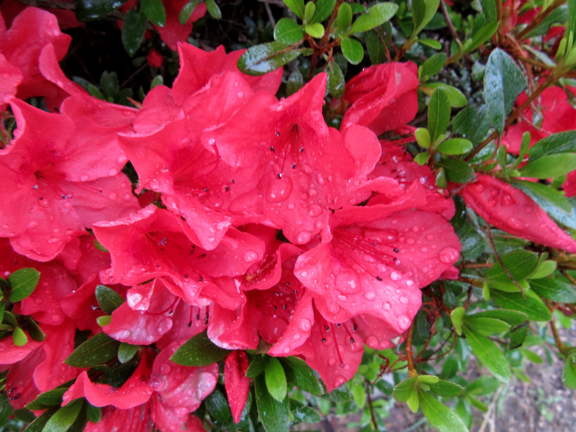 まだ躑躅ですね・・雨粒を沢山抱えています。