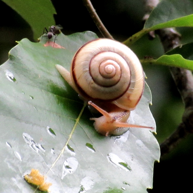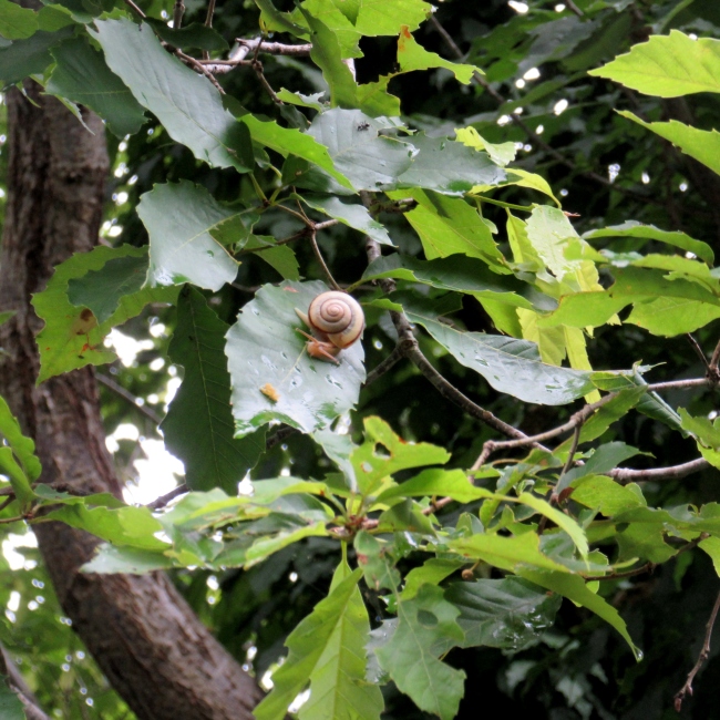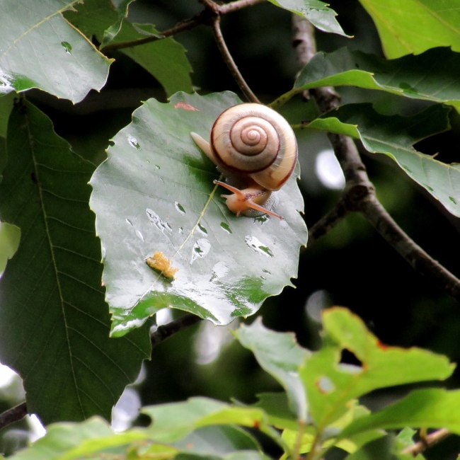 蝸牛さん,そんな上の方の葉っぱに乗っかっているけど・・大丈夫?