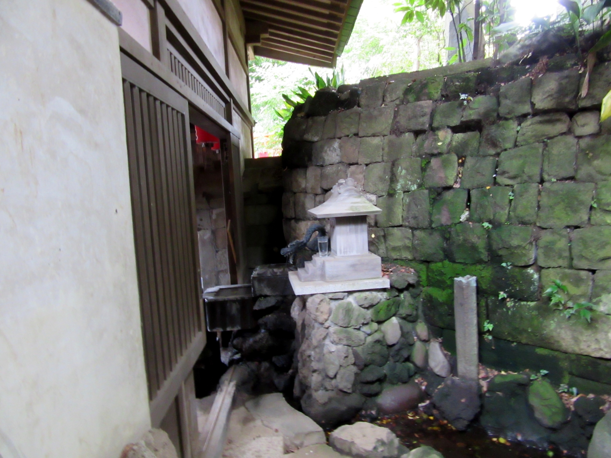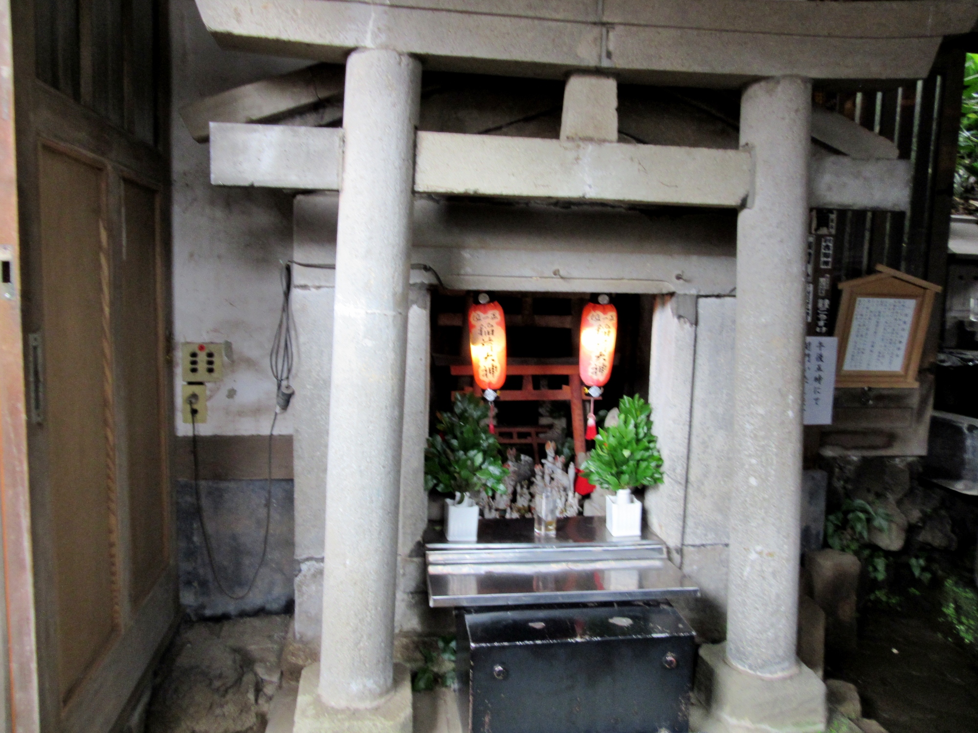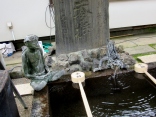 泉があって・・・そこは【竜の口から、こんこんと水が流れており、それが下の水盤に溜まっています。これが「一粒萬倍の泉」です。説明書きには・・・『万物は天・地・水の恵みを受けて生成化育し、米は一粒の種より萬倍の稲穂となる。当稲荷社は上社が「天の恵みの霊」を、下社が「地の恵みの霊」と「霊泉」をお祀りする。家門、家業の繁栄を祈り、印鑑、銭に、この霊水を注ぐが吉。また、持ち帰りて、家、店の入り口、四隅に注ぎ、清く明るき心をもって暮らし、商売するが吉。注ぎし銭の一部は、門前の商家にて使用するが吉』】だそうです。