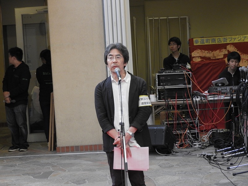 岡山県立大のアカペラグループ「パレット」,聖心女子大のハンドベル部,そして大槻,最後は山陽学園さんの「うらじゃ」です。渋谷実行委員長の閉会の挨拶と,ですね。