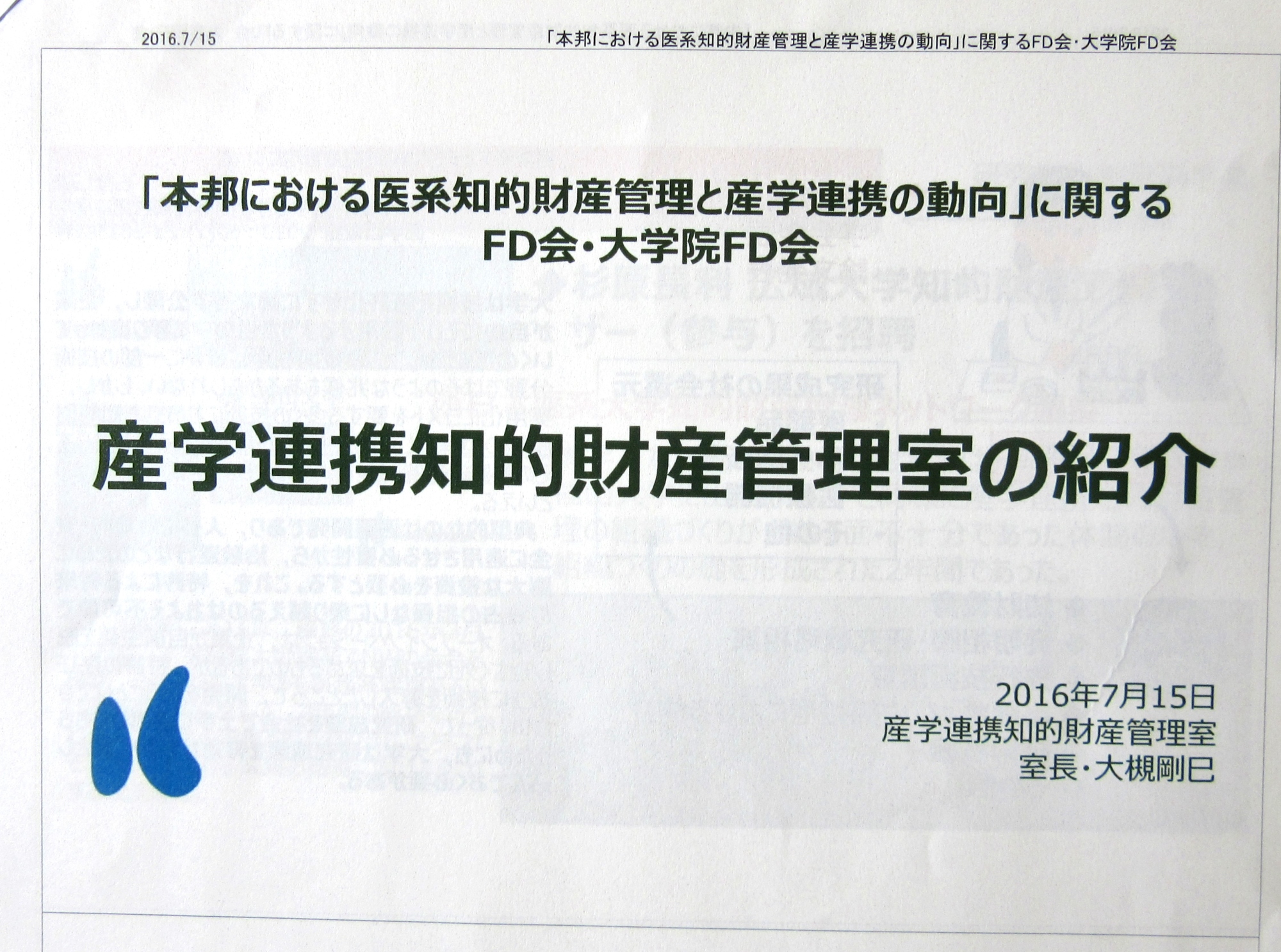 産学連携知的財産管理室からは,大槻が部屋の紹介と,西山参与に,事例紹介をしてもらいました。