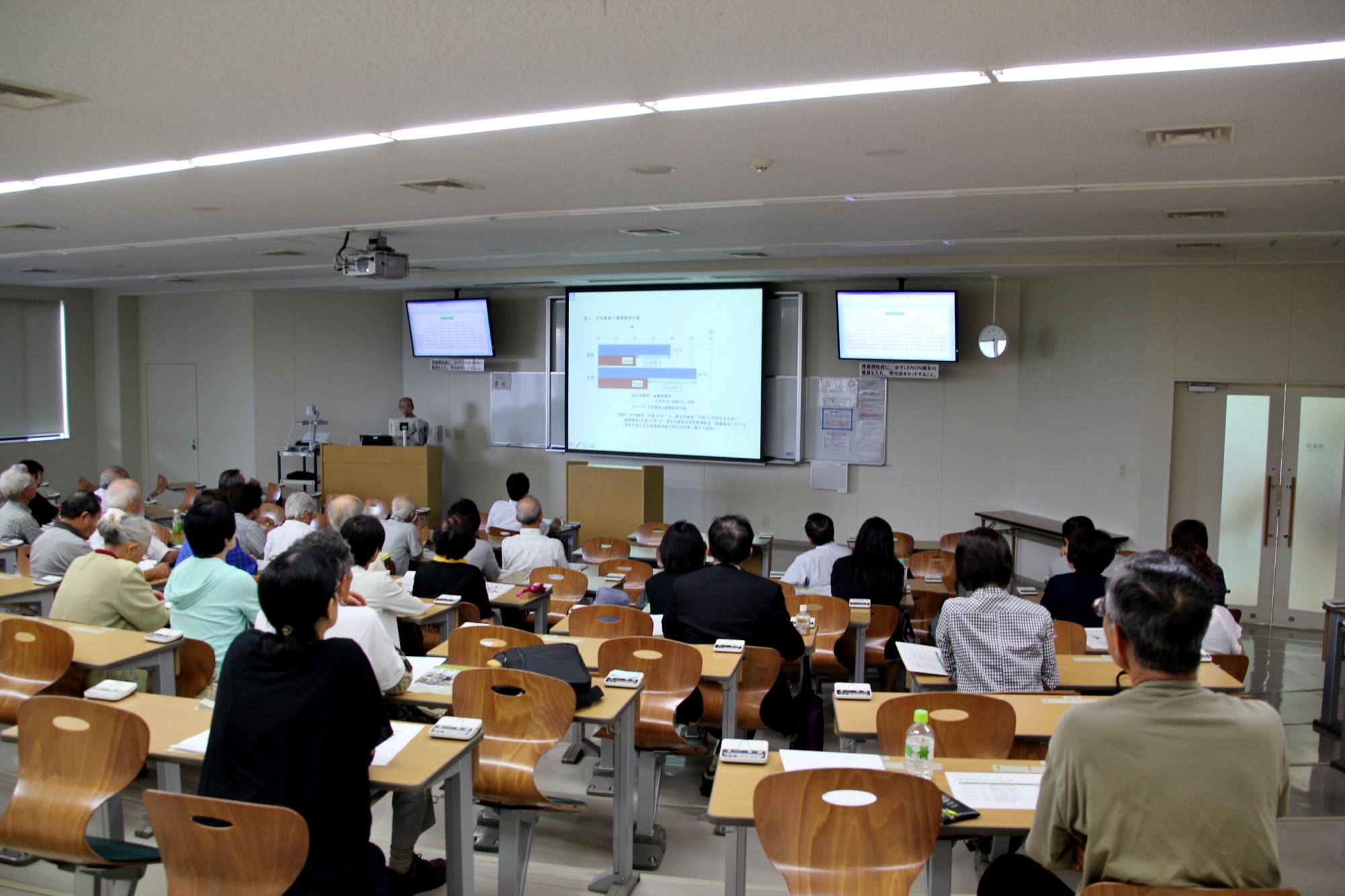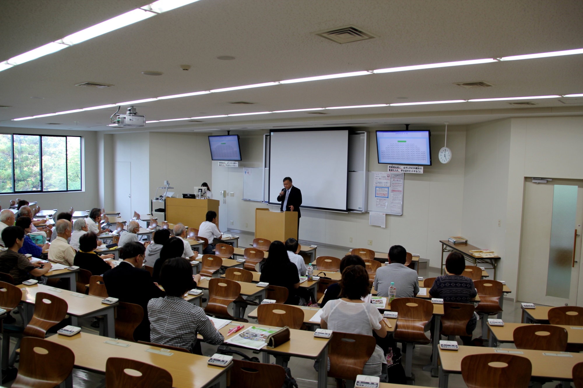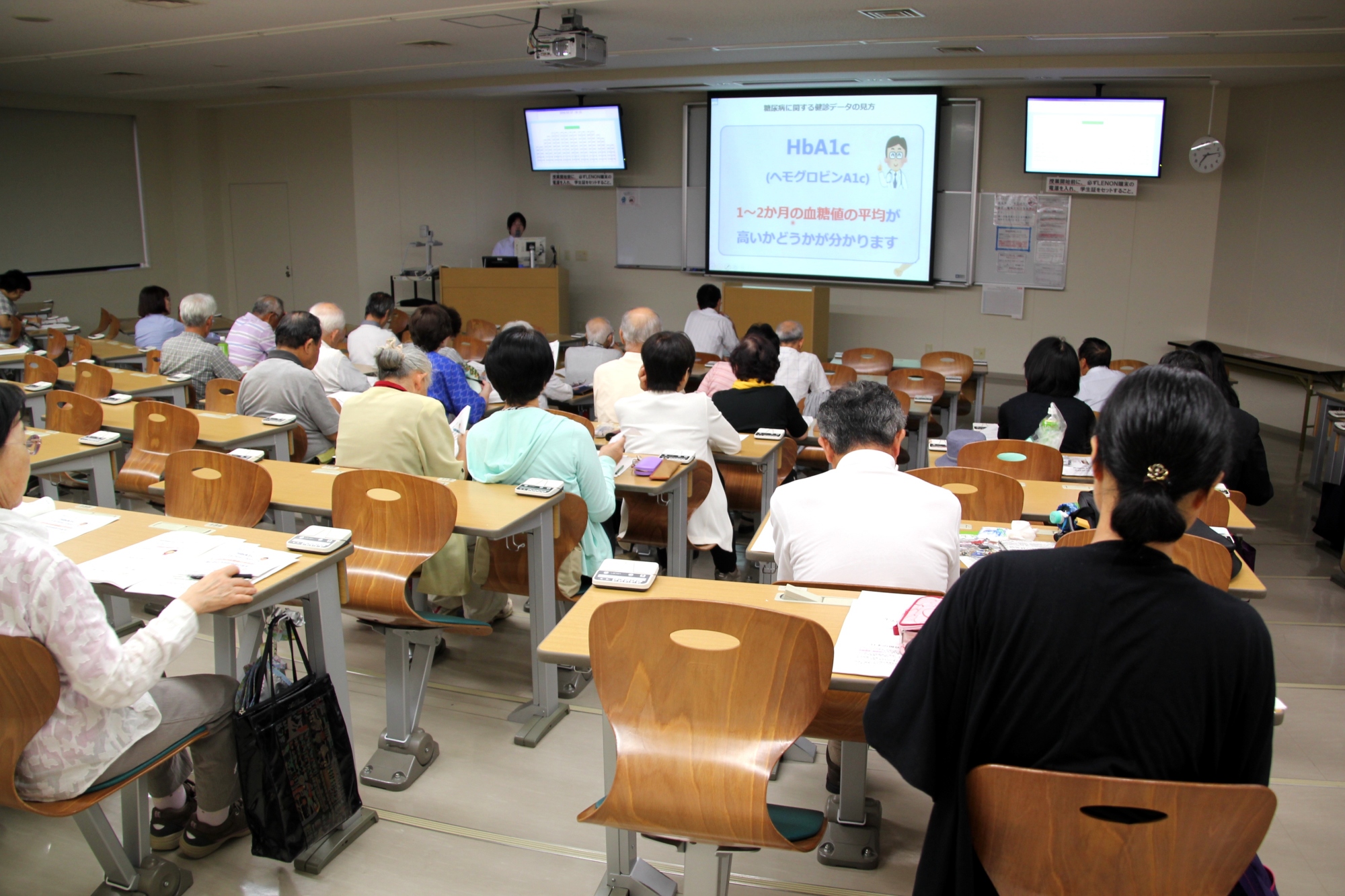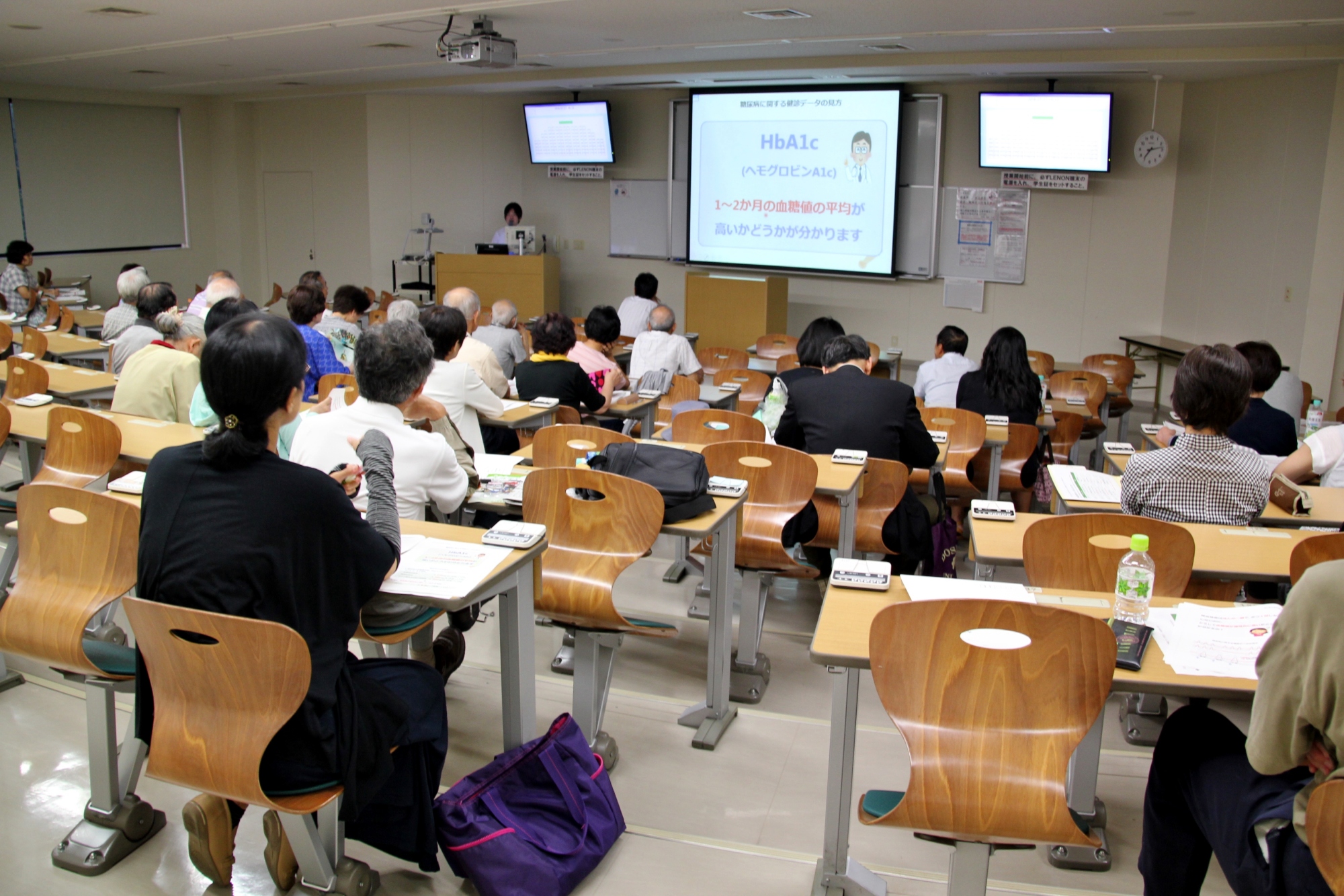 今回は大槻が,大学連携・産学官連携窓口を担当しているということで,企画運営に主導的に参画して,大学庶務課の皆さんにご協力いただきまして,30人は確保しないとならないところ・・実際には,48名の応募を頂き,皆さんにご参加頂きました。「生活習慣病について学ぼ学ぼう!」です。