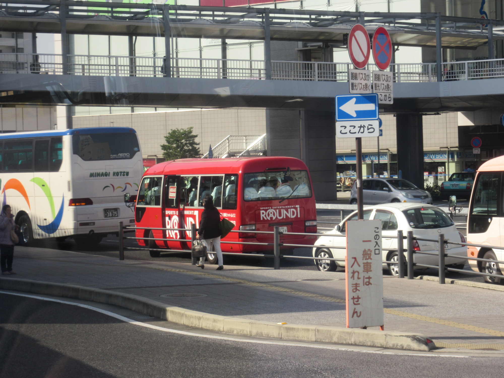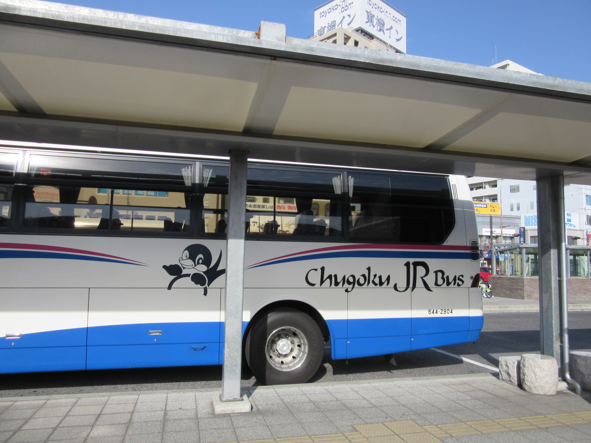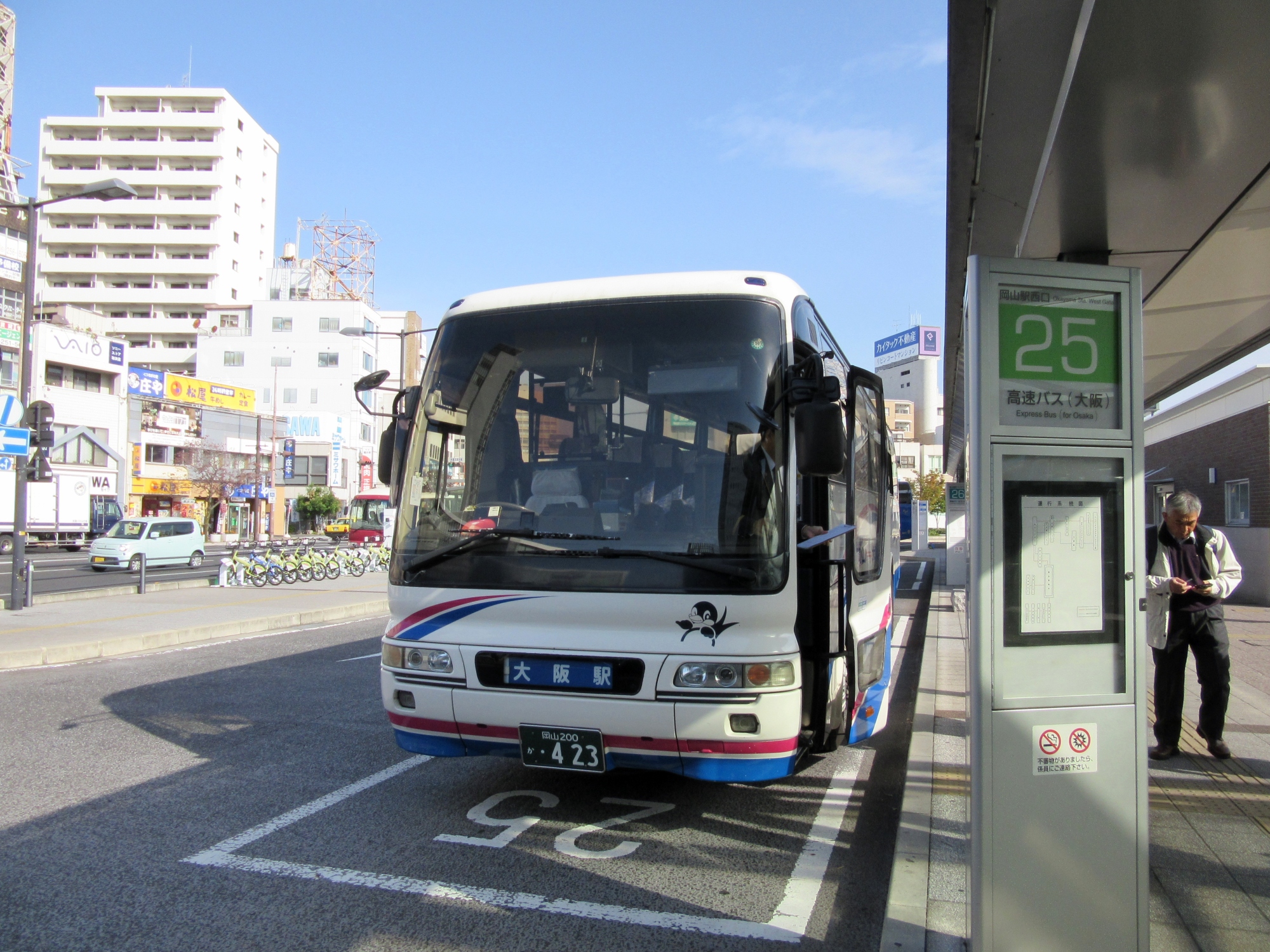 岡山駅西口バスターミナルから出発です。