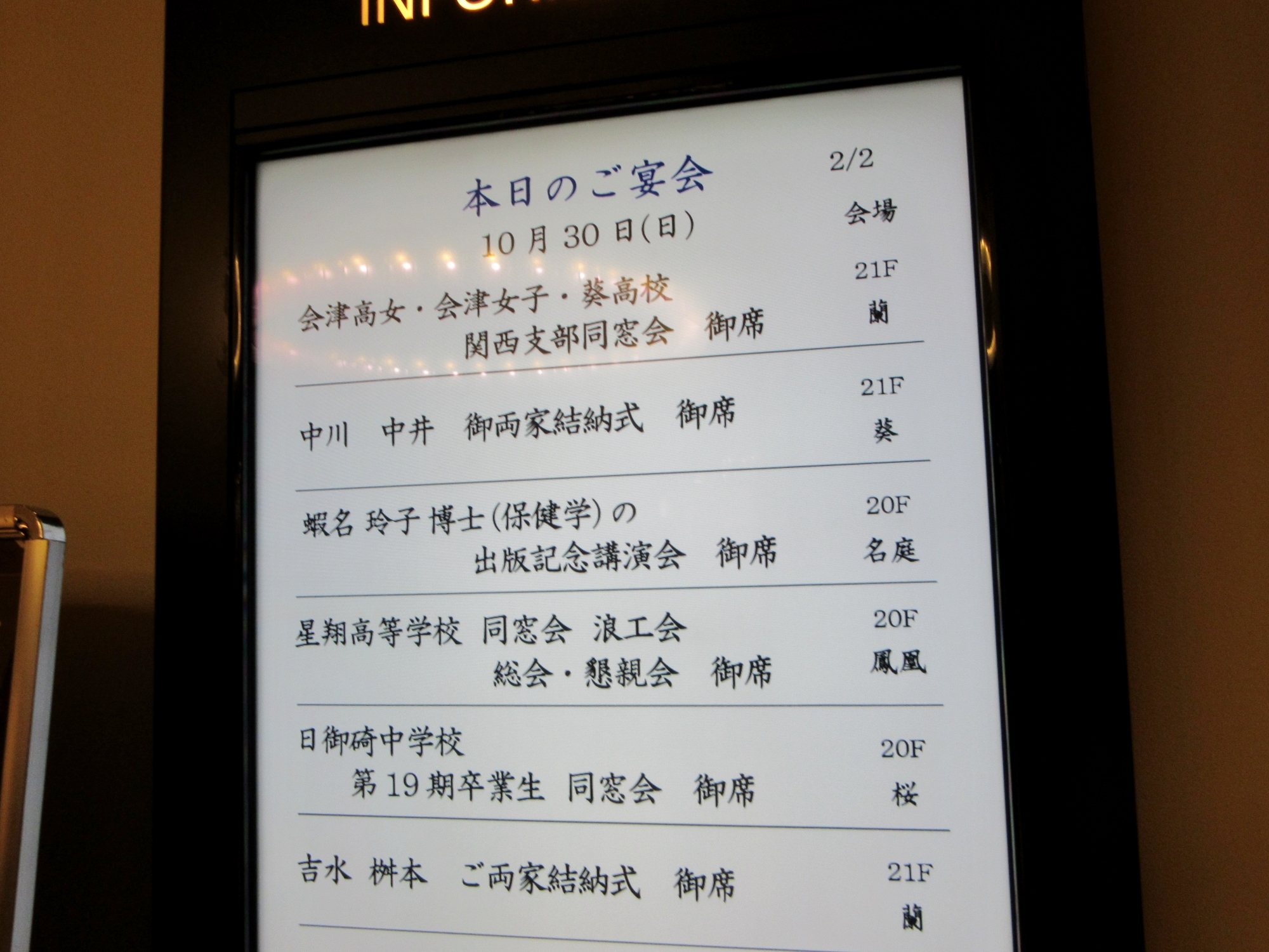 ホテルグランビア大阪でした。ステキな講演会でしたし,こうる愉快でのピアノ弾き語りも皆さんに好評を得ました・・・感謝です。