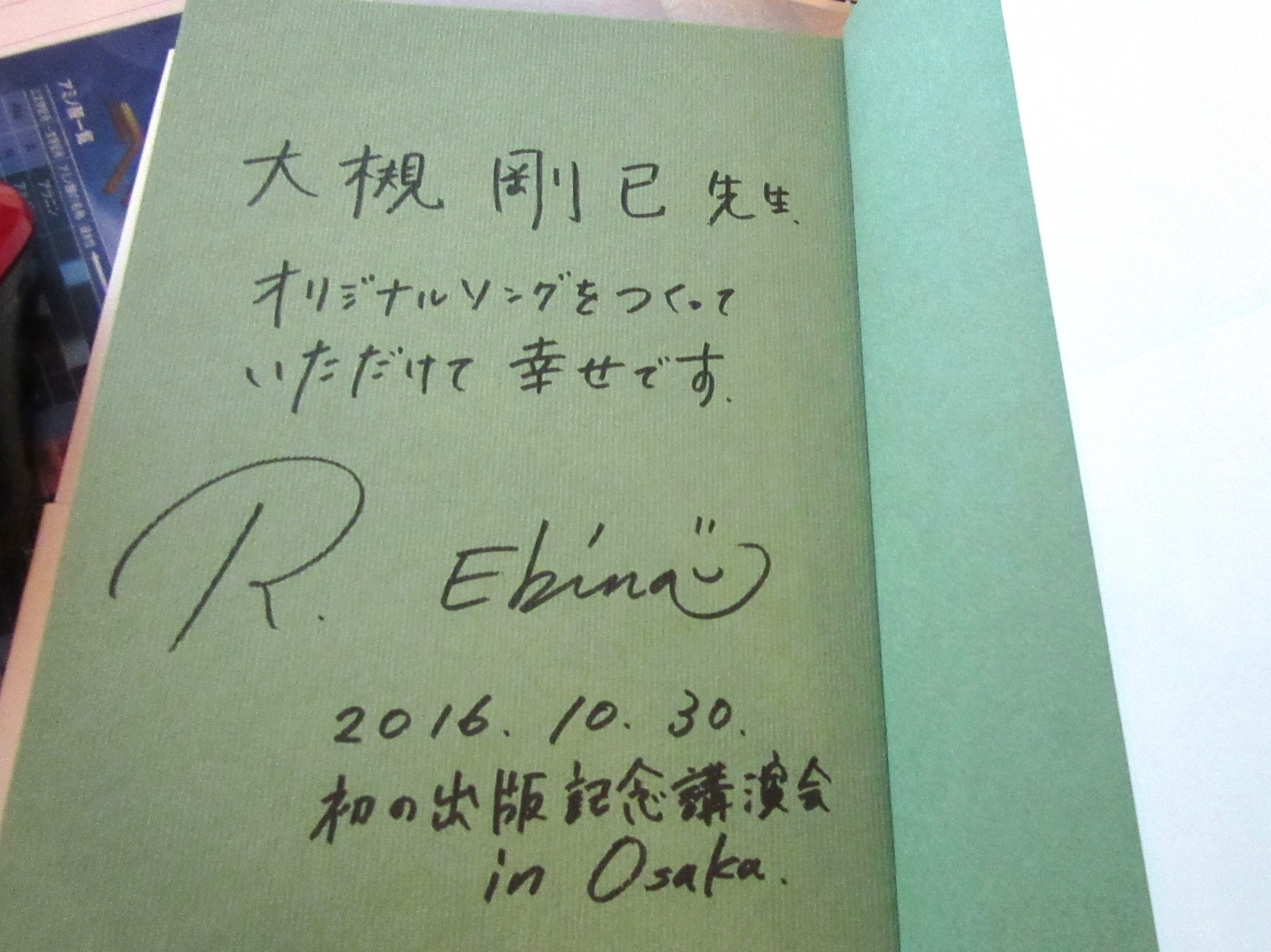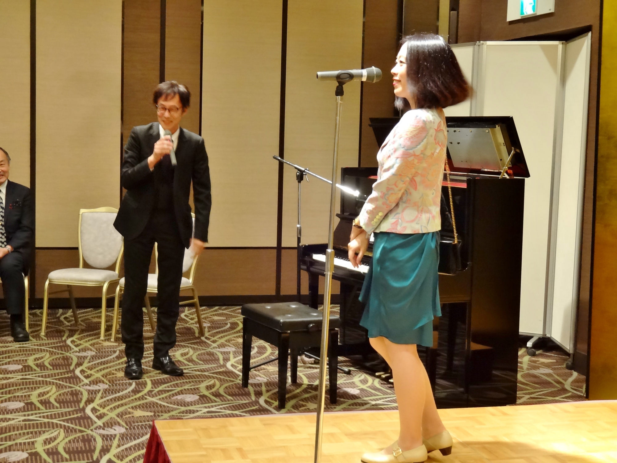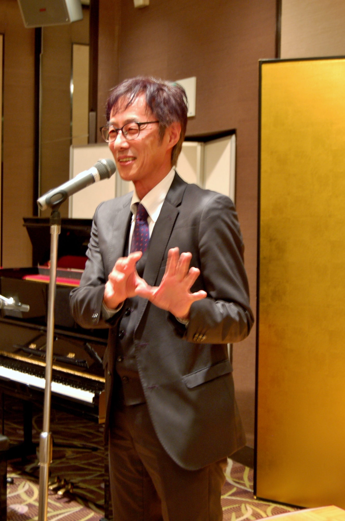 そして,交流会では。ピアノ弾き語りでご披露し,謹呈しました。蛯名先生,益々のご活躍を祈っております。