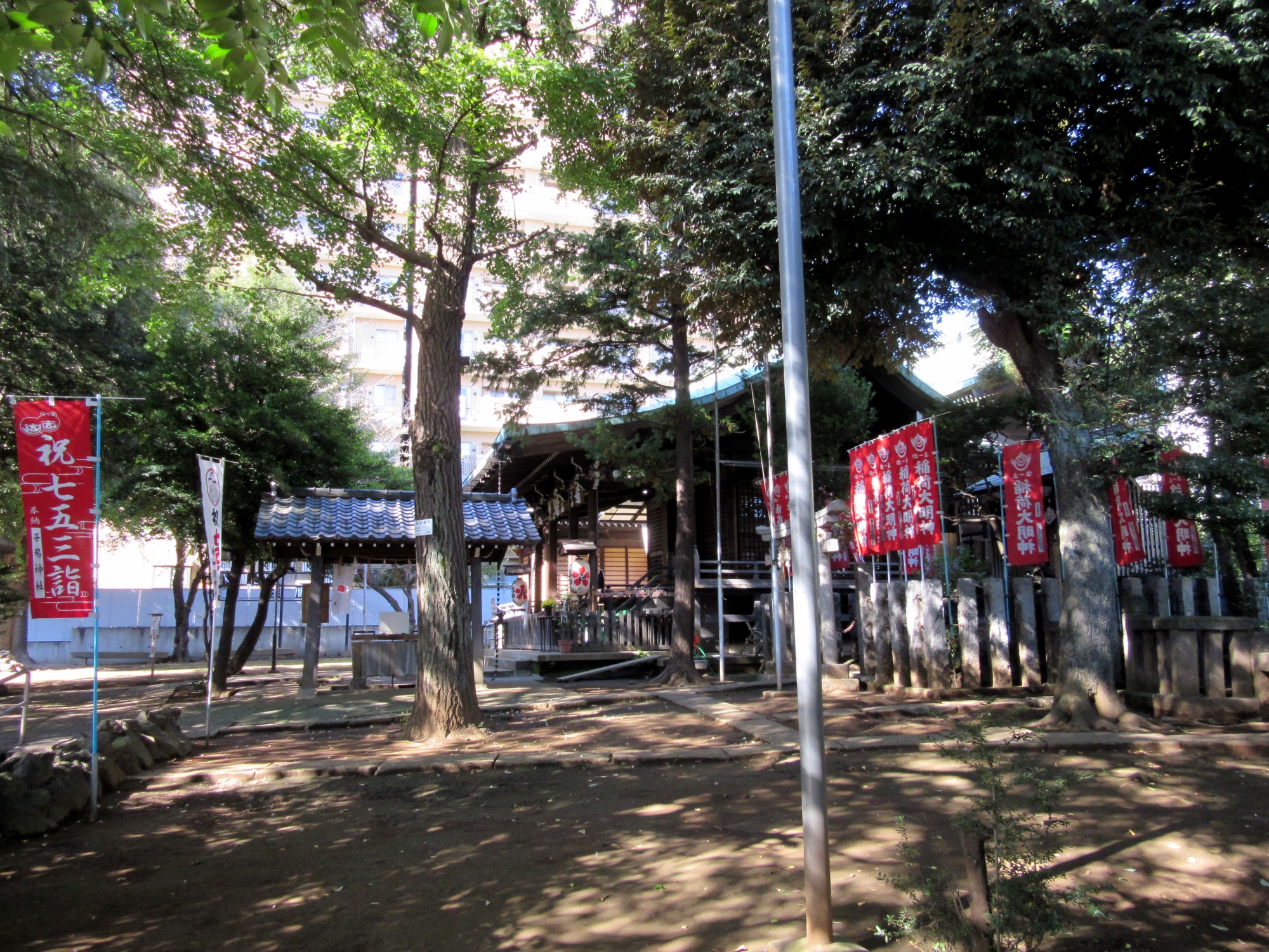 今は,七五三詣の幟が沢山!