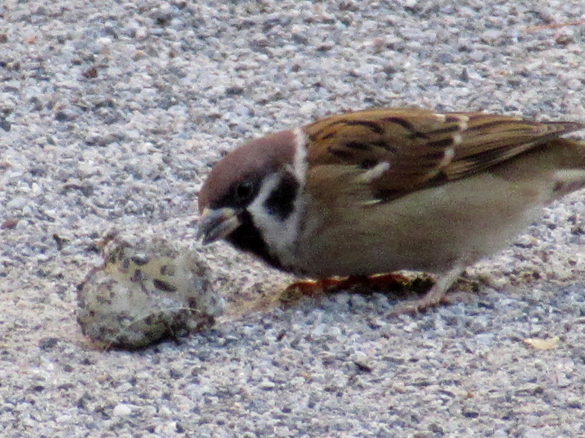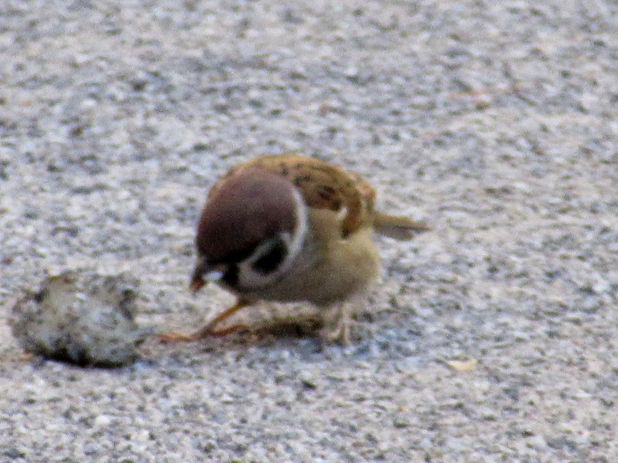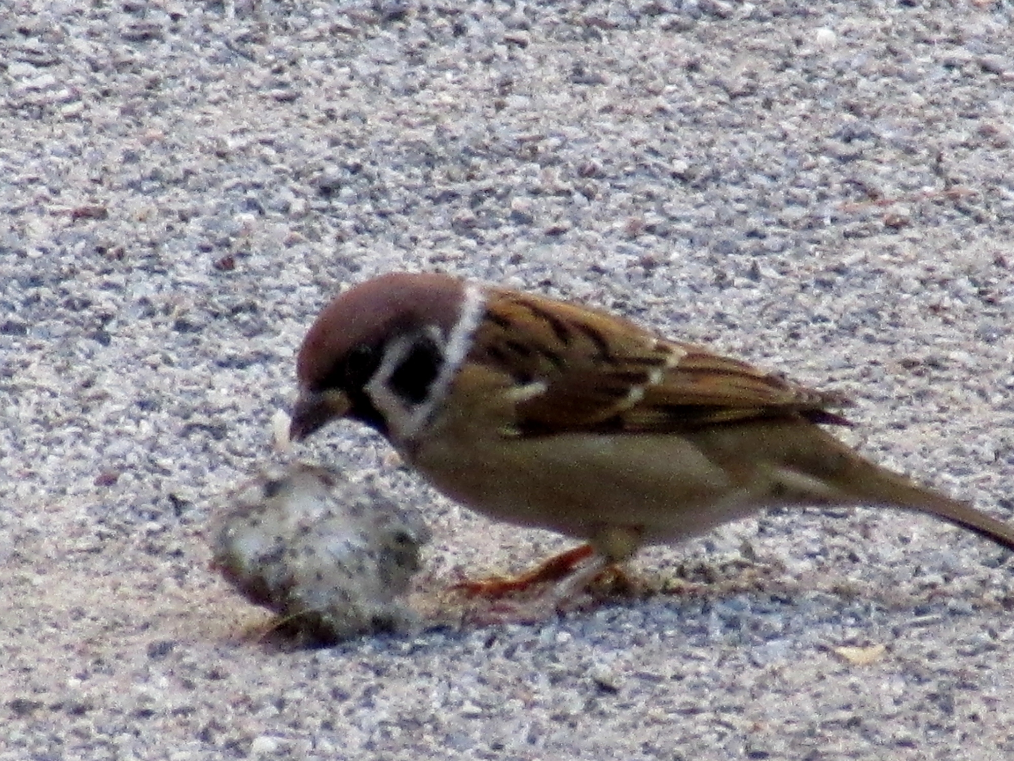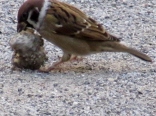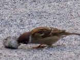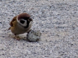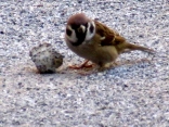 雀が何かを啄んでいます。