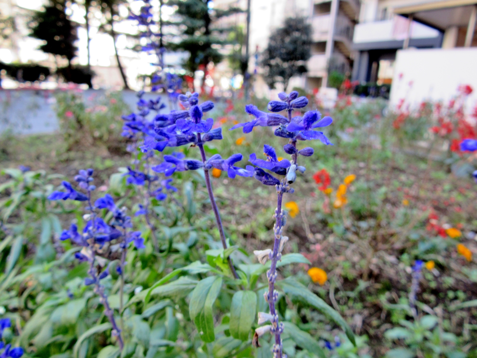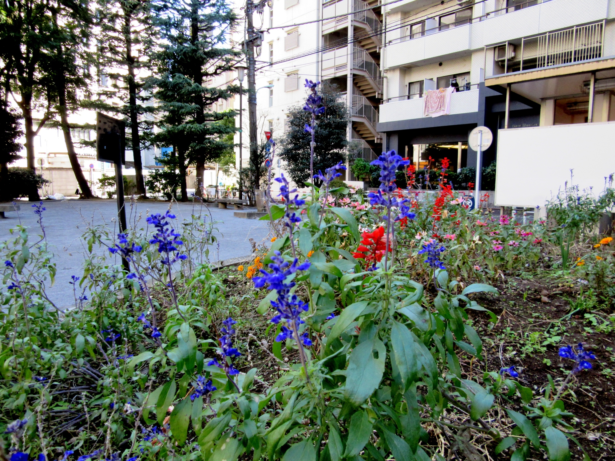秋の色合いも染みてきて・・・花壇には,でも,花々も・・