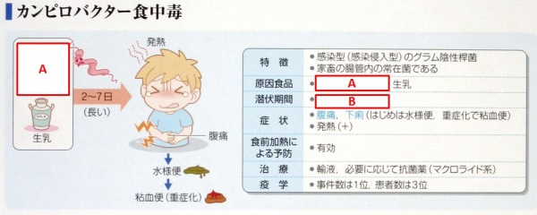 カンピロバクター食中毒の説明の図中のA,Bとして正しいのはどれか。