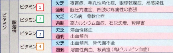 ビタミンの過剰と欠乏による健康障害についての図中の1-2-3-4として正しいのはどれか。