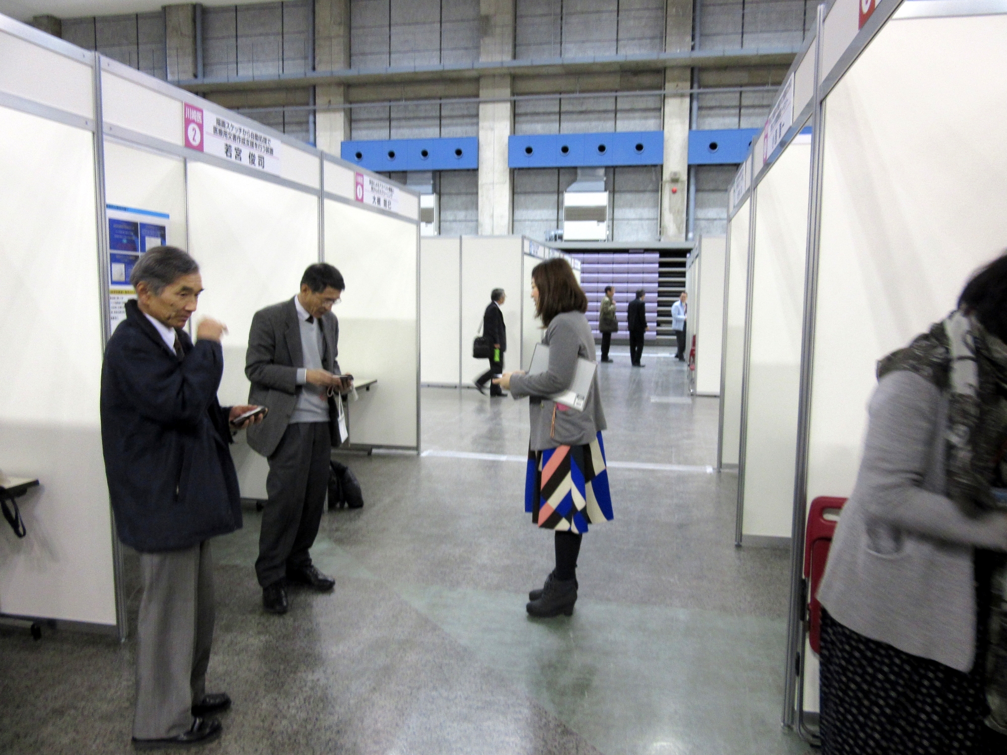 こんな感じのブース出展です(産業振興財団さんが印刷・設置もしてくださっていたので,感謝一杯です)