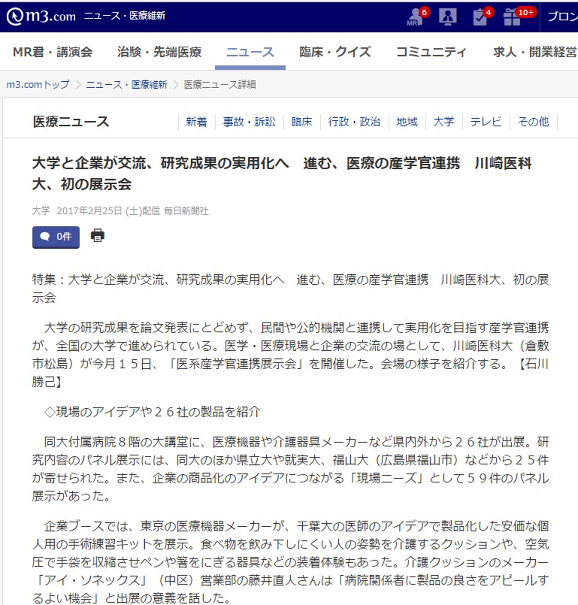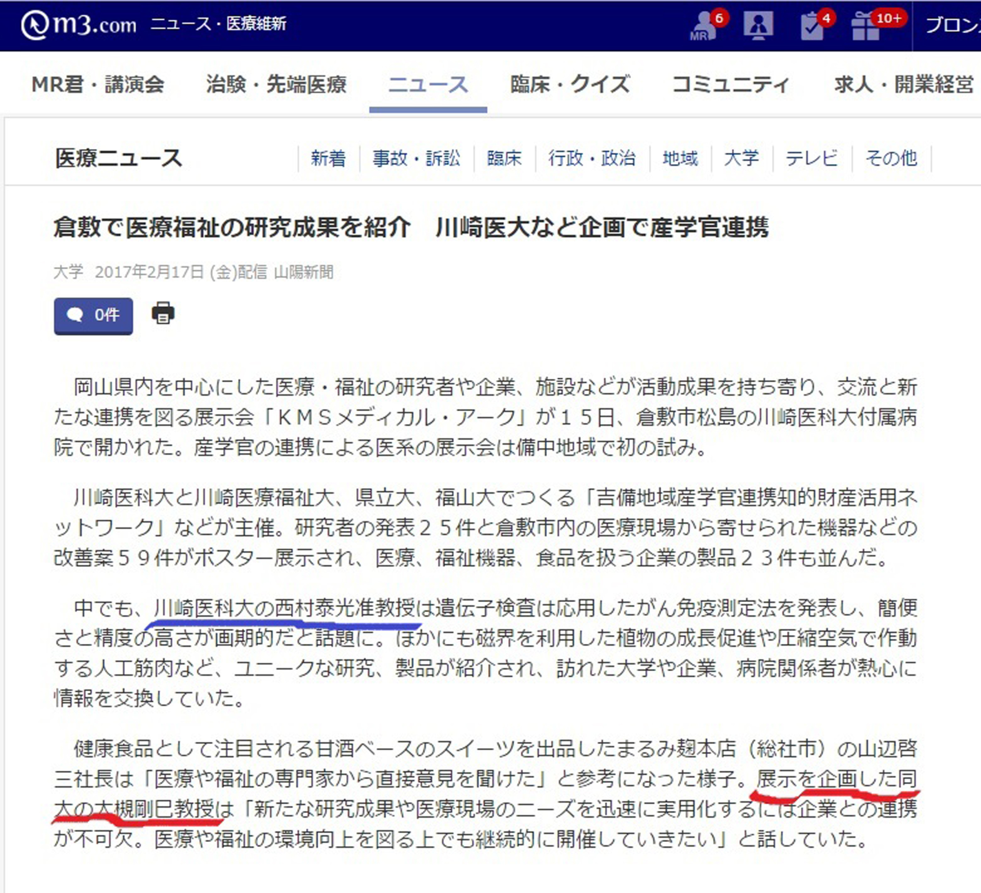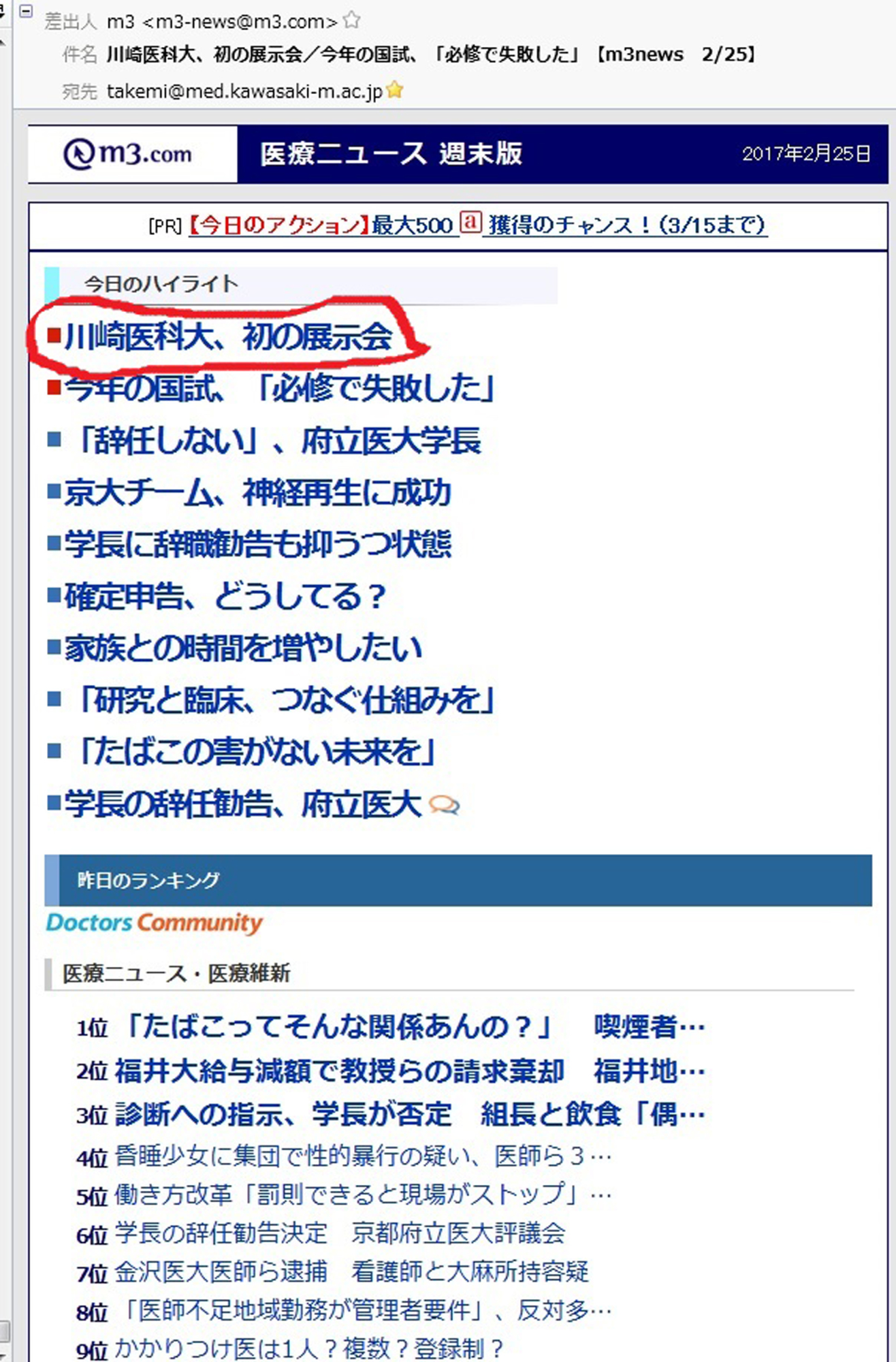 Eメールの配信で,m3.com という医療情報などなどサイトから・・先週実施したKMSメディカル・アークの毎日新聞と山陽新聞の記事が転載されています。なんか,嬉しい!