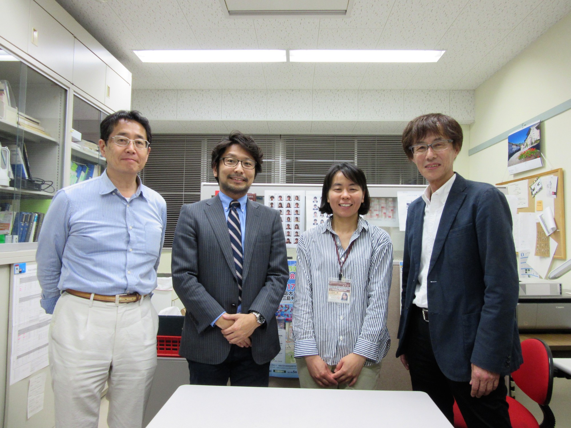 会の終了後に前田先生のラボをご案内頂き,木村教授と一緒に記念撮影!!!!プチ同門会でした。