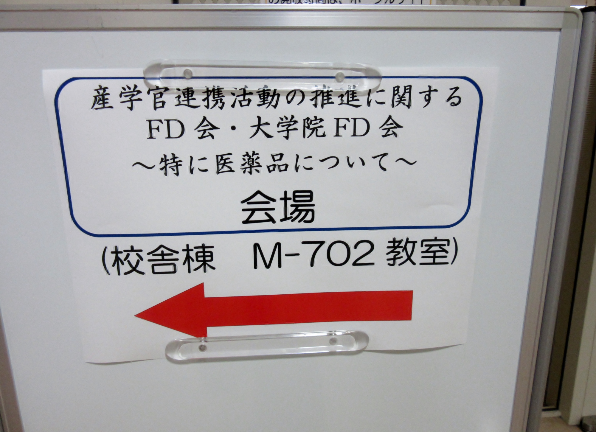 本日17:30-18:30の予定で,産学連携知的財産管理室主宰のFD会(+大学院FD会)。