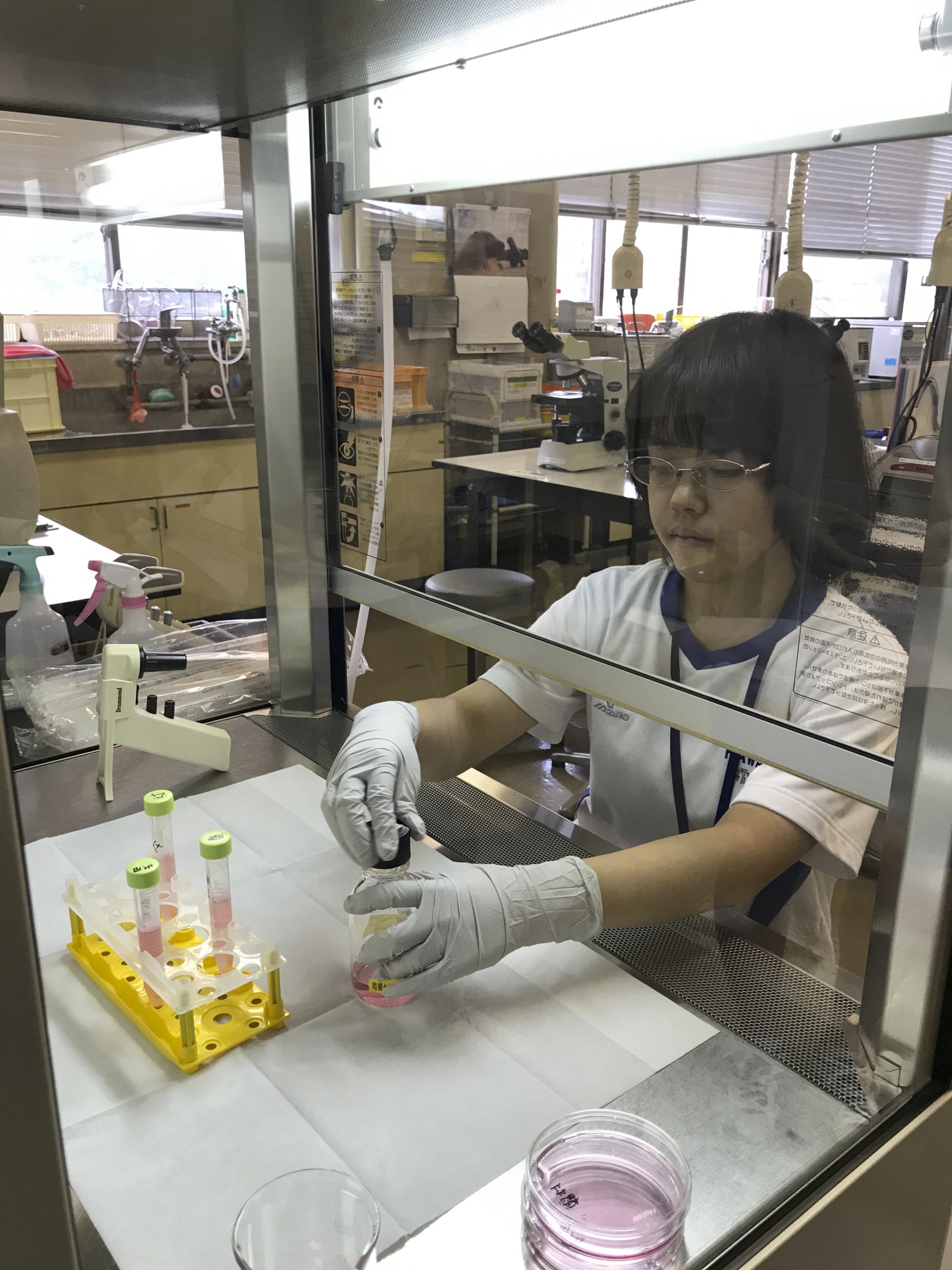 さて,二日目は・・まずAMのに,李先生が細胞培養の体験!