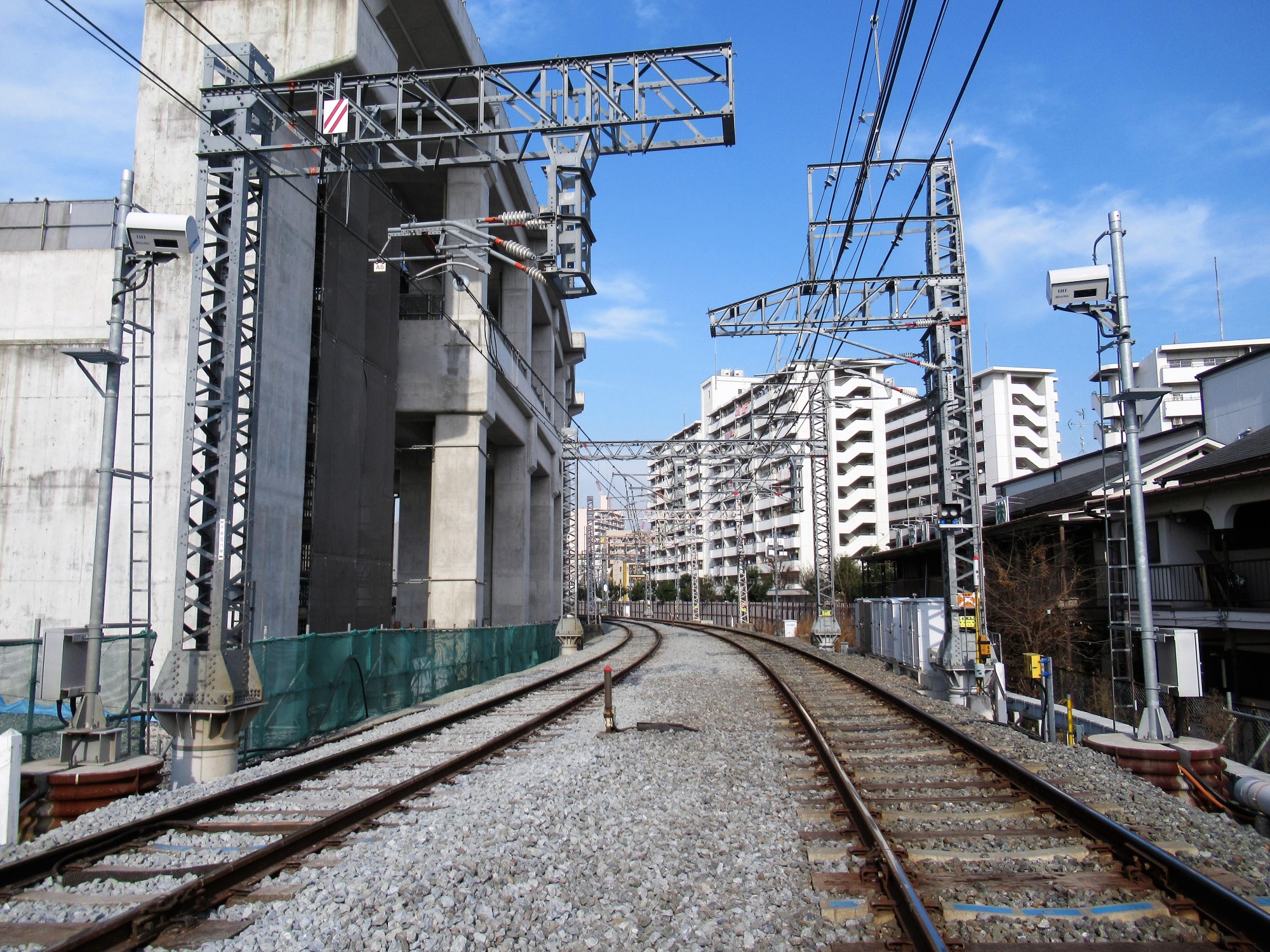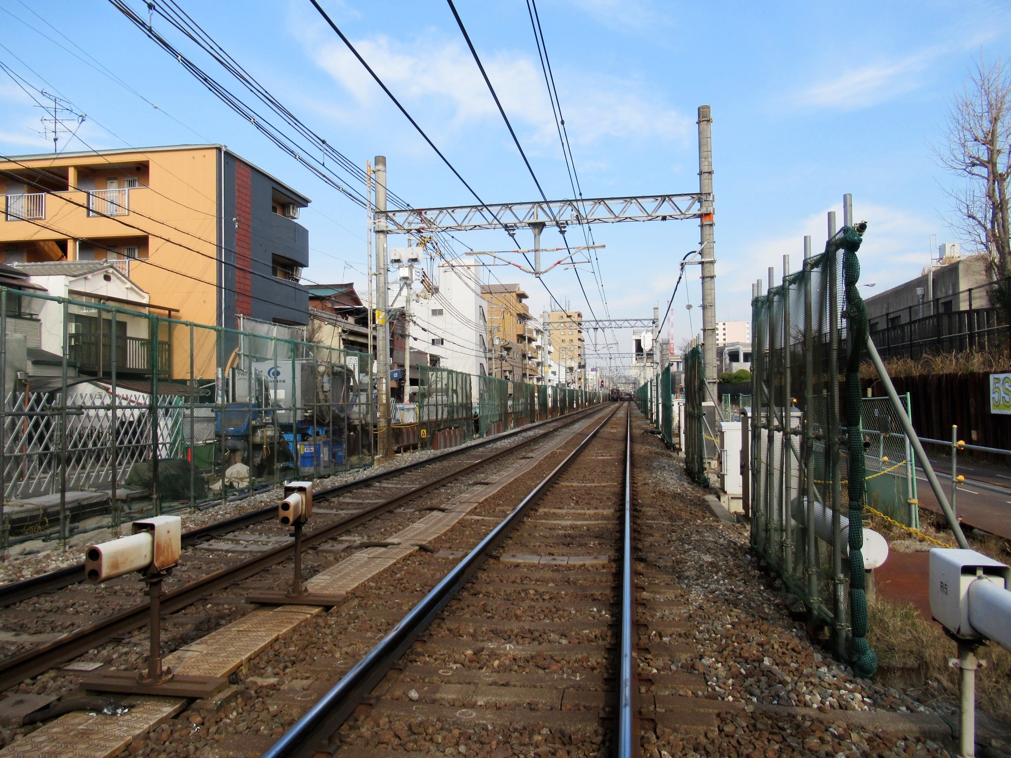 阪急電車の京都線と千里線が淡路駅へ向けて…住宅街の中の造り酒屋の白壁