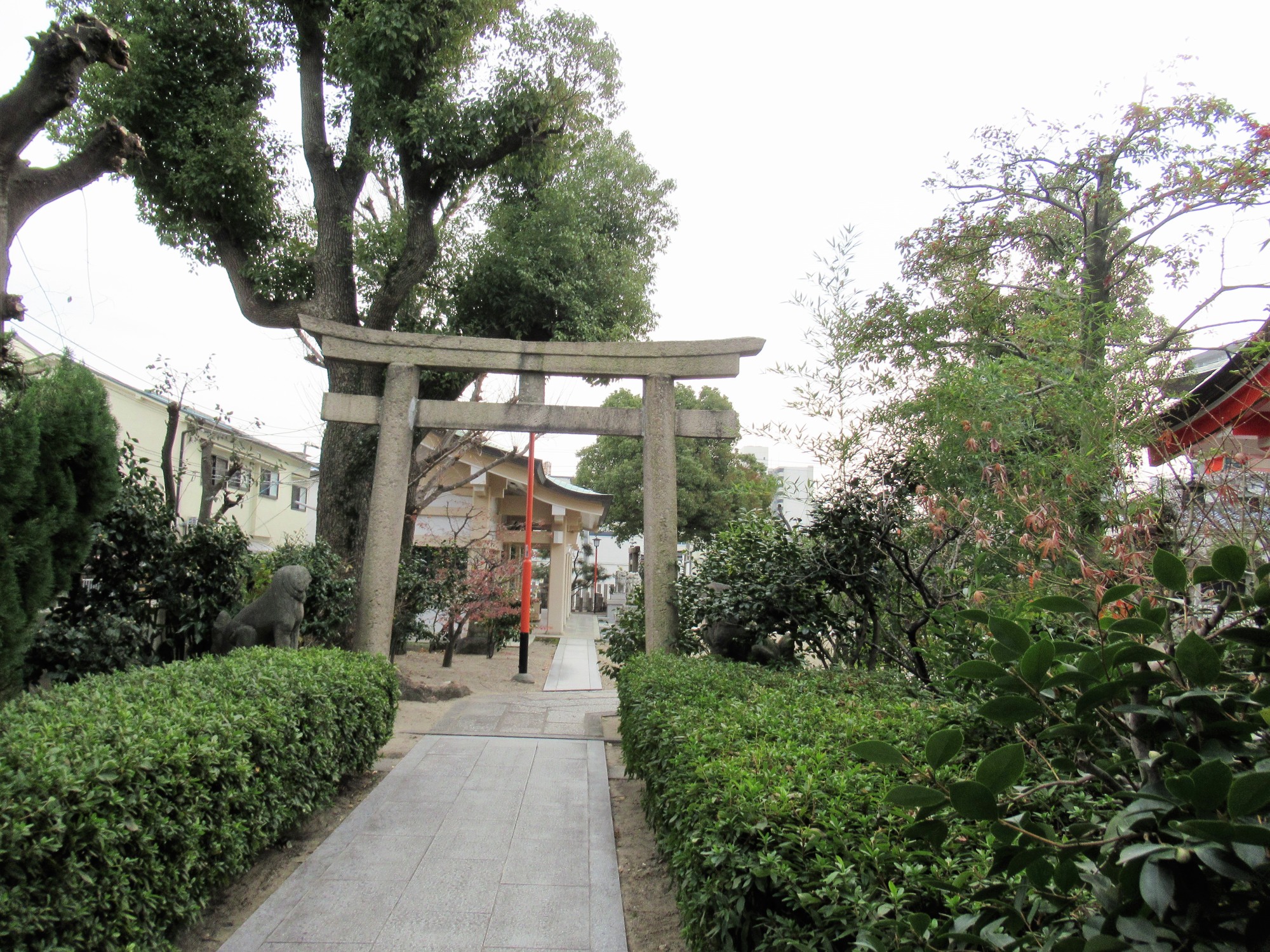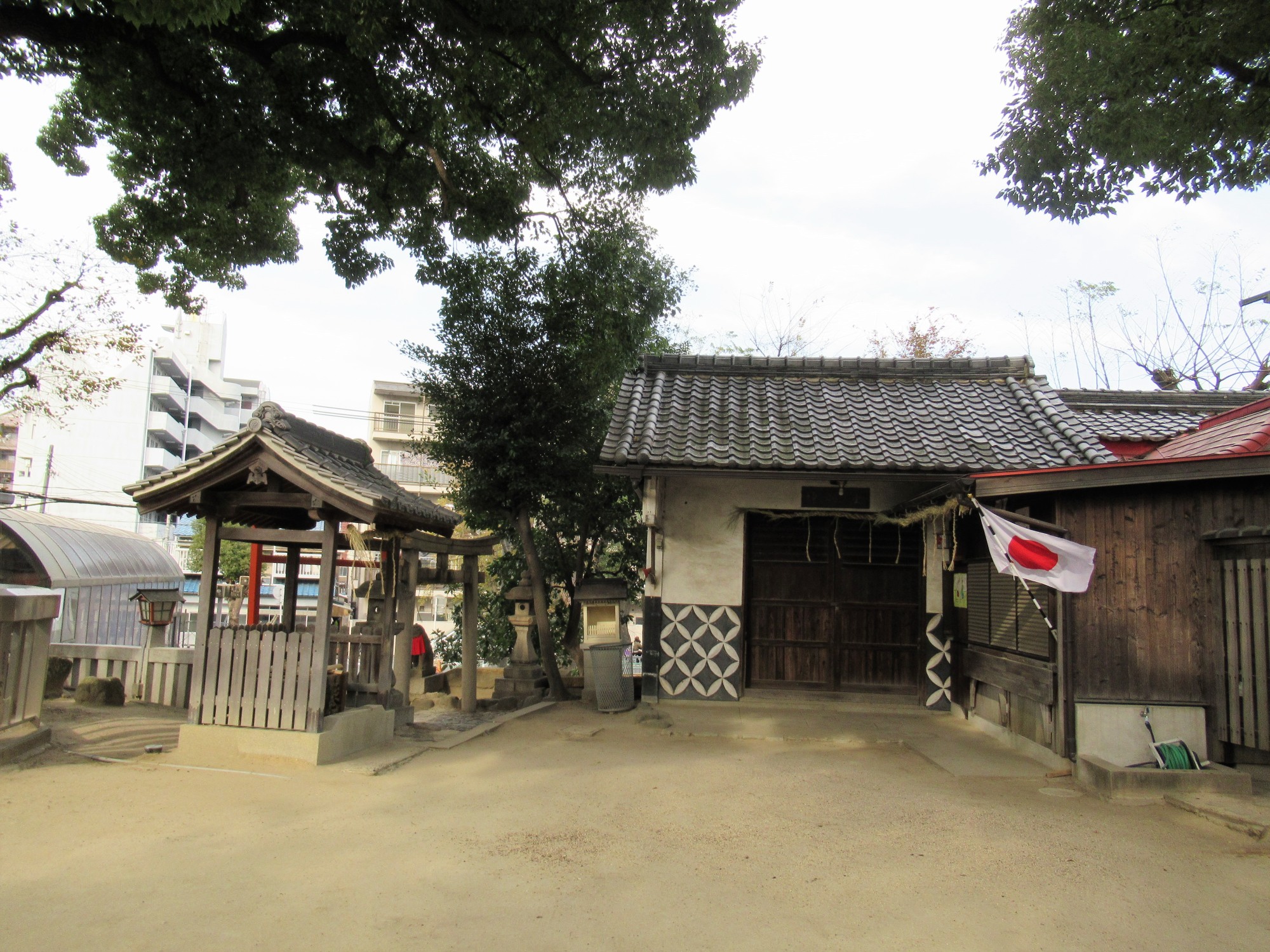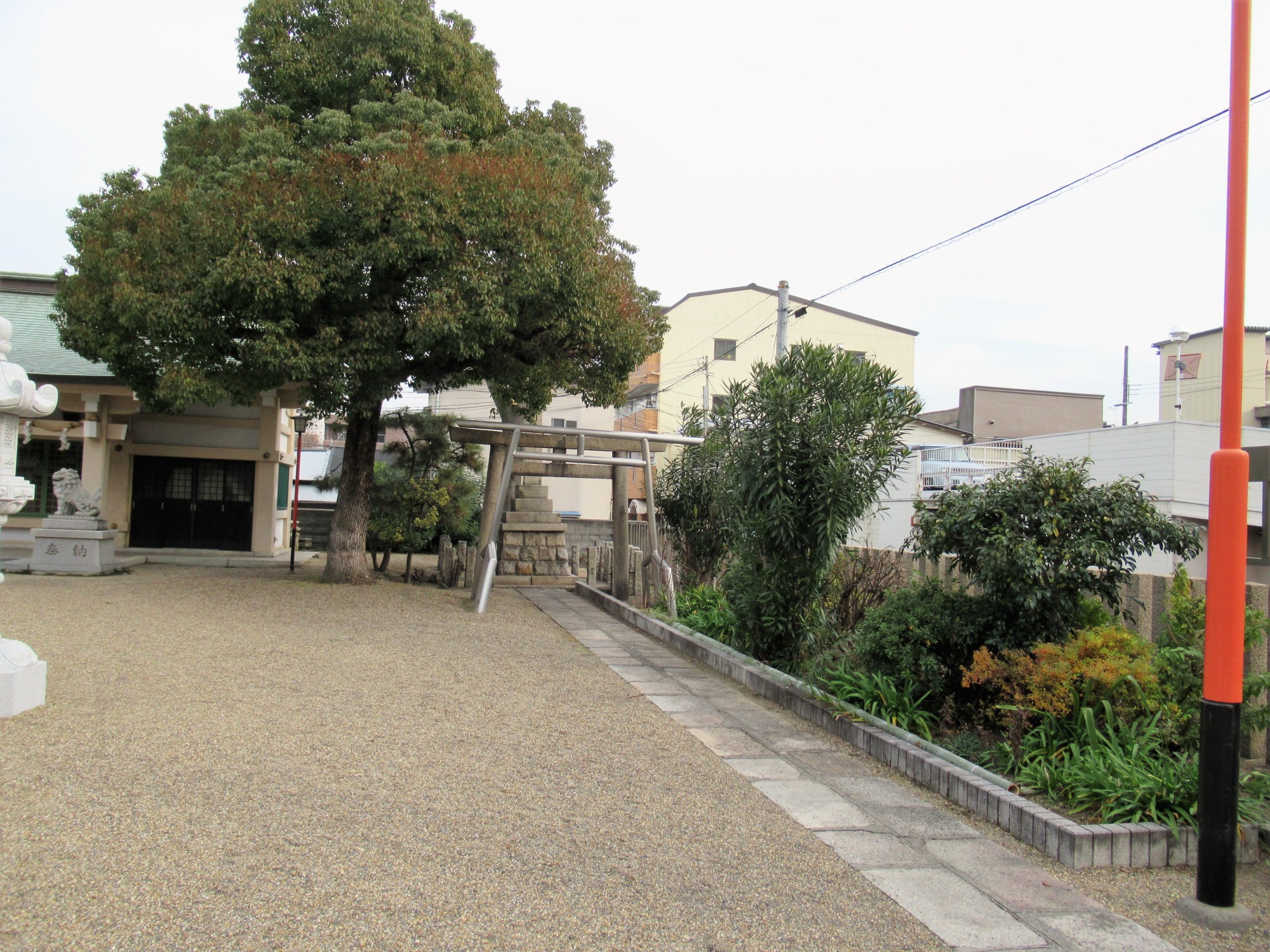 【菅原道真公を祭神とし、寛永(かんえい)年間(1624~44年)、この地が開発されたときに勧請(かんじょう)されました。代々の言い伝えでは延喜(えんぎ)元年(901年)に菅原道真が大宰府へ左遷され淀川を船で下る途中、当地摂津の国、二重新家村(ふたえしんけむら)住民の出迎えを受けて上陸され、逆川(さかがわ:淀川の支流)の土堤から東を眺めて京の名残を惜しまれた由緒ある土地であるとされています。】だそうです。