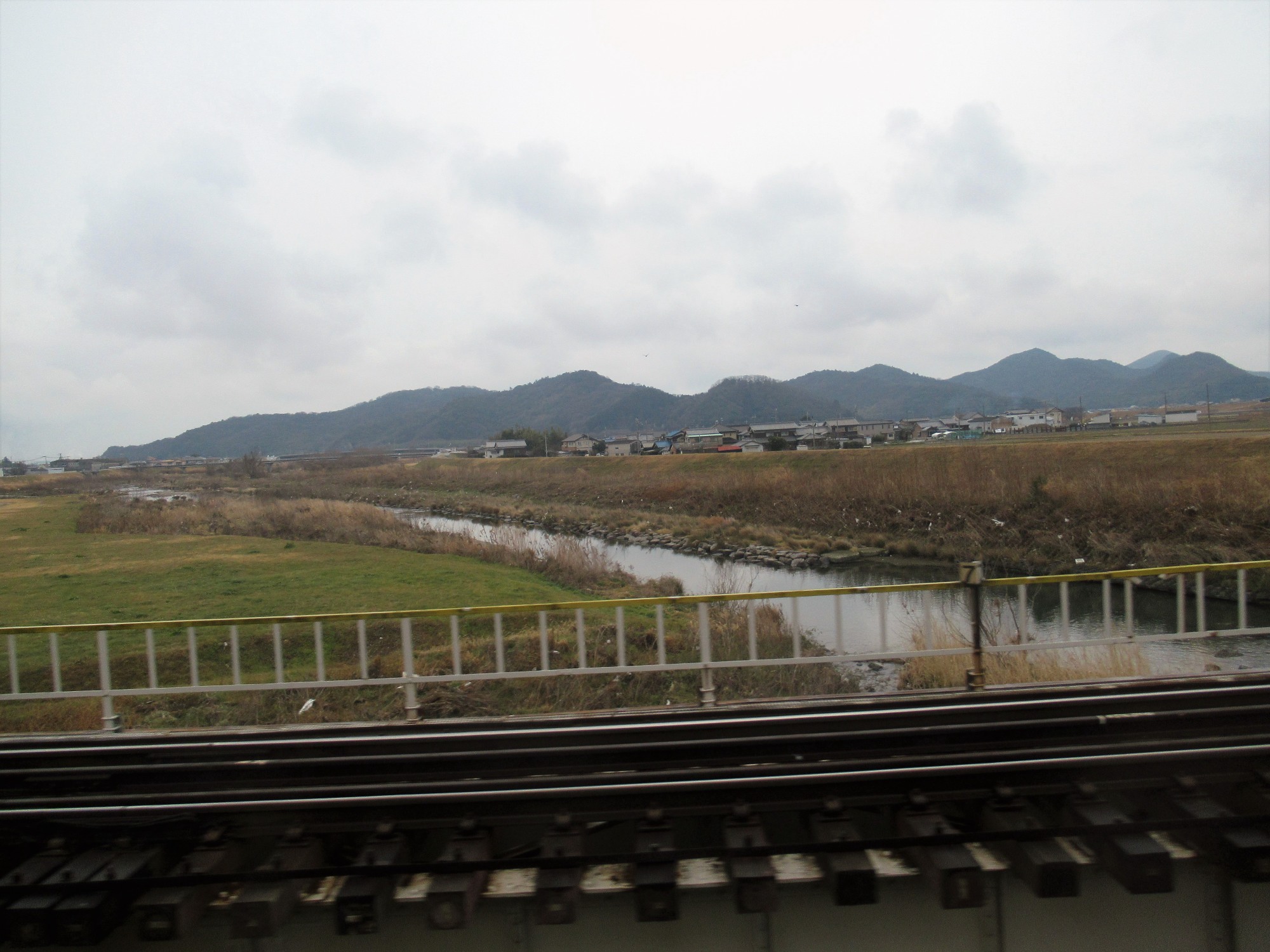 上の動画で使った、元画像は以下のようなものです。姫路までは相生乗り換えで普通列車、姫路から大阪まで新快速、そして鶴橋まで環状線です。まずは、中庄駅から岡山駅、そして熊山と和気の間の吉井川