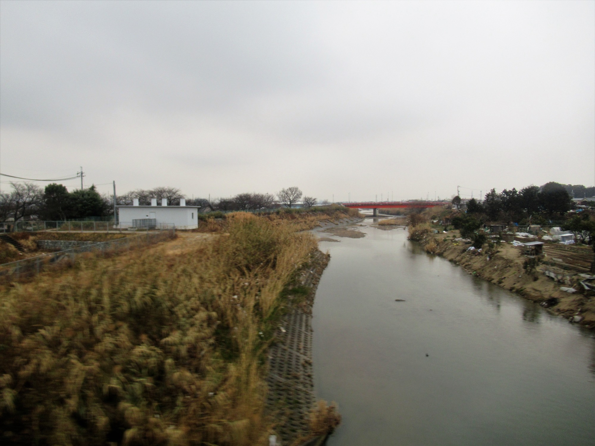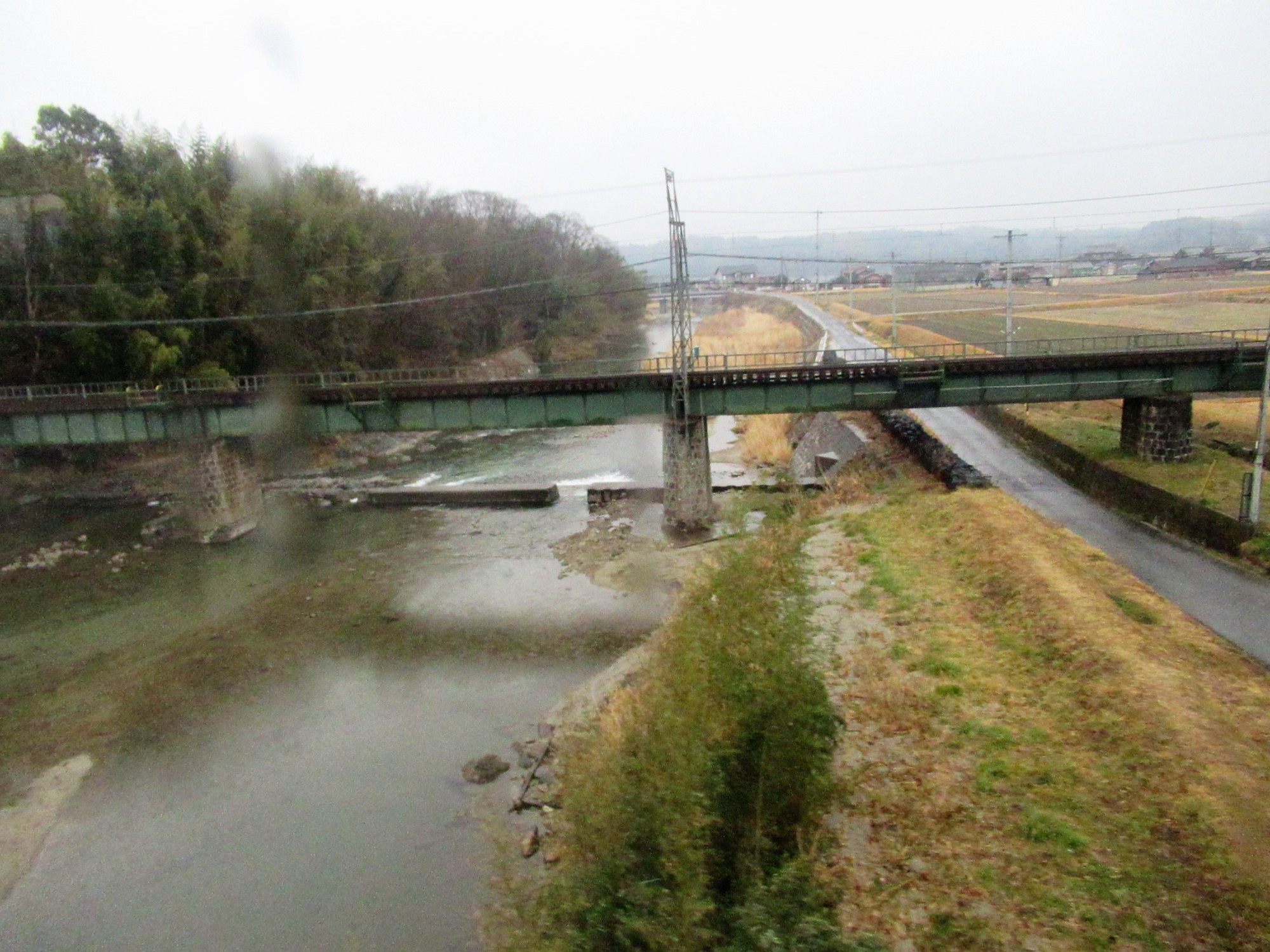 さて、伊勢平野~伊勢中川近くで、近鉄名古屋線の橋梁も見えて、雲出川支流の中村川。