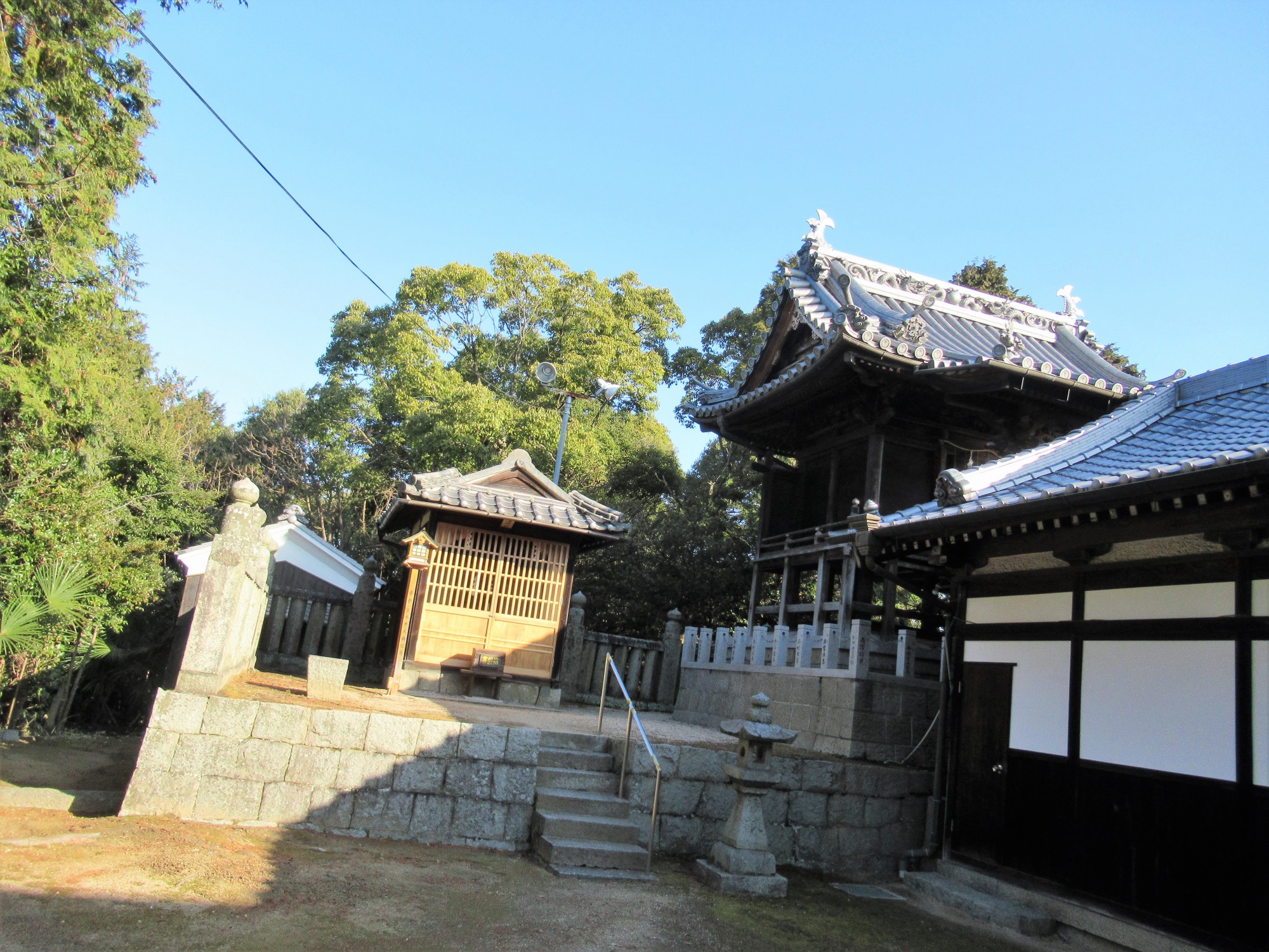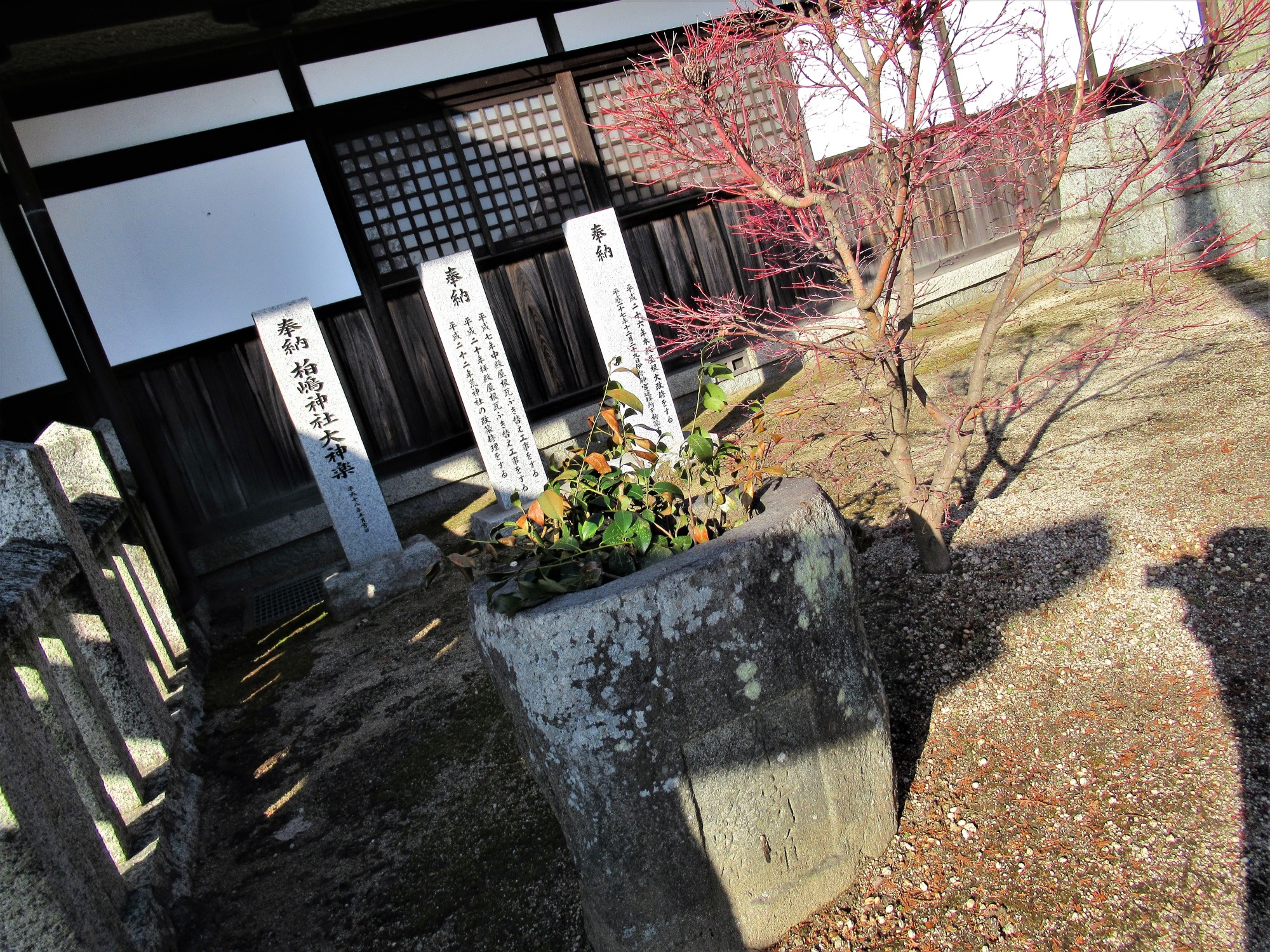 【大嘗会和歌集に「御冷泉永承元年(1046)主基方備中国柏島に船をつなぎ、柏を採る人あり」と前書きして、藤原朝臣家経の歌「ししに生るかしわの島の青柏祈りわたりて卯月にぞ採る」とある。天正12年(1584)3月勧請されたもので、赤沢兵庫頭政信が建立し、はじめ「八幡宮」と称した。】だそうです。