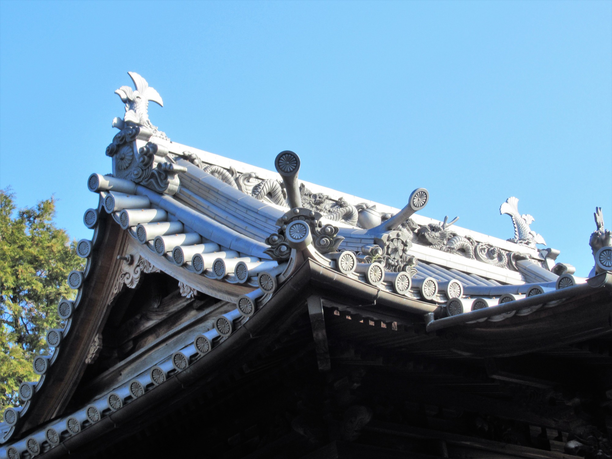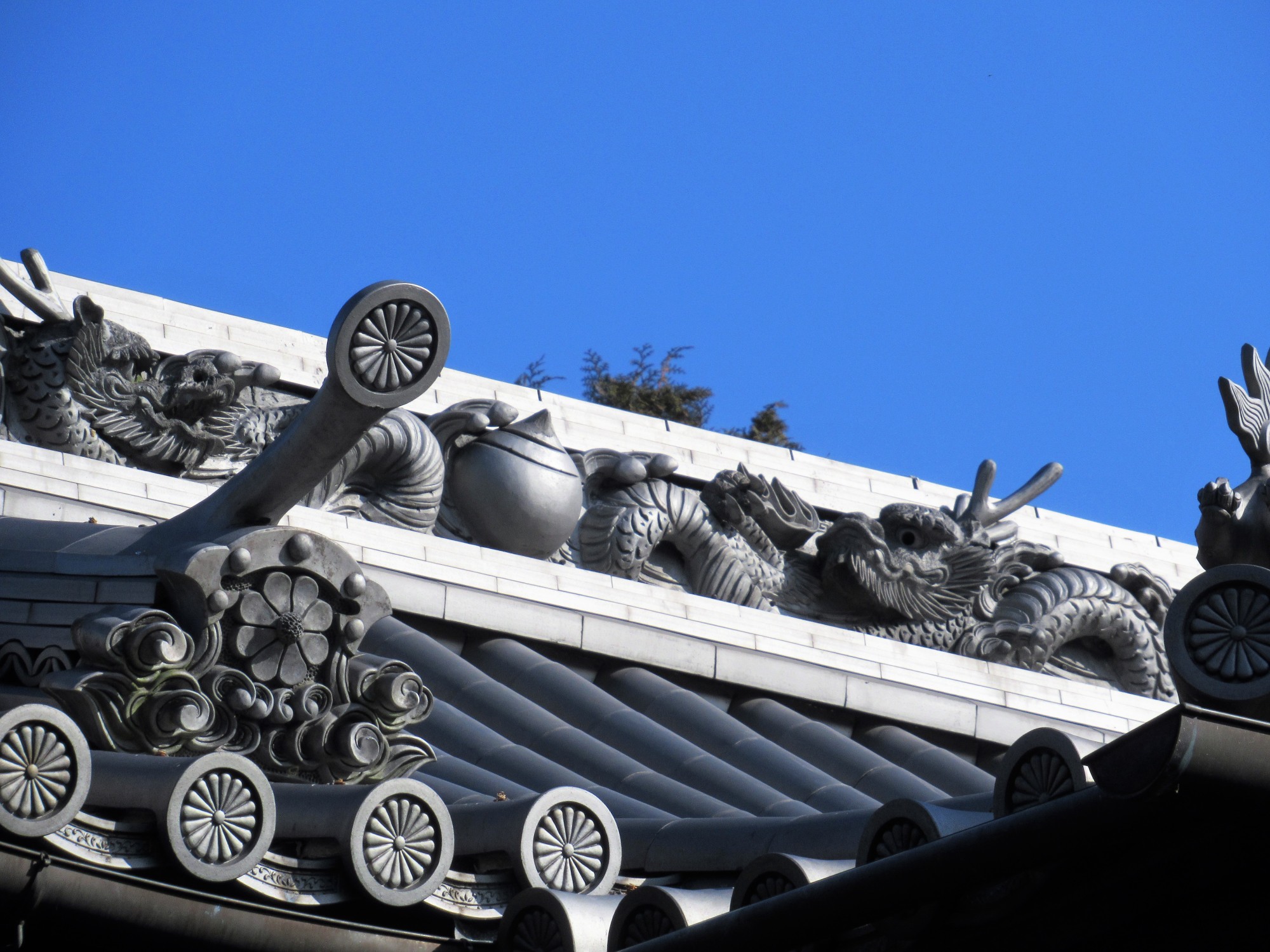 拝殿横の壁に龍!!そして、本殿の瓦の所にも~こういうのは、目にしたことがありません。