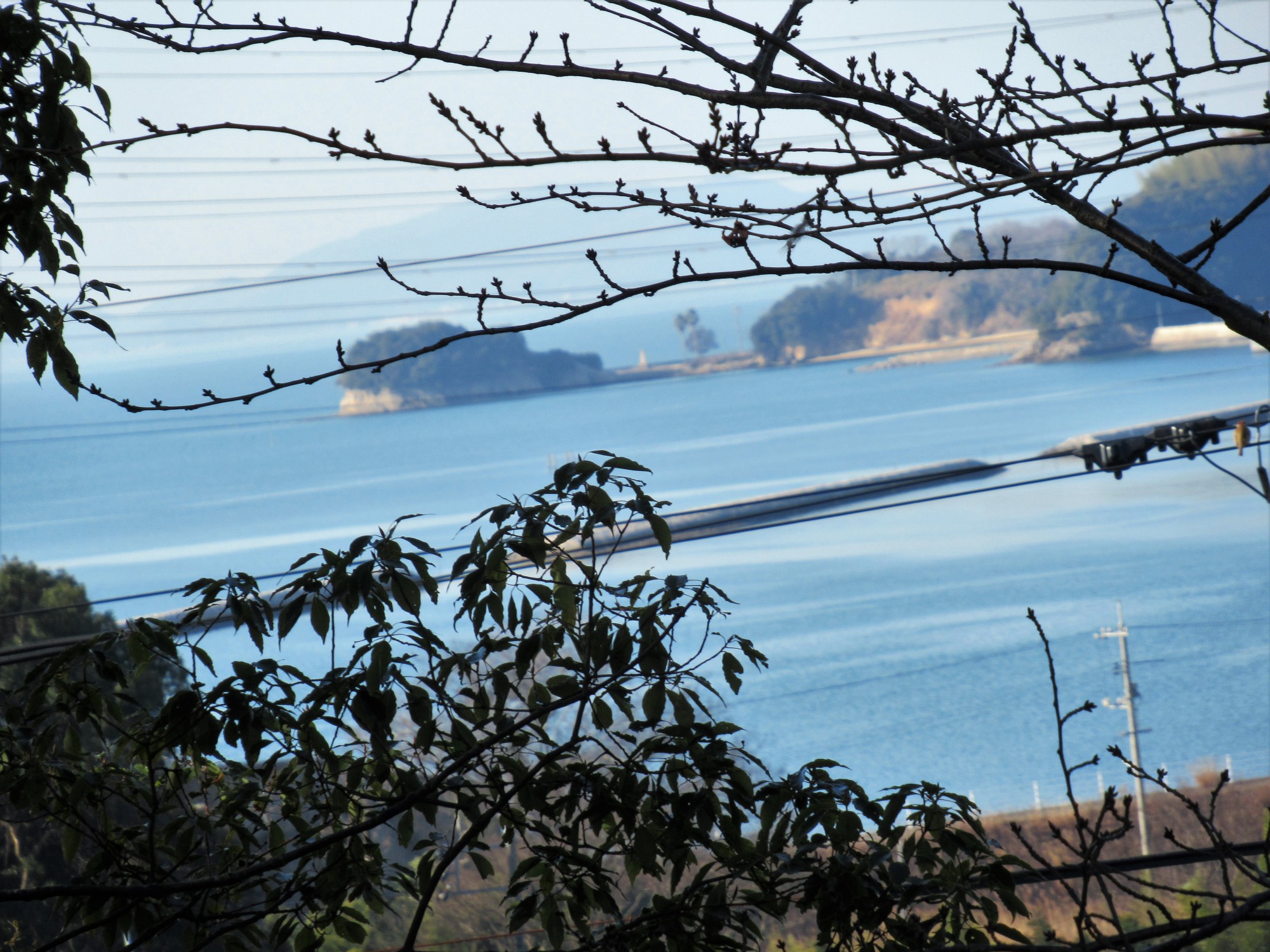 向こうは沙美海岸へ延びる瀬戸内海です。