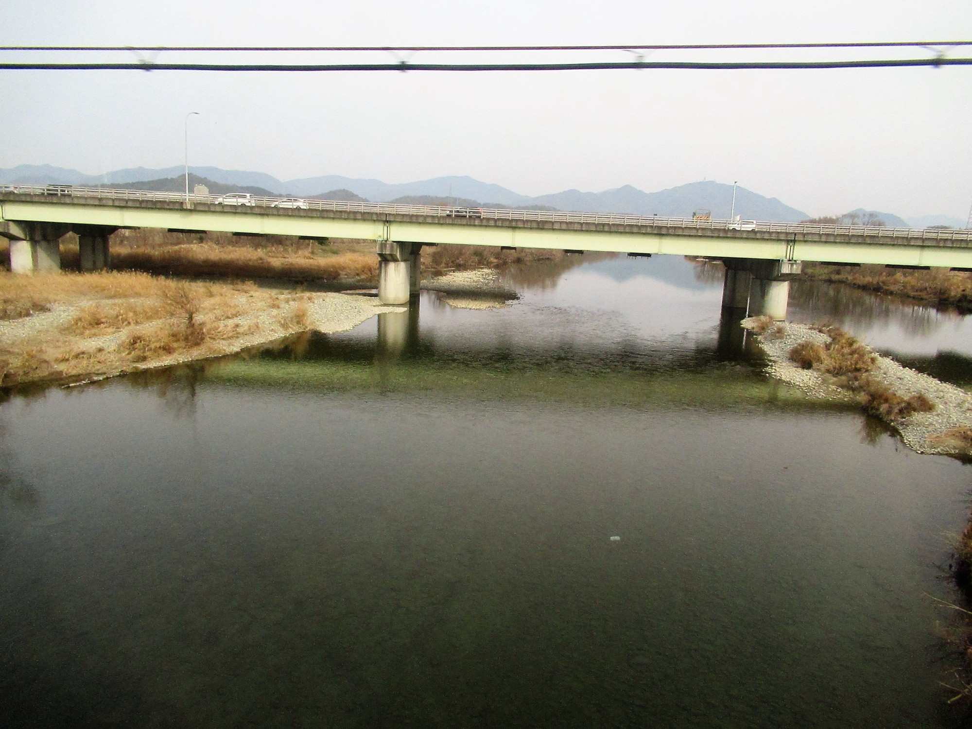 和気町に行く辺りで、吉井川はカーブを取っていて金剛川と合流する地点です。