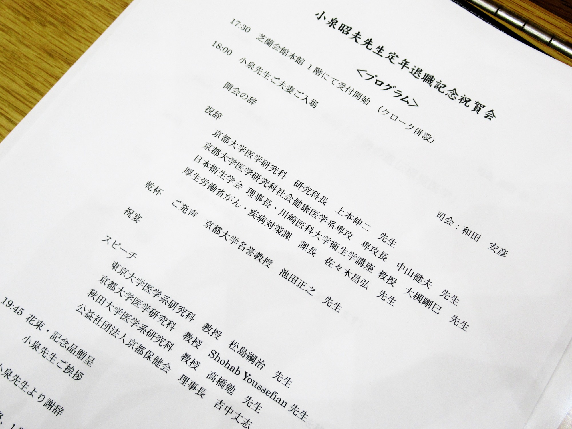 京都大学・環境衛生学分野:小泉昭夫教授の最終講義と定年退職記念祝賀会!