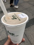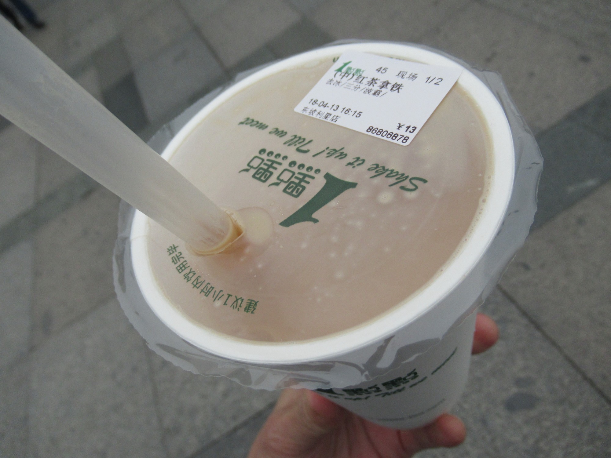 さて、午後、半ば過ぎから、MIN先生に西湖を見せてもらいにつれていってもらって、その後、街角…かなり都会で、でも、屋台なんかもありました。まずは、MIN先生の奥様のご推薦で、POPULARな飲み物…ミルクティーですが、タピオカかな? グミのようなものが沢山入ってい