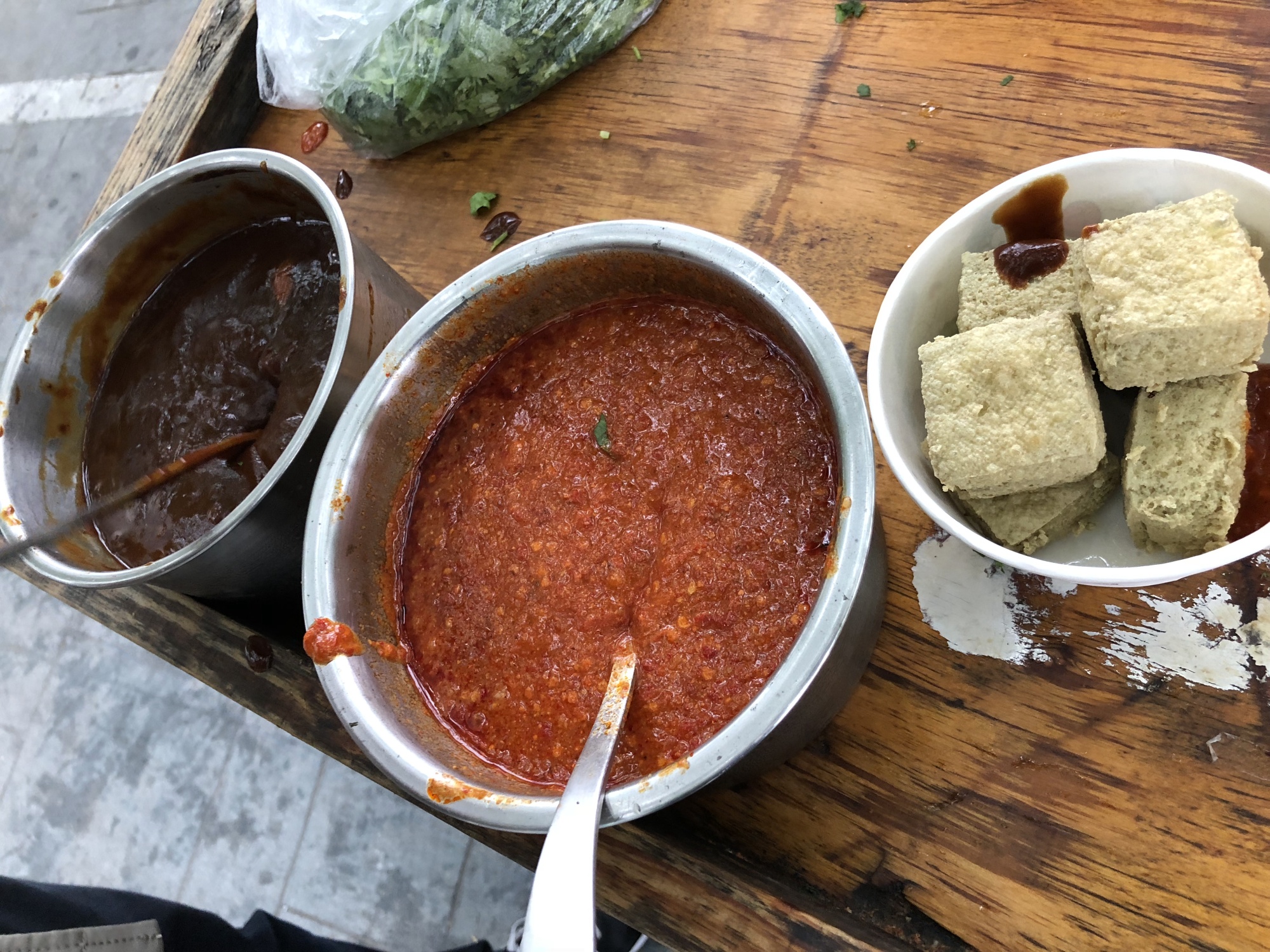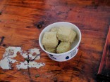 揚げ物で、ホットな、あるいは甘いソースで、食べます。ホクホクしていて美味しい。杭州でも、臭豆腐と呼ぶそうですが、味はグッド。