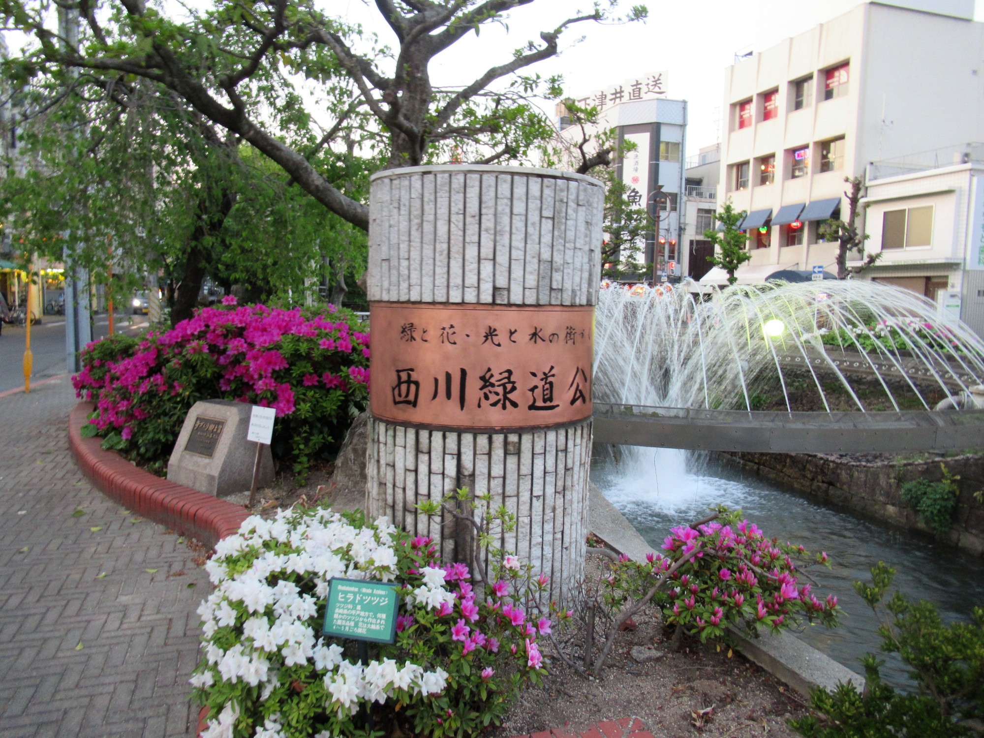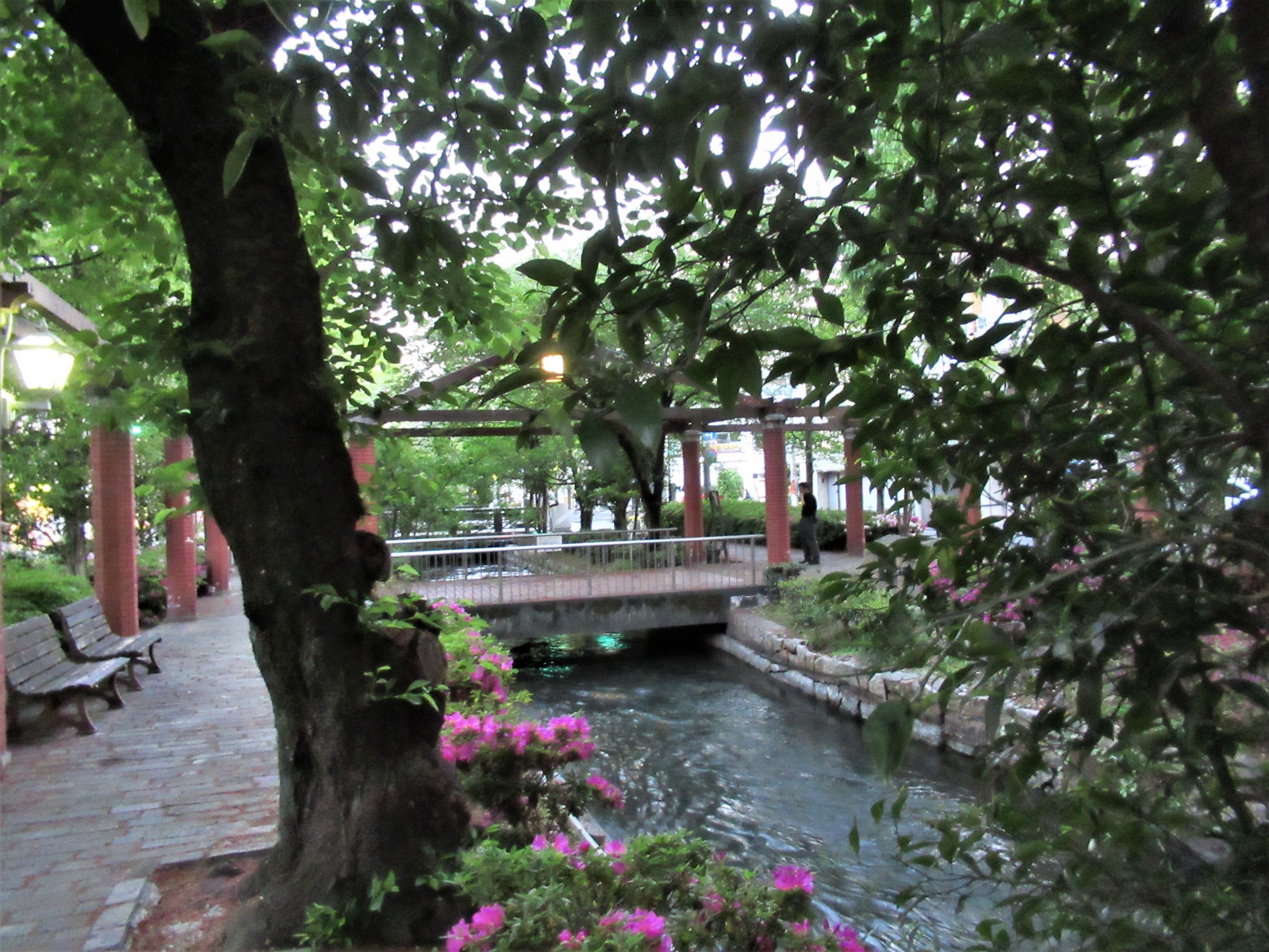 僅かの間ですが、西川緑道公園の桃太郎大通りの北側を