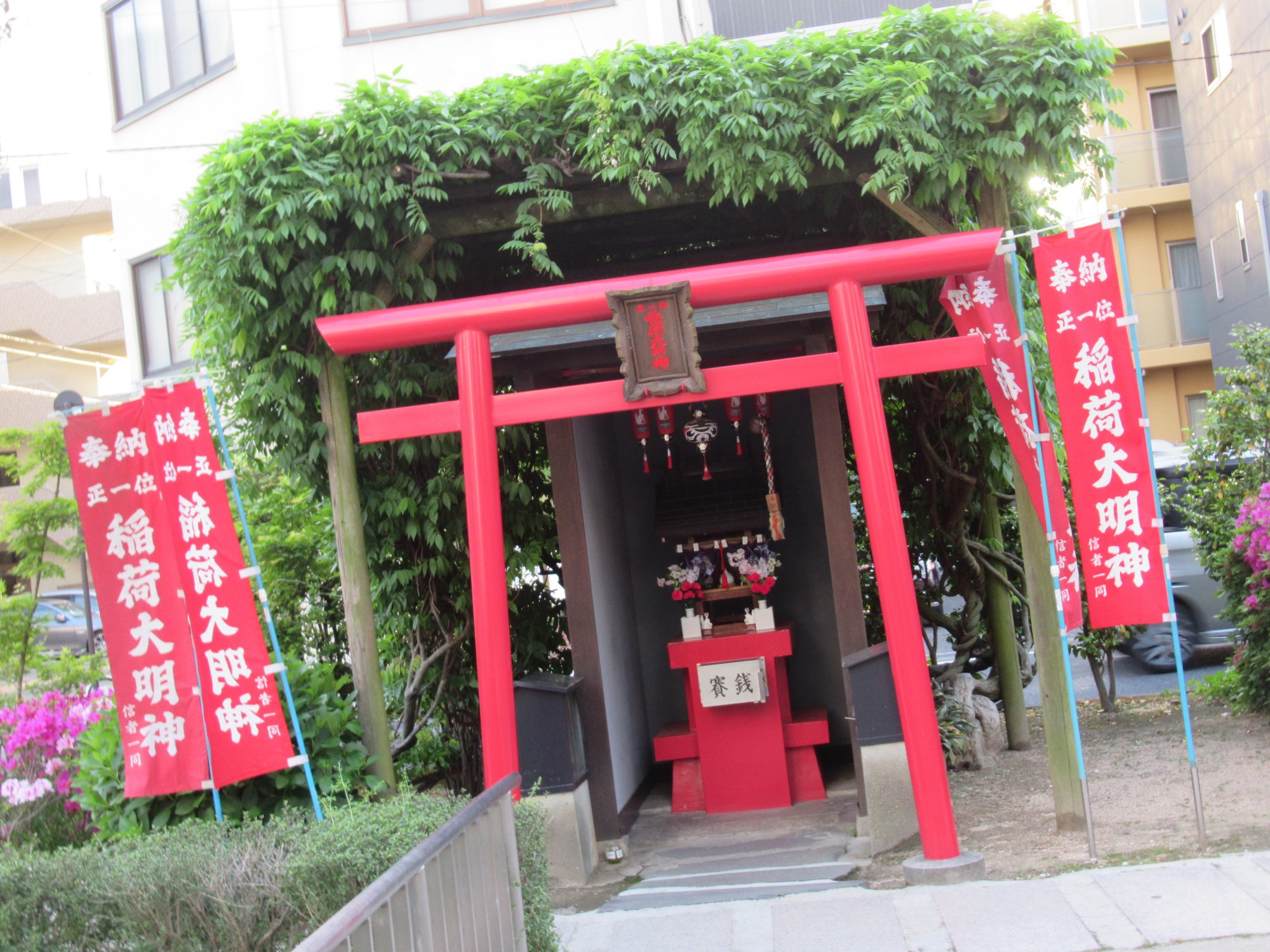 この稲荷の所の白い藤も散っていますね!