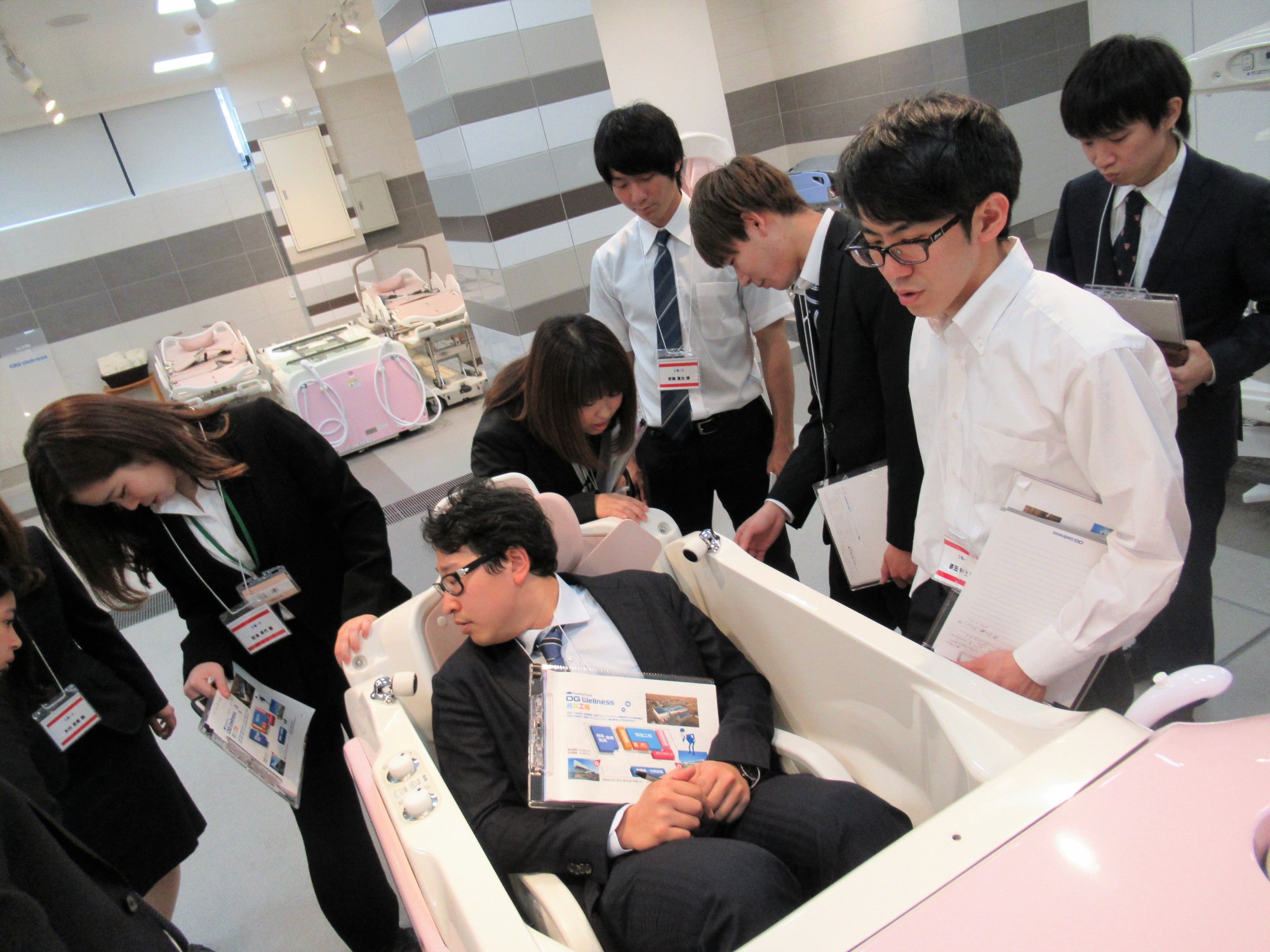最初は、4班に分かれてショールームで製品の説明を受けました。
