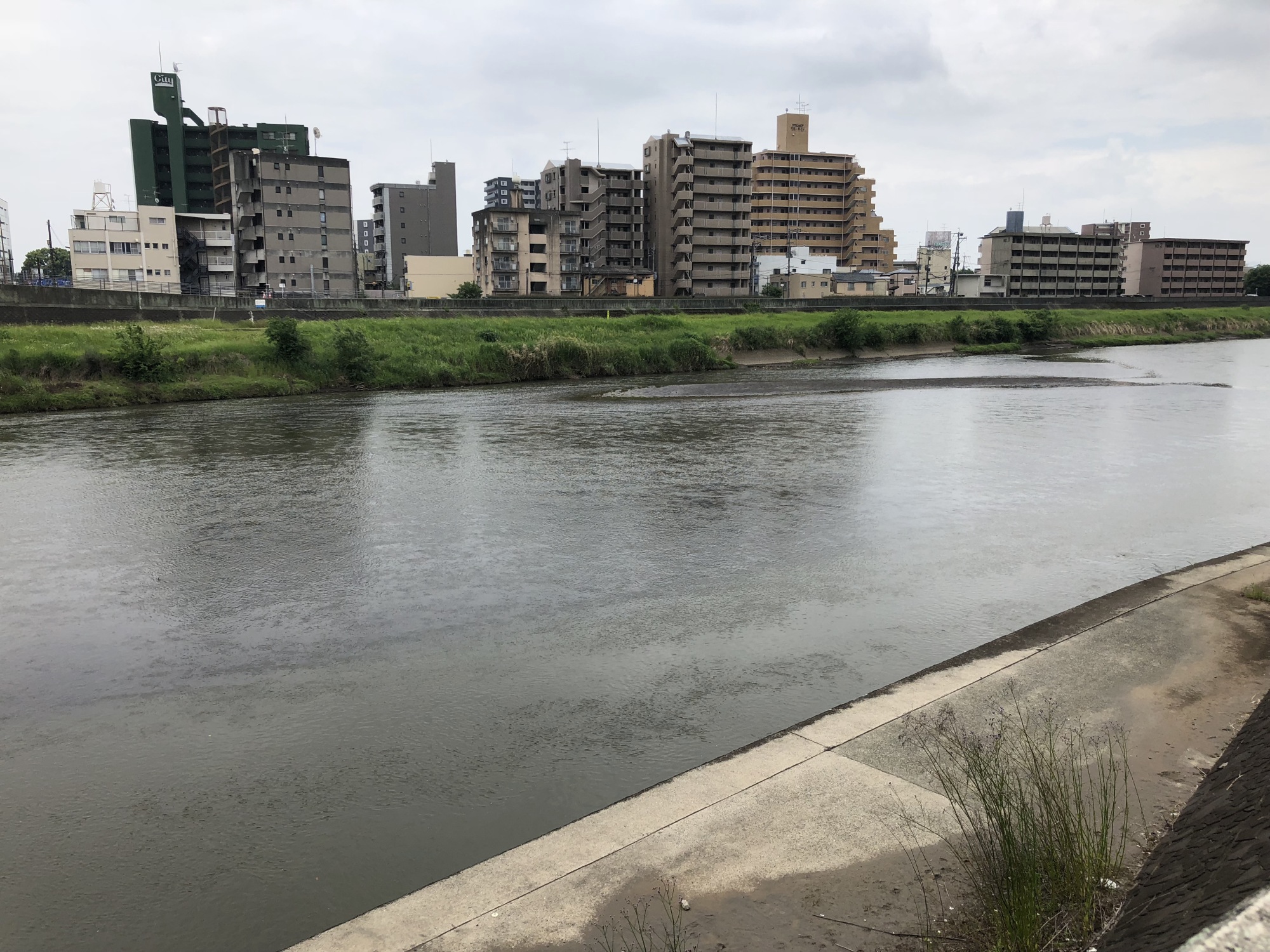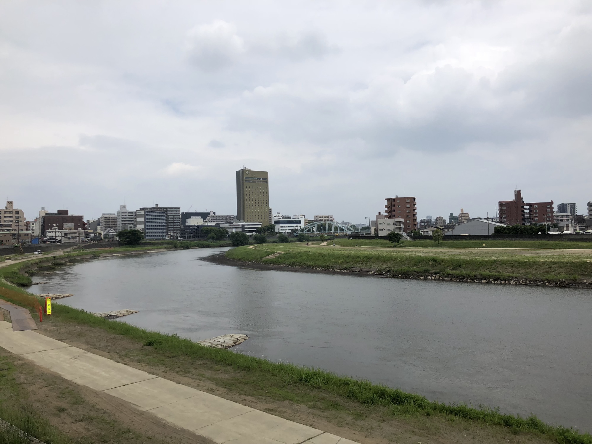 まずは、熊本駅から白川沿いに・・・思い荷物をホテルで預けて、会場へ!